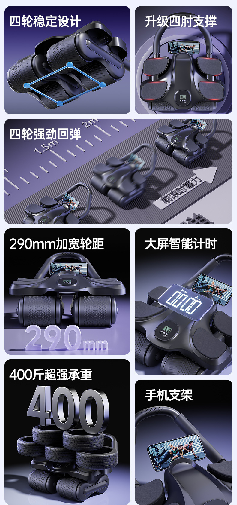 새로운 4륜 복부 휠 지방 연소 기계, 자동 리바운드 복근 운동 도구, 남성과 여성을 위한 가정용 복근 운동
