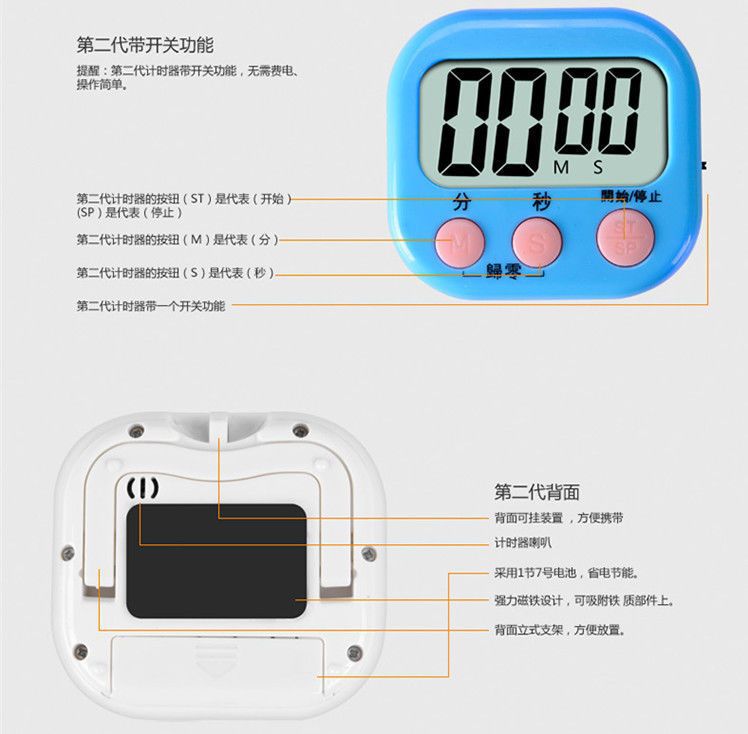 주방 타이머 타이머 알림 시끄러운 타이머 학생 카운트다운 타이머 전자 알람 시계 스톱워치 귀여운