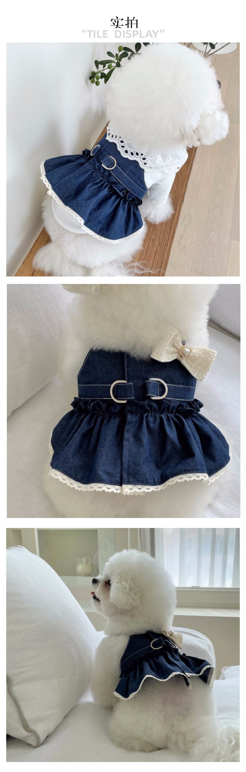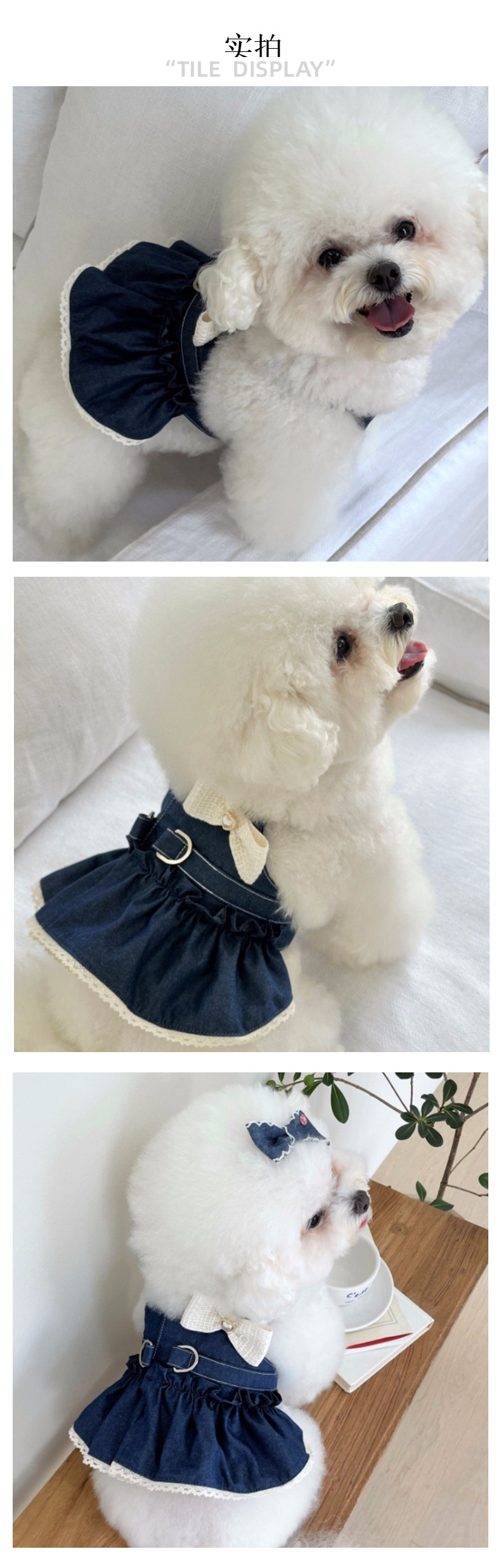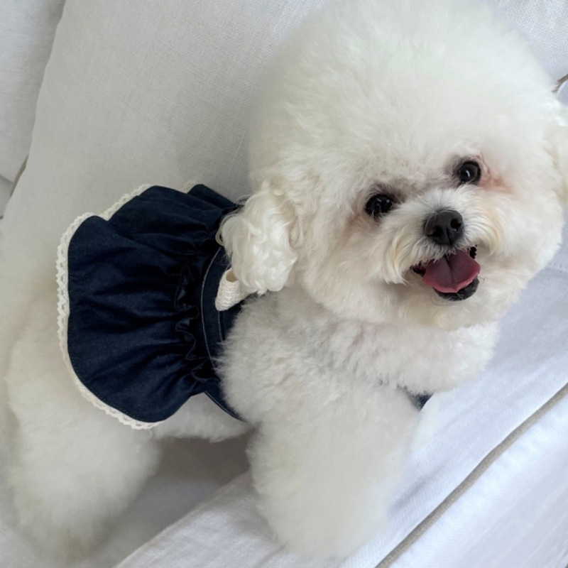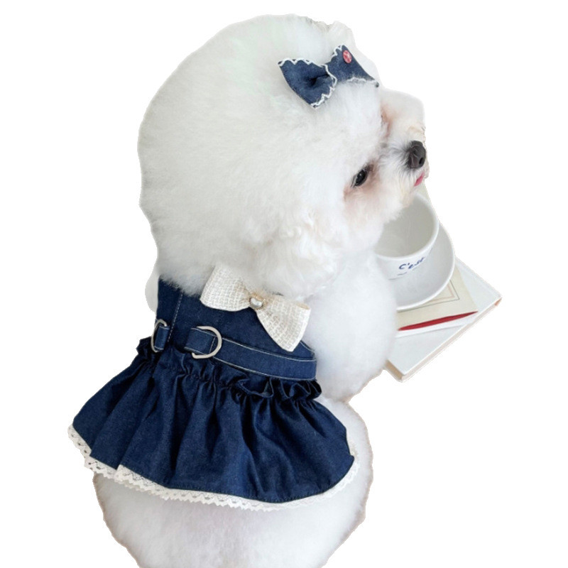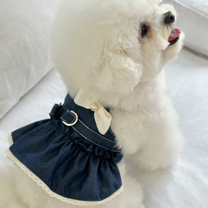 중소 규모의 개 애완 동물 고양이 데님 치마 용품 걷는 개 가슴 등 견인 방법 dou ha 청바지