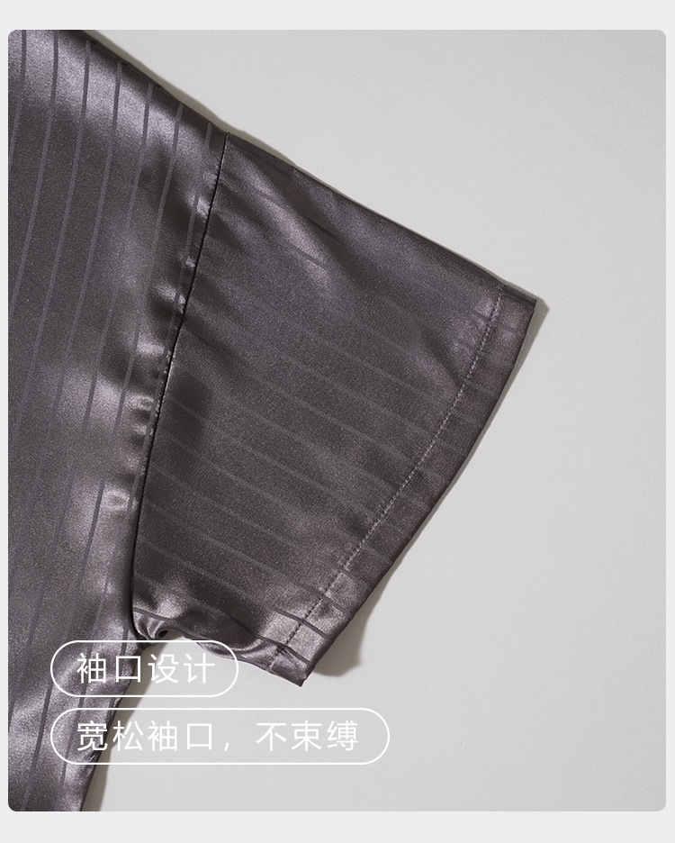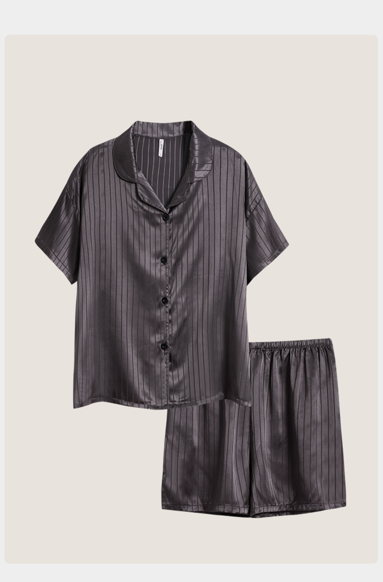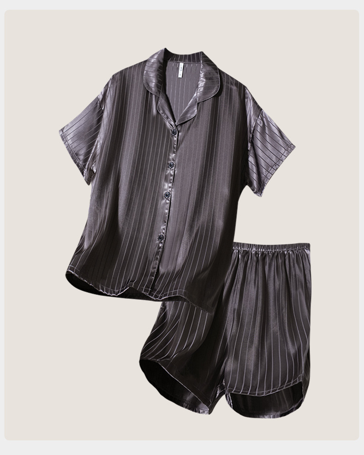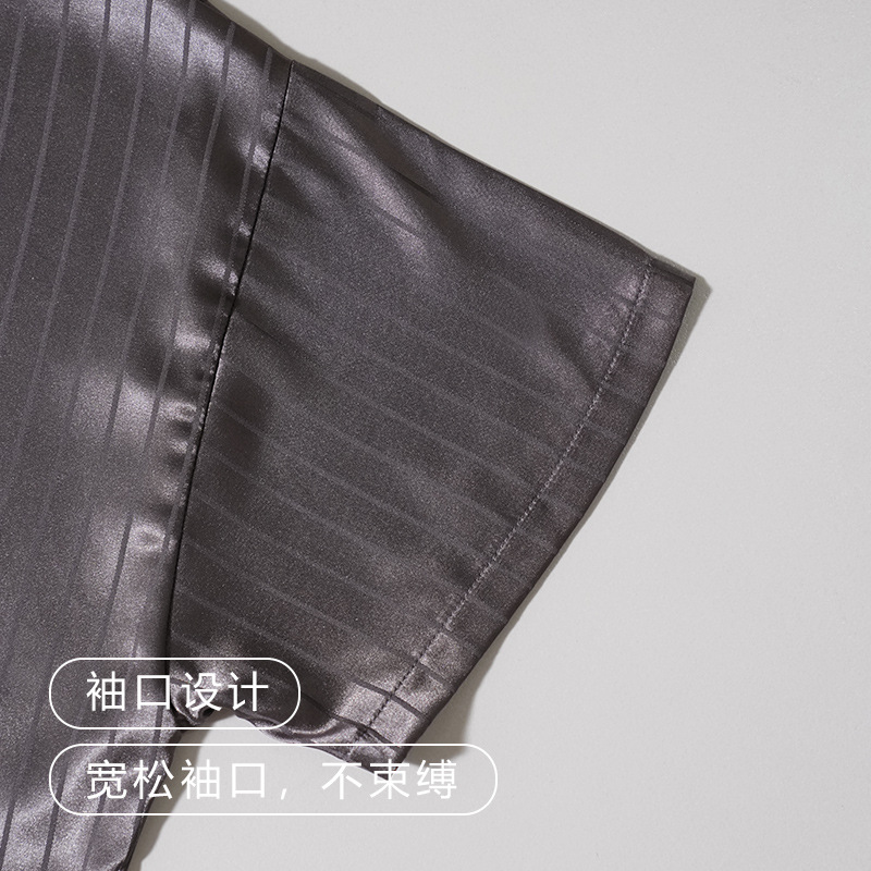[시원한 느낌] 여름 여성용 아이스 실크 잠옷 시뮬레이션 실크 가디건 반팔 스트라이프 심플 패션 홈웨어 세트