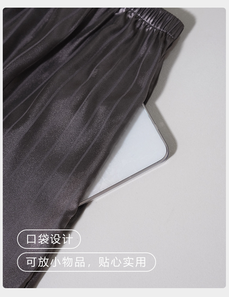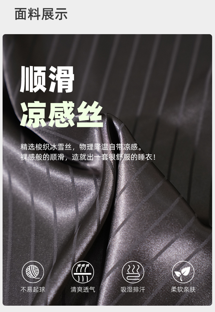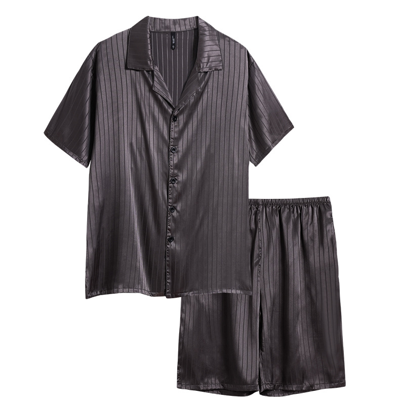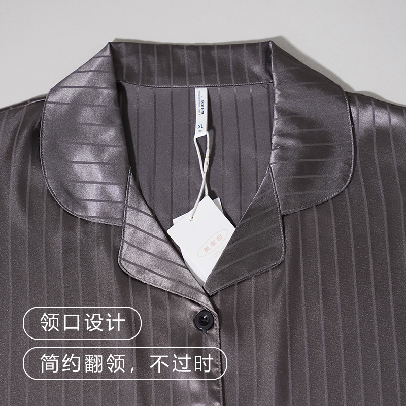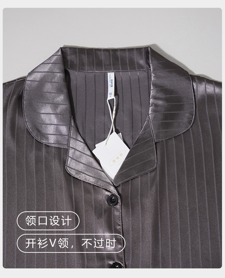 [시원한 느낌] 여름 여성용 아이스 실크 잠옷 시뮬레이션 실크 가디건 반팔 스트라이프 심플 패션 홈웨어 세트