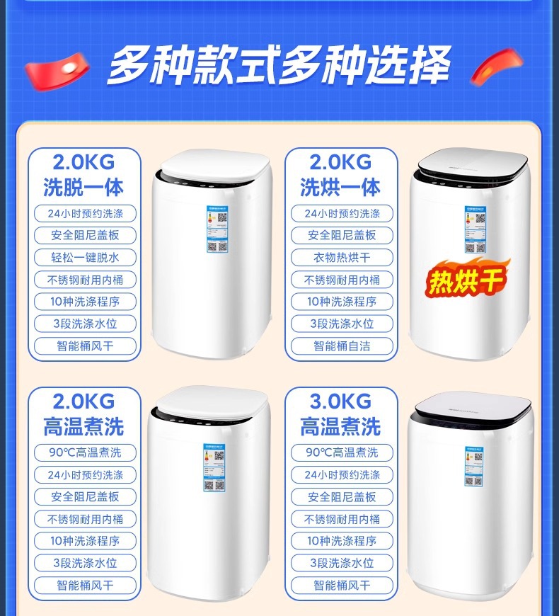 오크스 세탁기 완전 자동 가정용 미니 아기 아기 속옷 양말 고온 살균 세탁