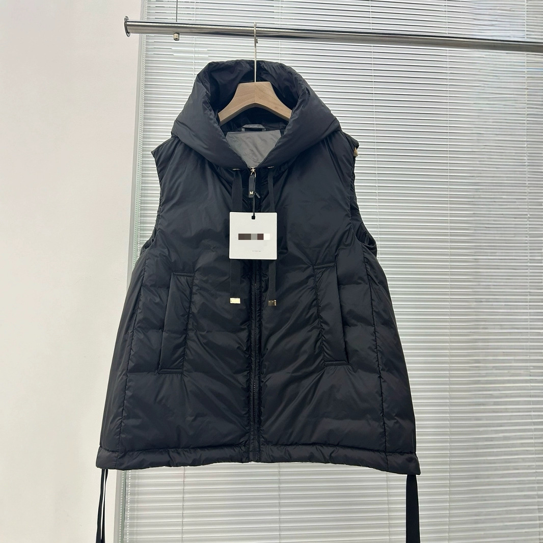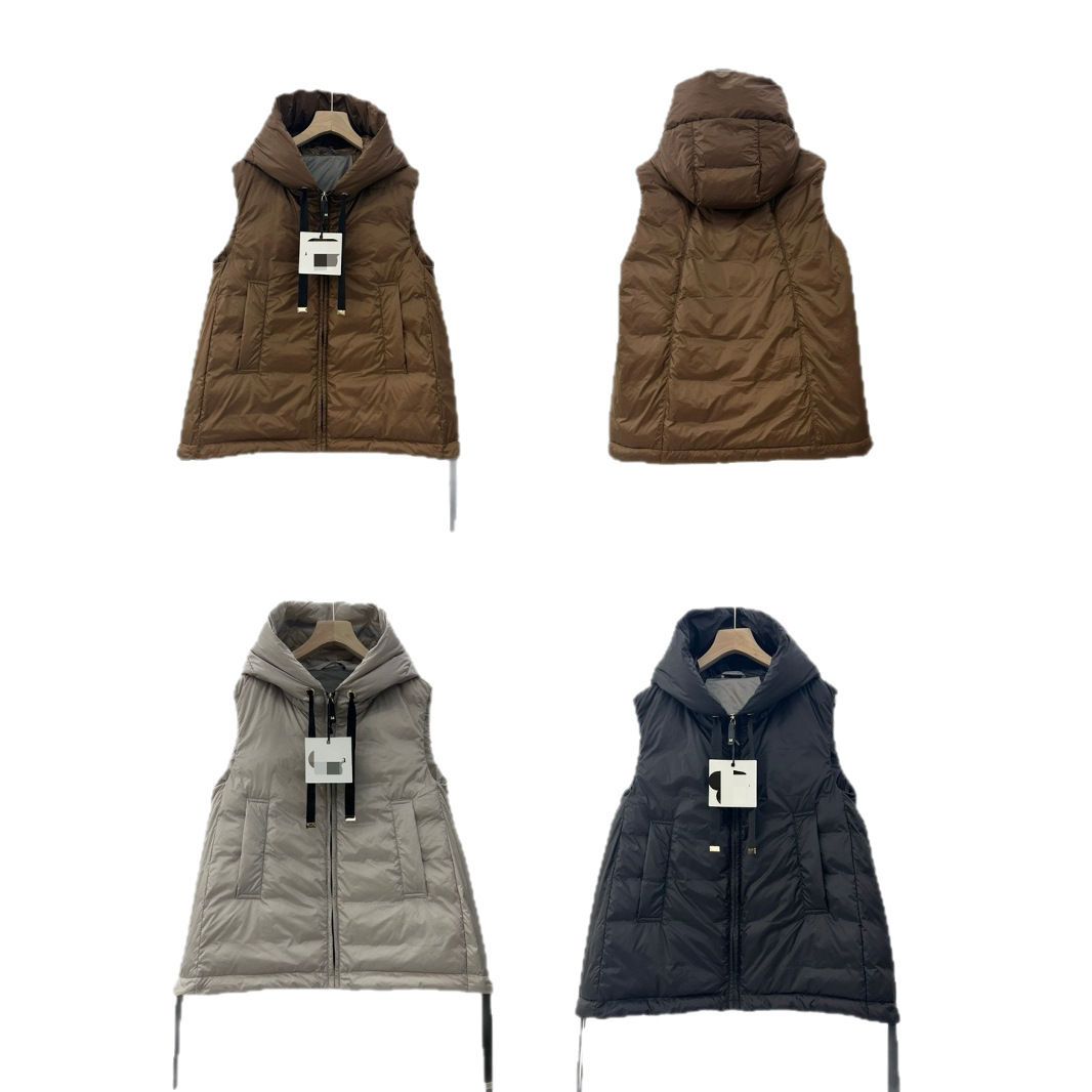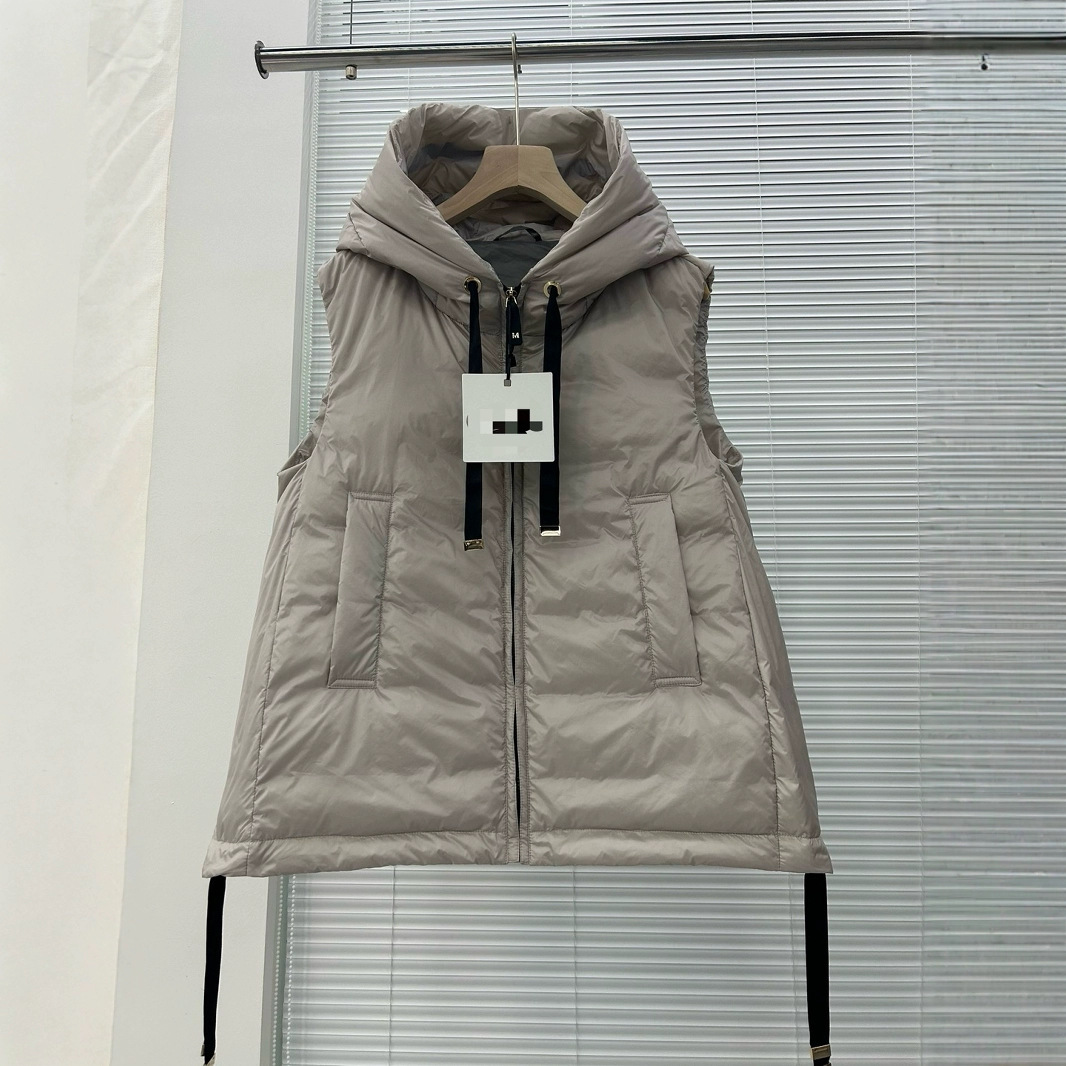 Max 새로운 여성 다운 후드 조끼 민소매 Drawstring 겨울 조끼 따뜻한 코트 짧은 조끼