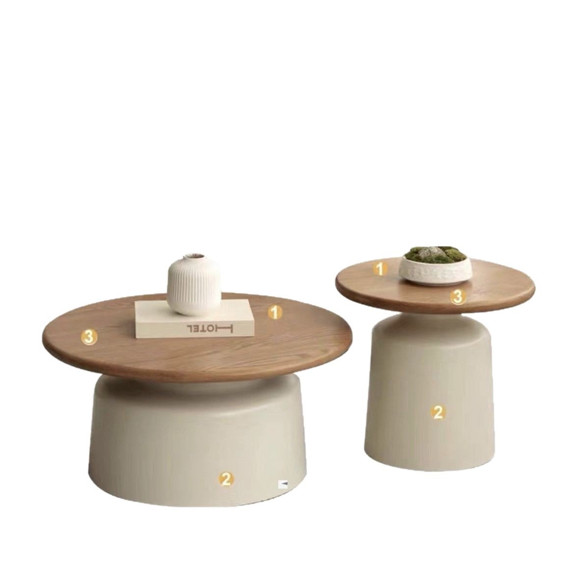 우드 컬러 + 밀크 화이트 베이스 [50CM + 70CM 라운드 엣지 조합]