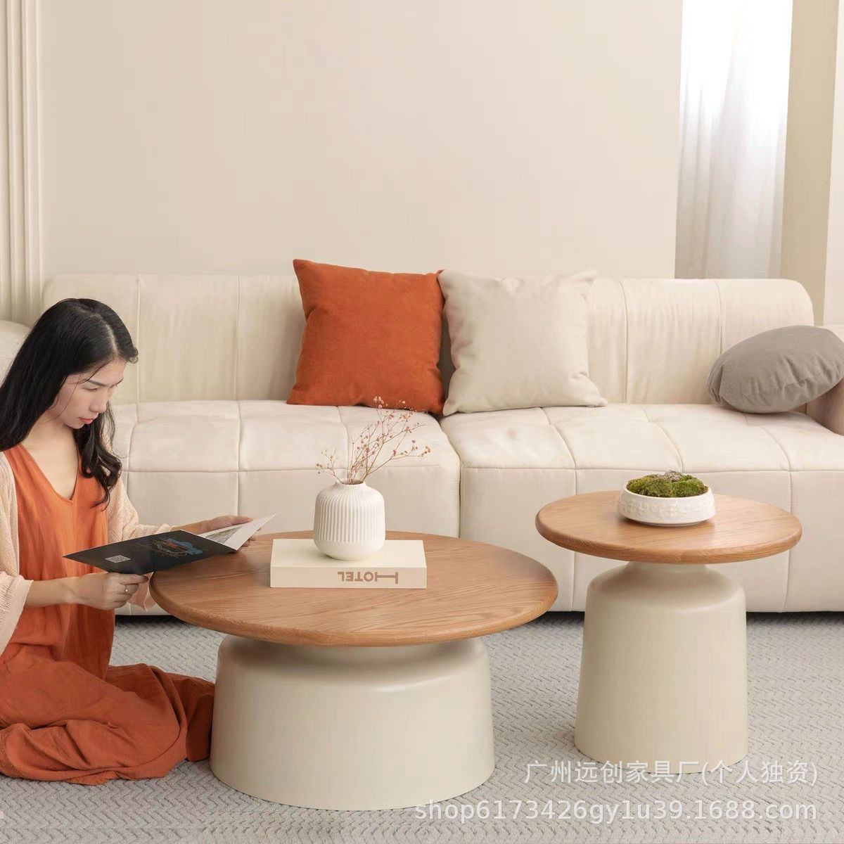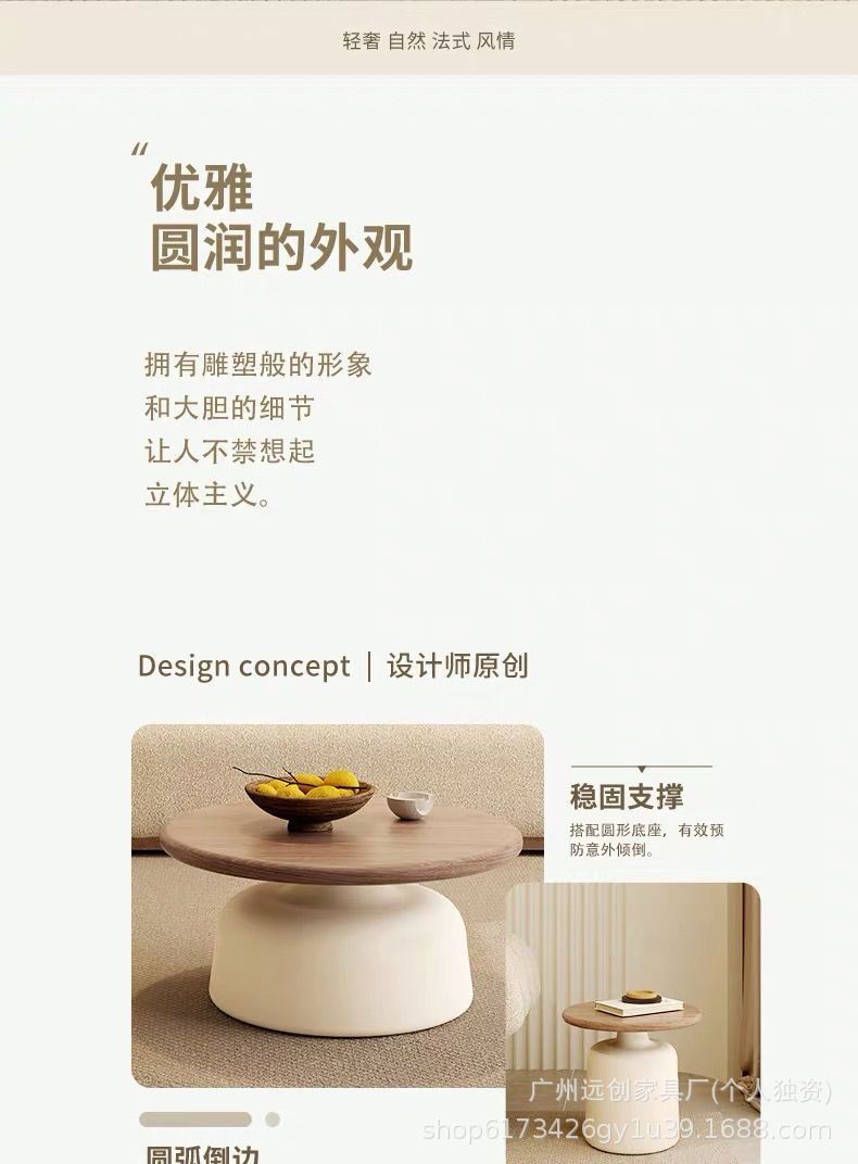 크림 스타일 아파트 커피 테이블 거실 홈 작은 아파트 간단한 인터넷 연예인 철 라운드 마티니 B&B 커피 테이블