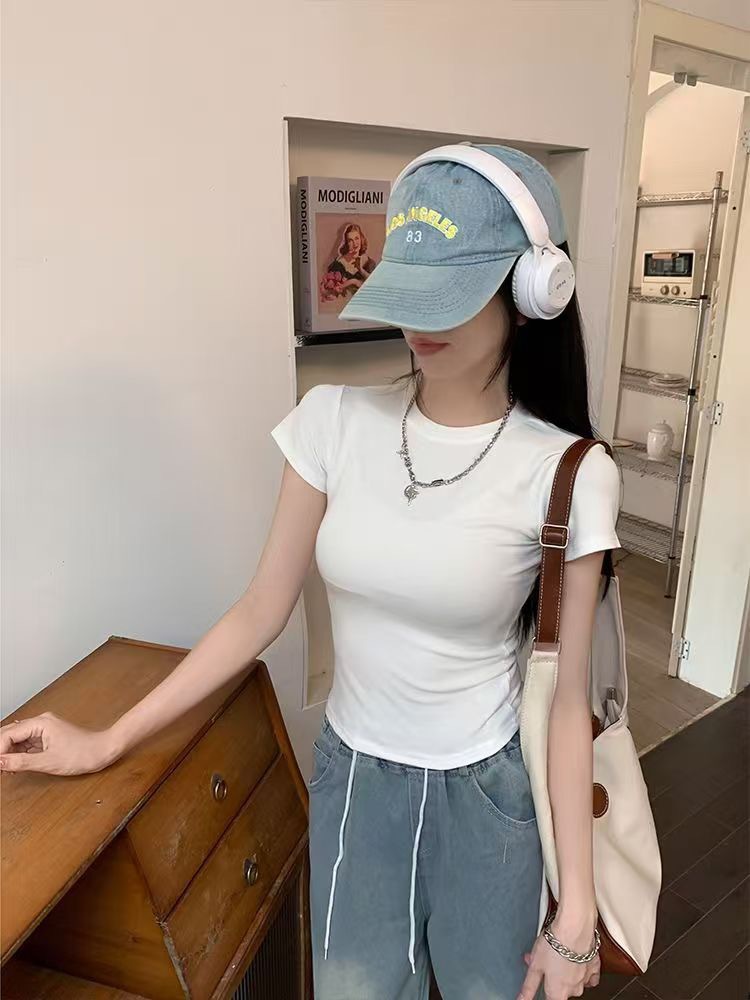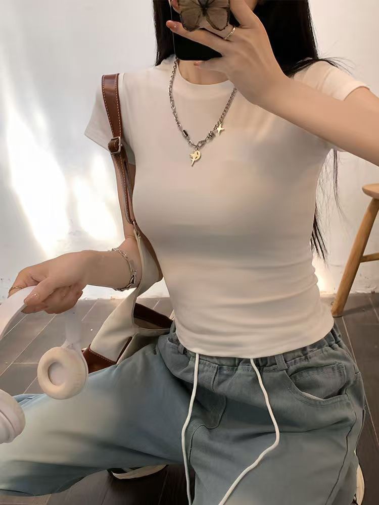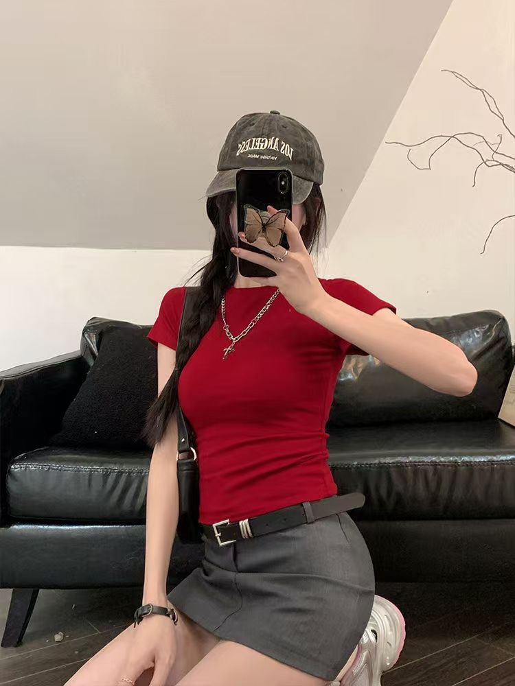여름 새로운 대외 무역 레드 반팔 티셔츠 여성베이스 셔츠 여성용 한국식 슬림핏 스파이스 소녀 내복 의류