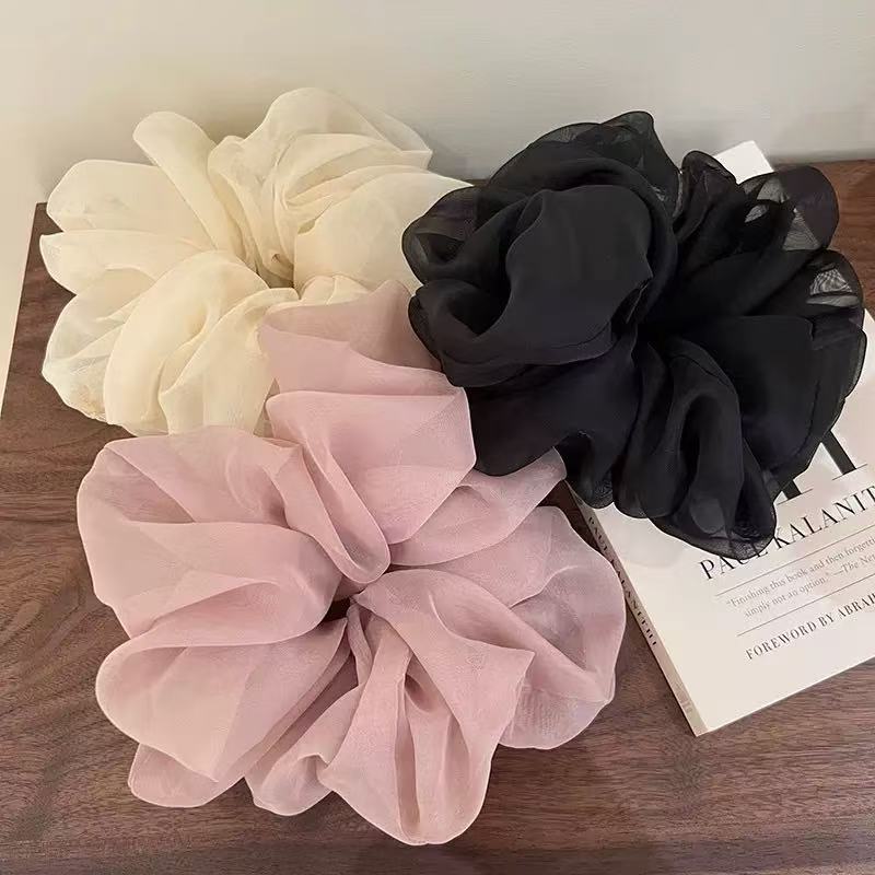 달콤하고 부드러운 쉬폰 머리끈, 여성스러운 포니테일 머리끈, 패셔너블한 볼머리끈, 머리끈, 고무줄