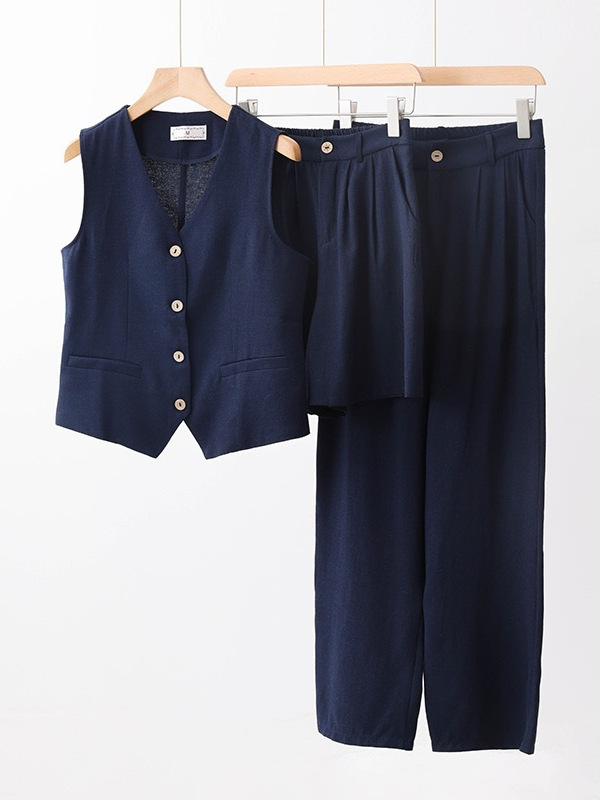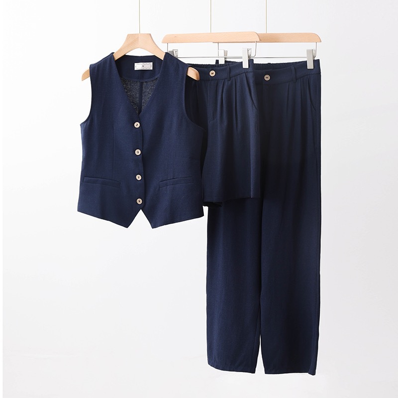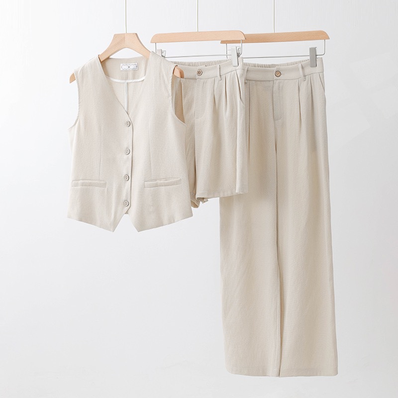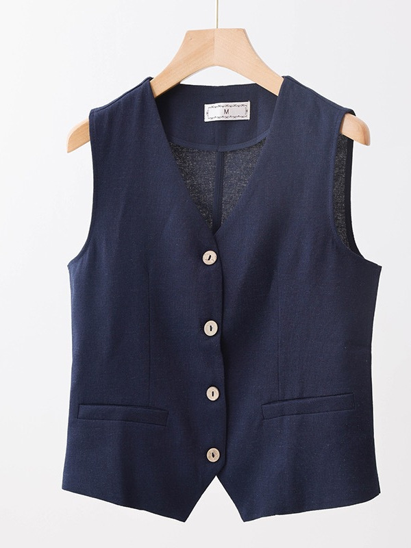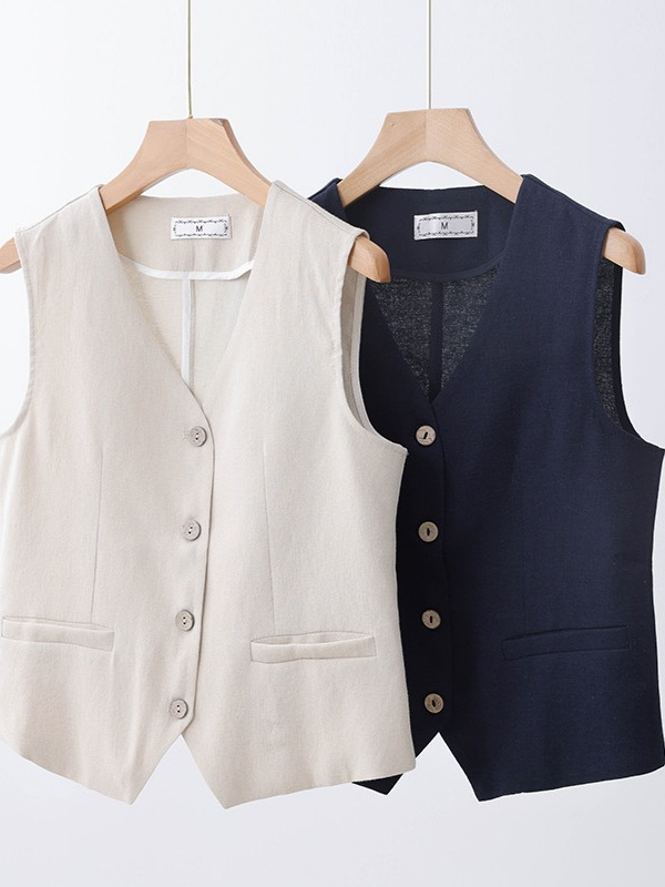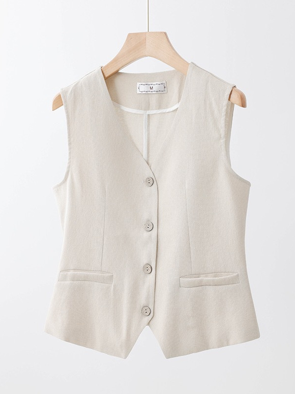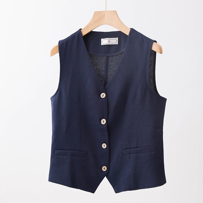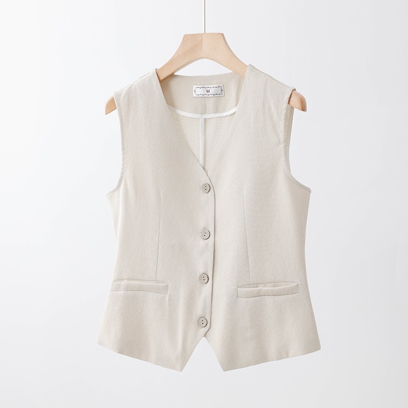 올드머니 스타일~ 린넨 민소매 수트 조끼 여성용 얇은 봄여름 통기성 패셔너블 아우터 조끼