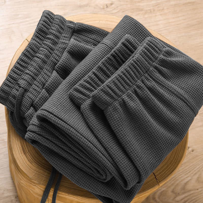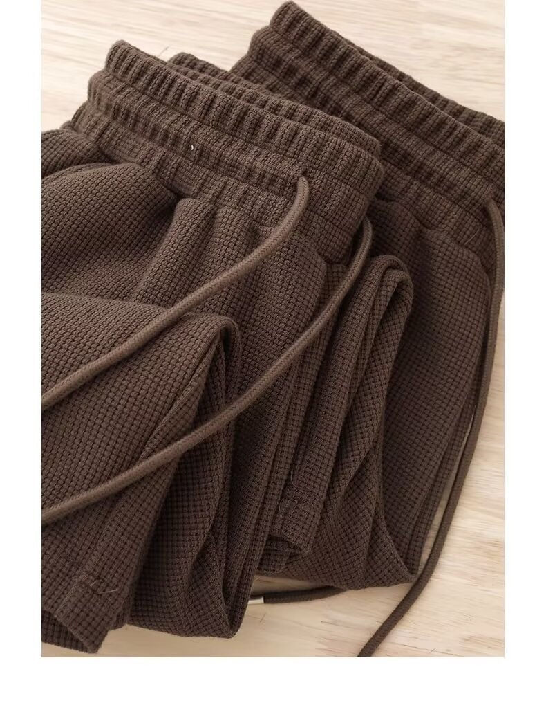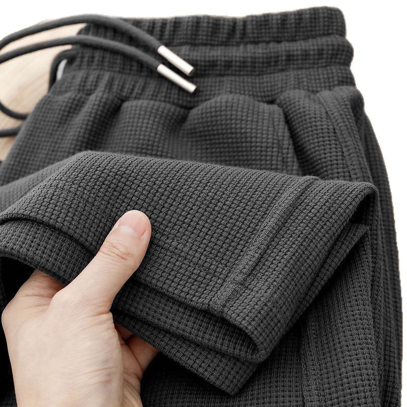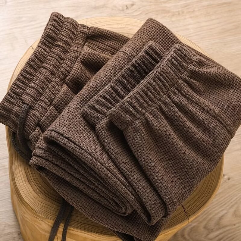 대외 무역 와플 바지 남성 2025 새로운 봄, 가을 느슨한 스트레이트 캐주얼 바지 남성 솔리드 컬러 와이드 레그 스포츠 바지