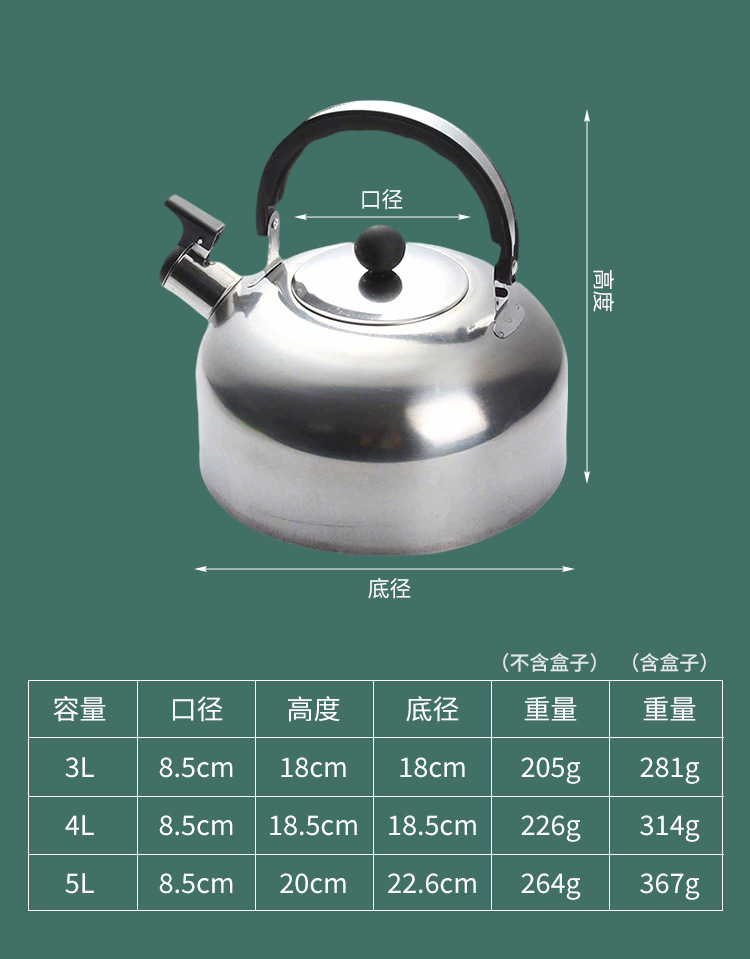 스테인레스 스틸 플랫 바닥 주전자 가정용 반구형 사운드 유도 쿠커 주전자 야외 휴대용 주전자 도매