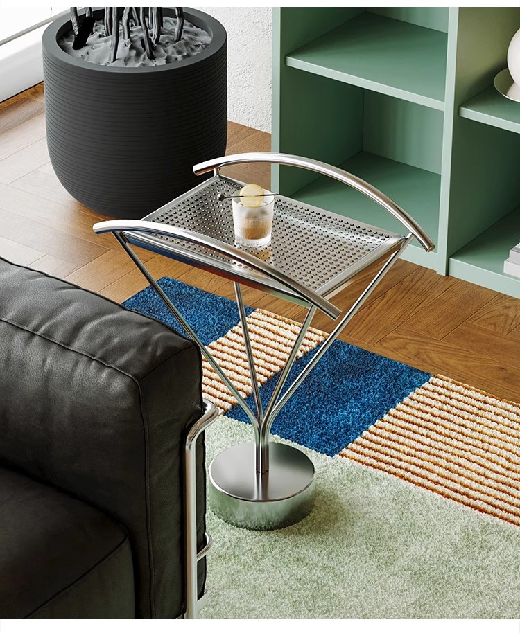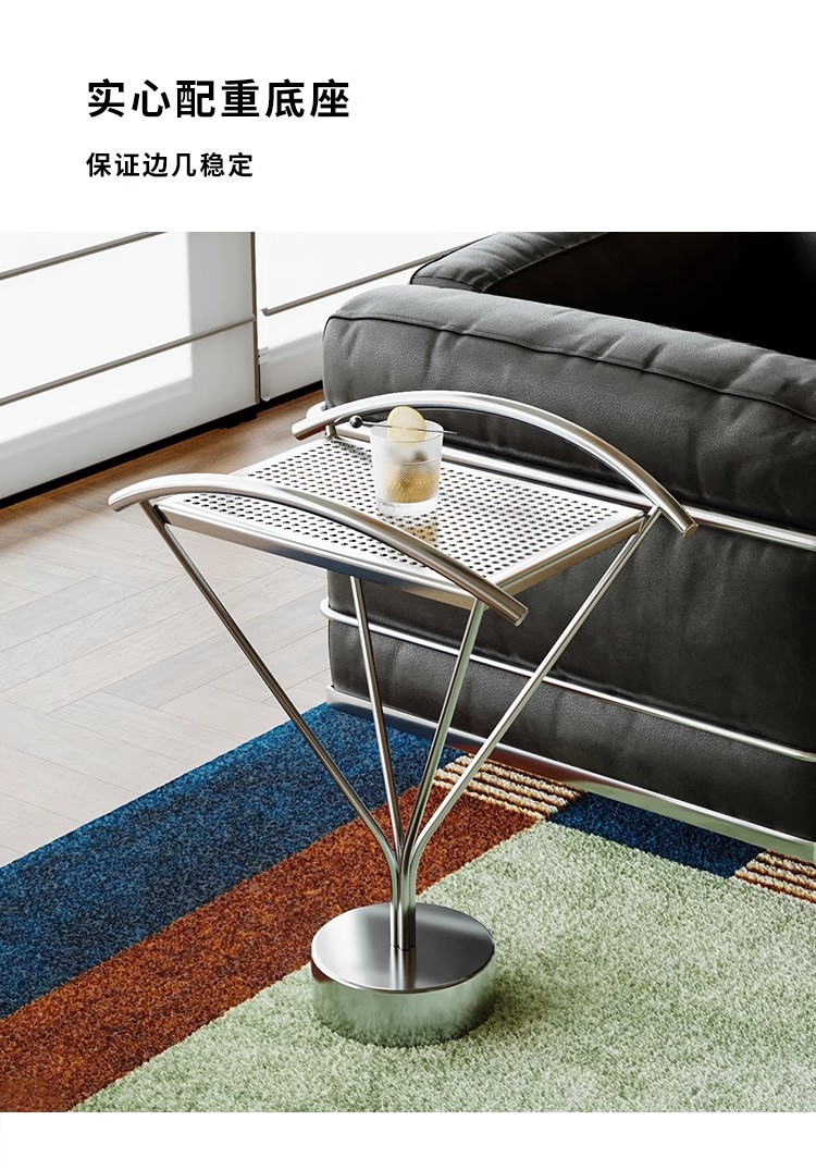 디자이너 스테인레스 스틸 작은 테이블 빌라 거실 빛 럭셔리 높은 감각 작은 커피 테이블 간단한 창조적 인 소파 사이드 테이블