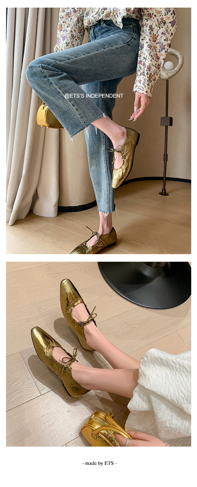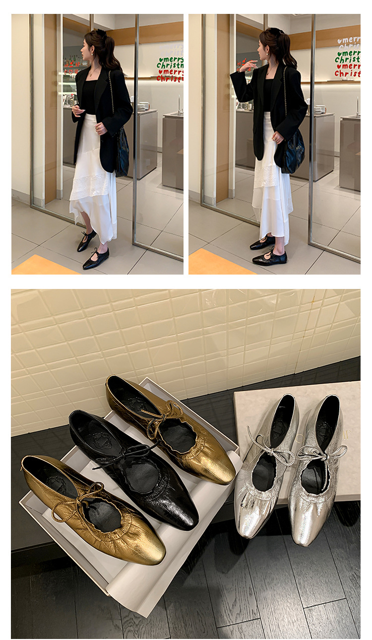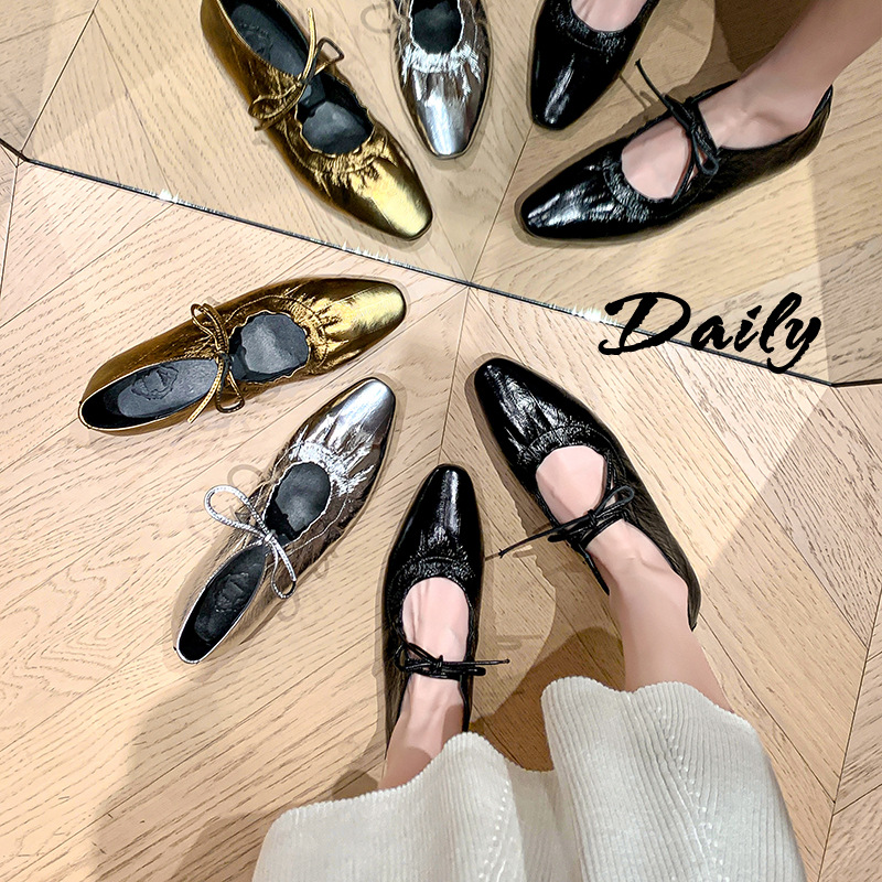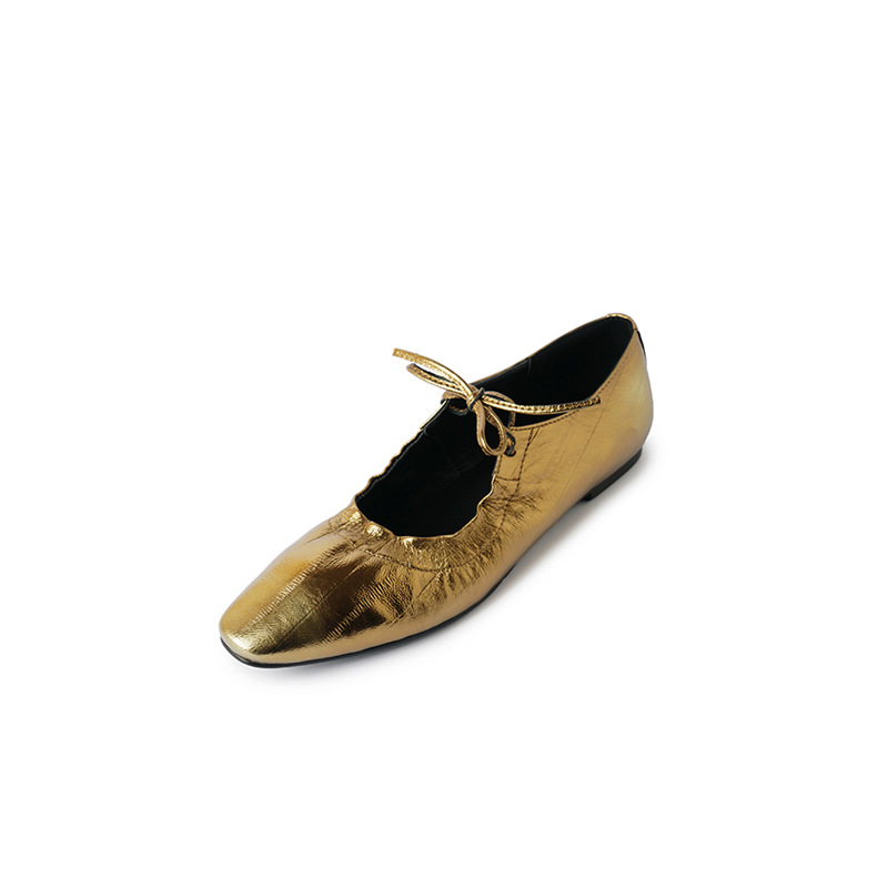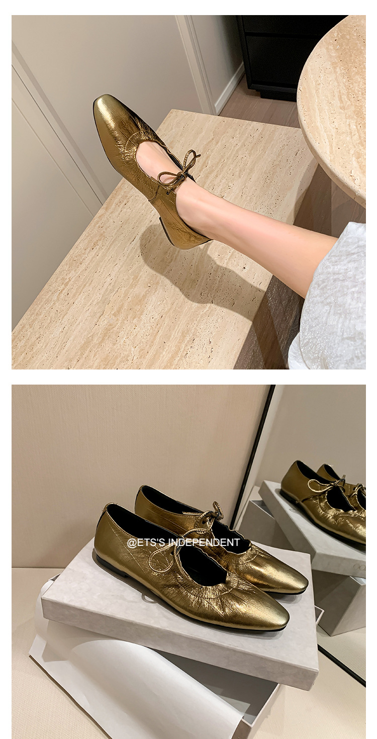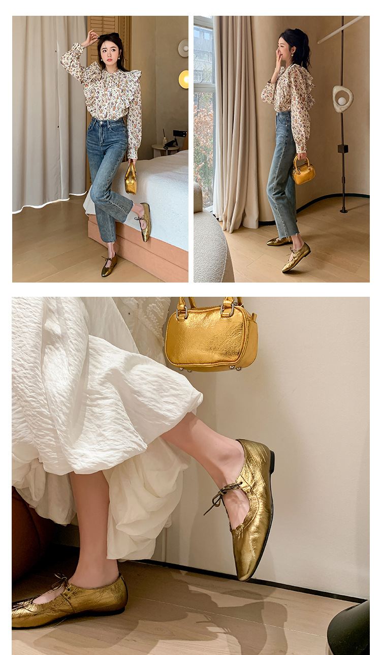 스트랩 주름진 둥근 발가락 할머니 신발 유럽과 미국의 가벼운 럭셔리 복고풍 플랫 신발 여성용 골드 펌프 플랫 메리 제인 신발