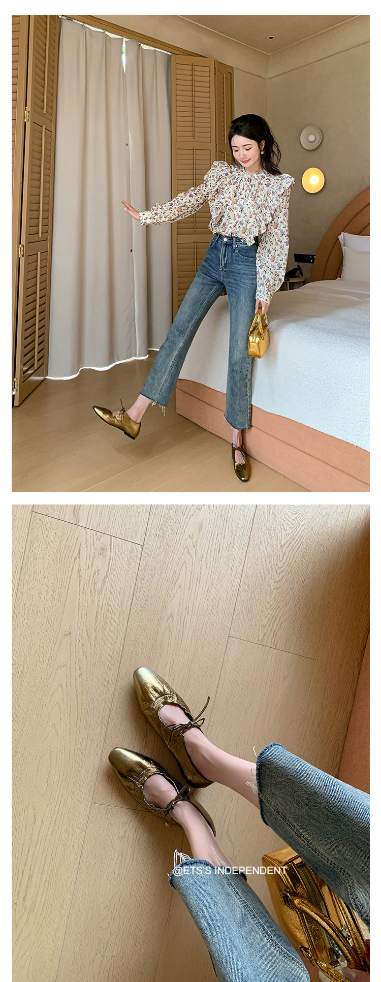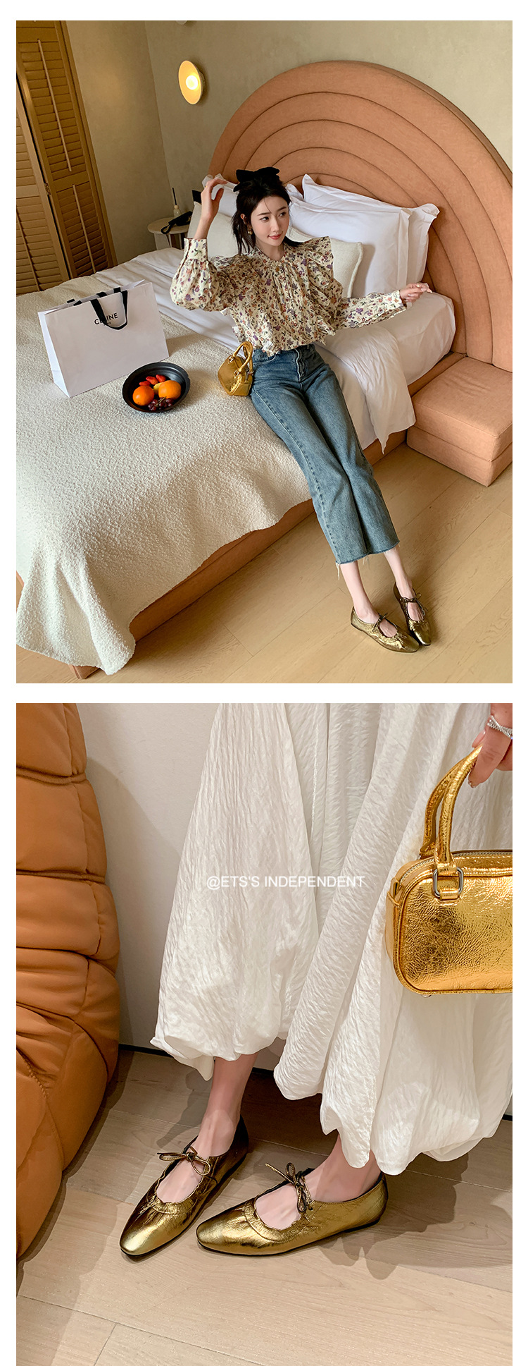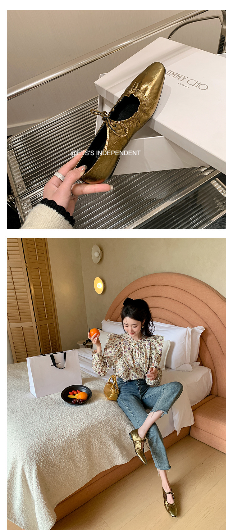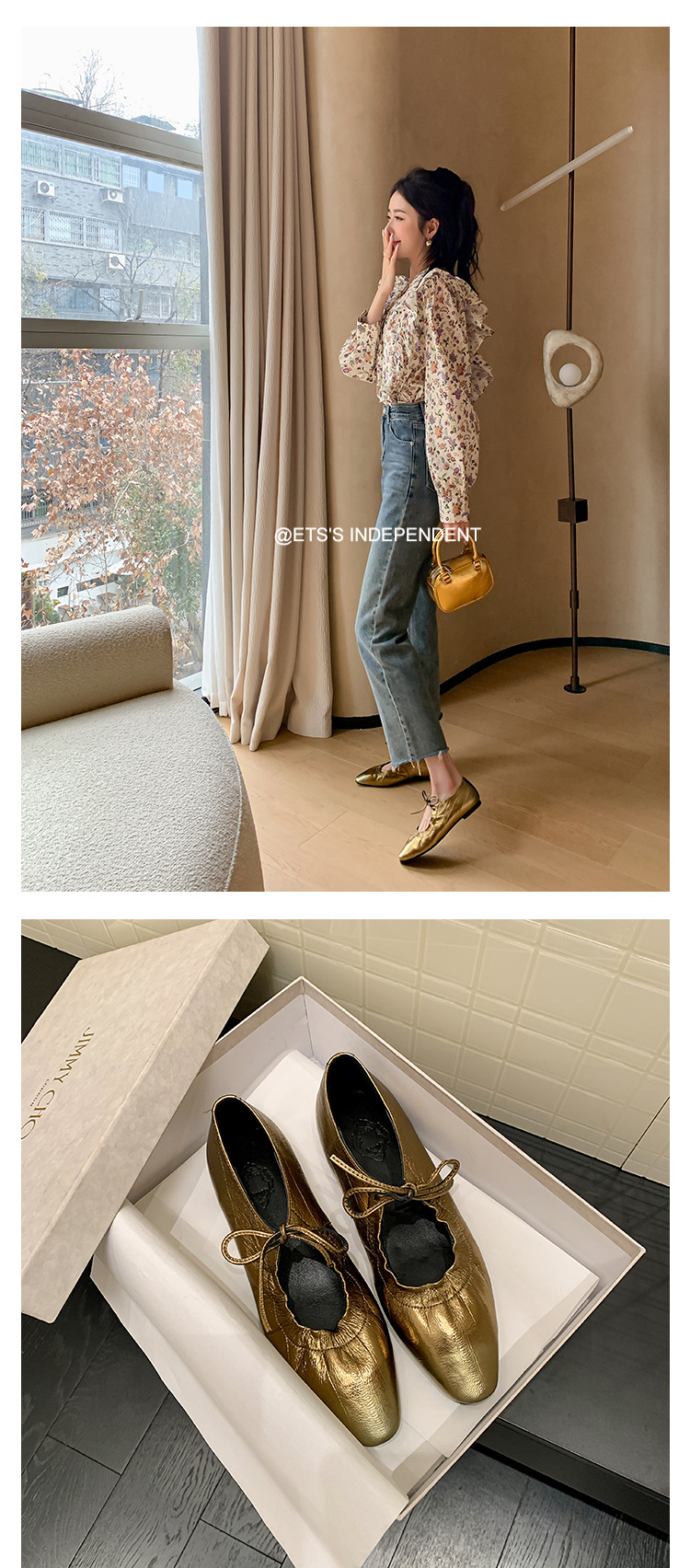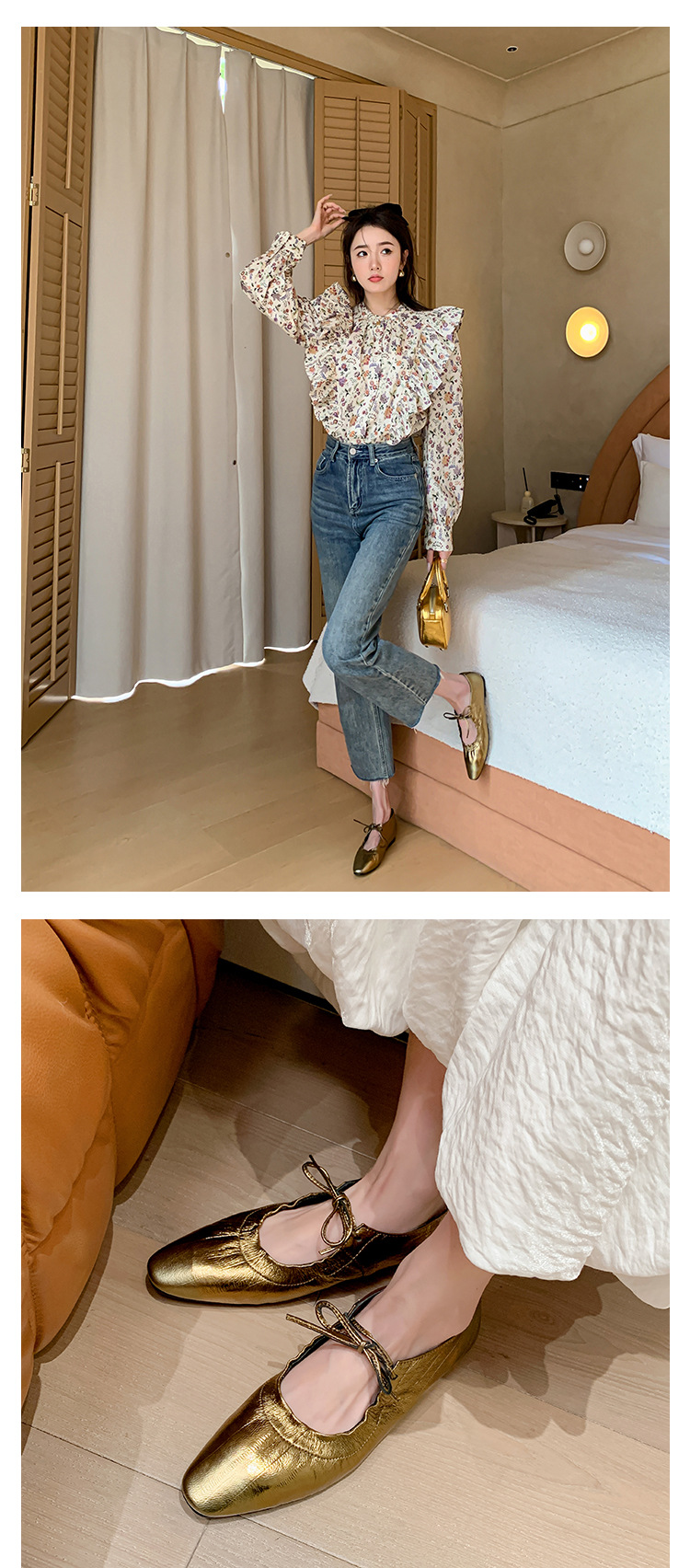 스트랩 주름진 둥근 발가락 할머니 신발 유럽과 미국의 가벼운 럭셔리 복고풍 플랫 신발 여성용 골드 펌프 플랫 메리 제인 신발