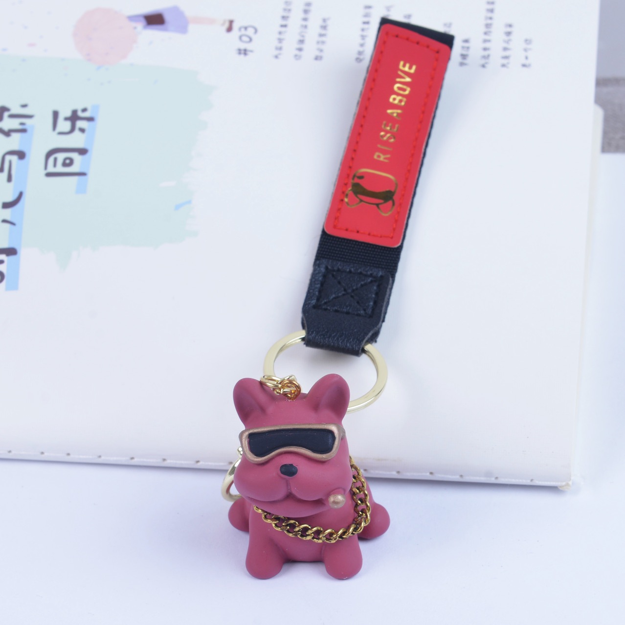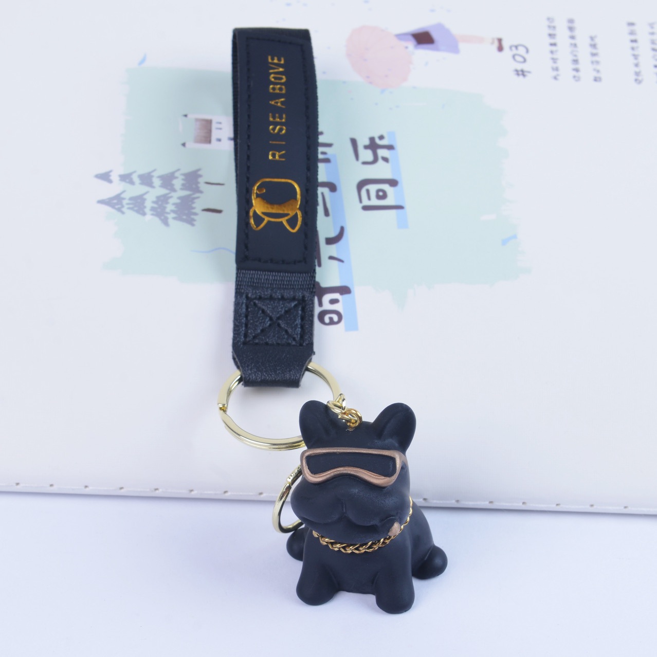 만화 레진 프렌치 불독 강아지 열쇠고리 불독 키체인 커플 가방 장식품 도매 인형 휴일 선물