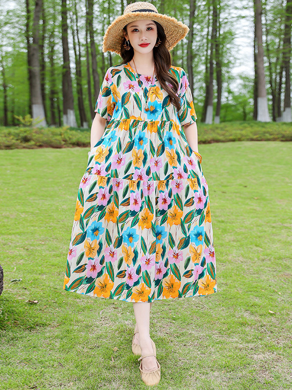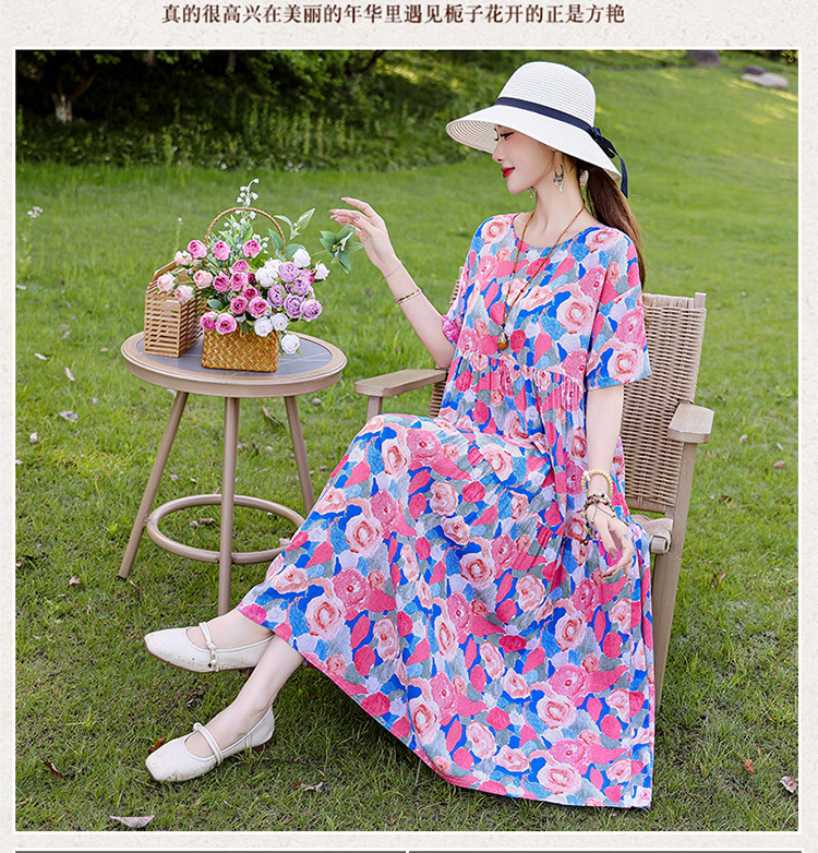 2026년 초여름 신상 고급 면 실크 원피스, 여름용 큰 사이즈 삼아 스타일 엄마 비치 원피스, 날씬해 보이는 효과