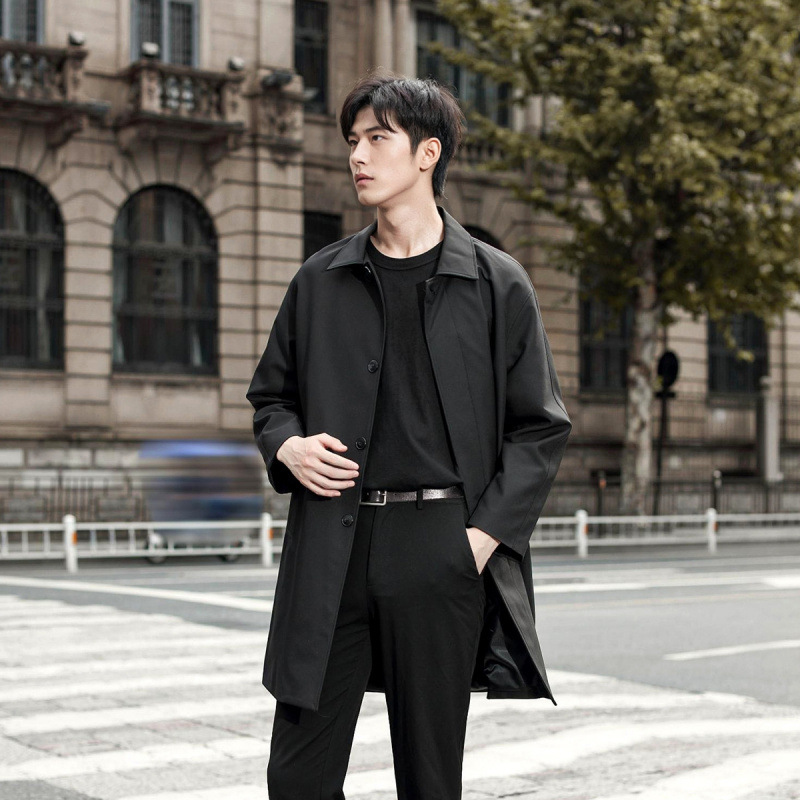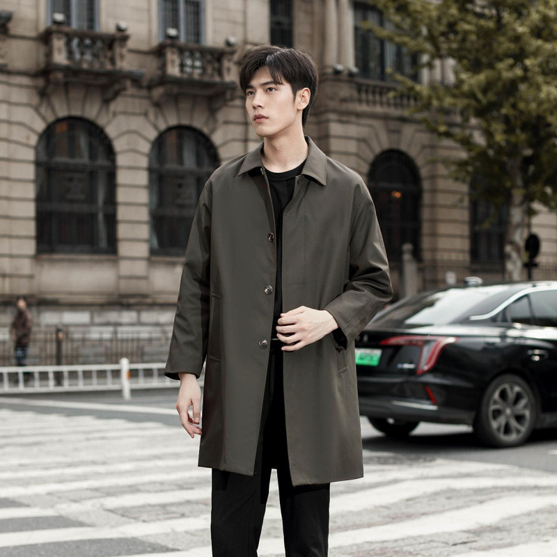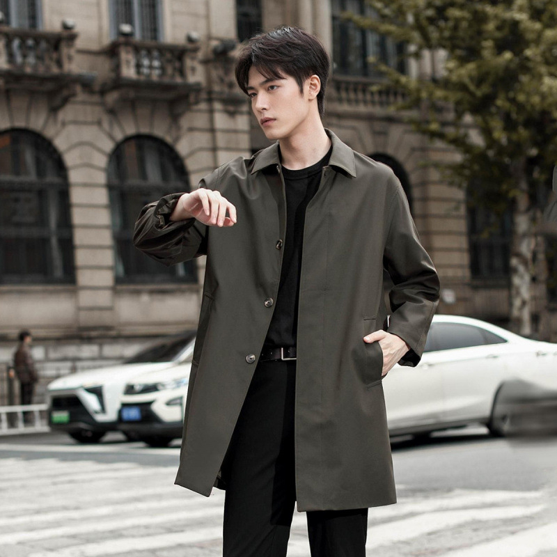 윈드 브레이커 남성 중간 길이 2024 새로운 남성 싱글 브레스트 가을 한국 스타일 코트 젊은 및 중년 남성을위한 비즈니스 캐주얼 재킷