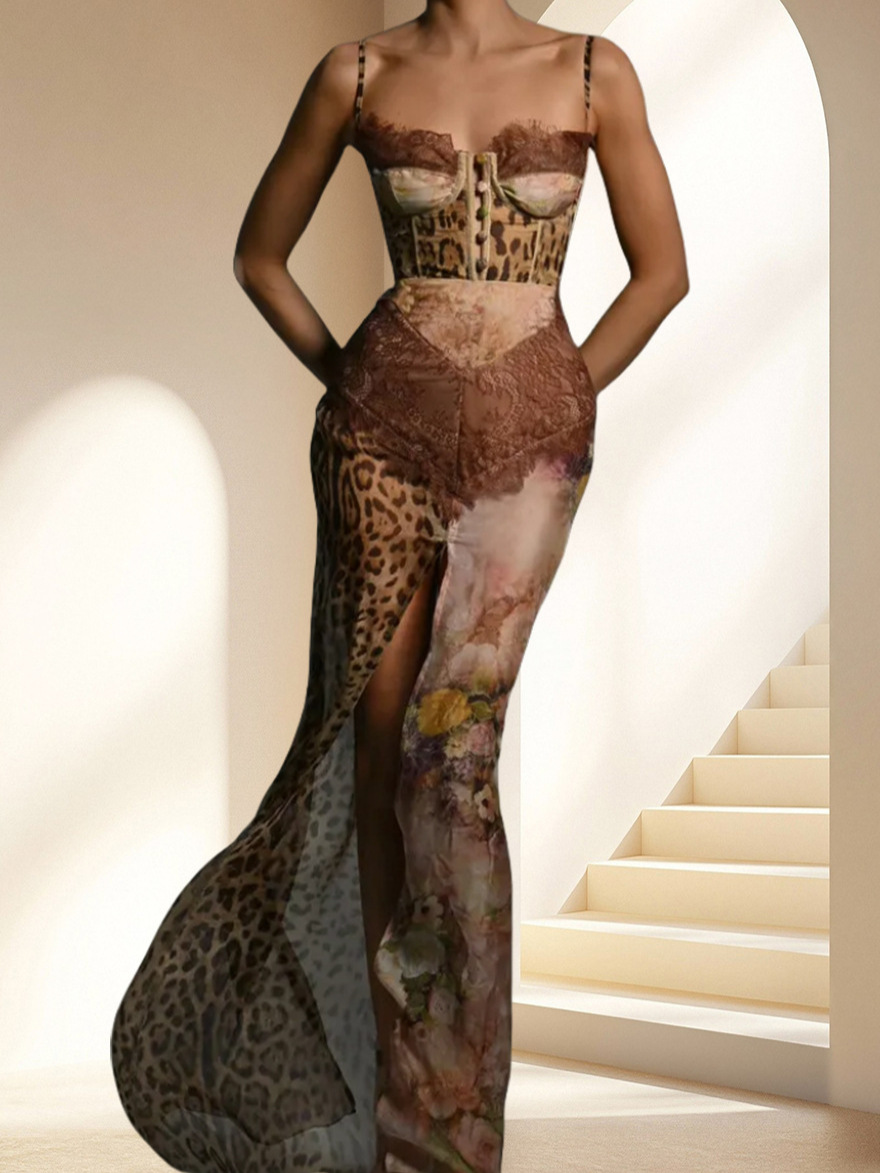 국경 간 스트랩리스 여름 유럽과 미국 쉬폰 슬링 민소매 섹시한 컬러 매칭 슬링 뉴 원피스 2025