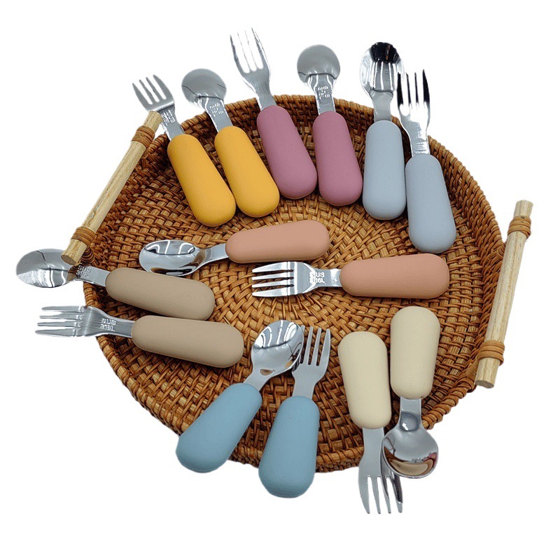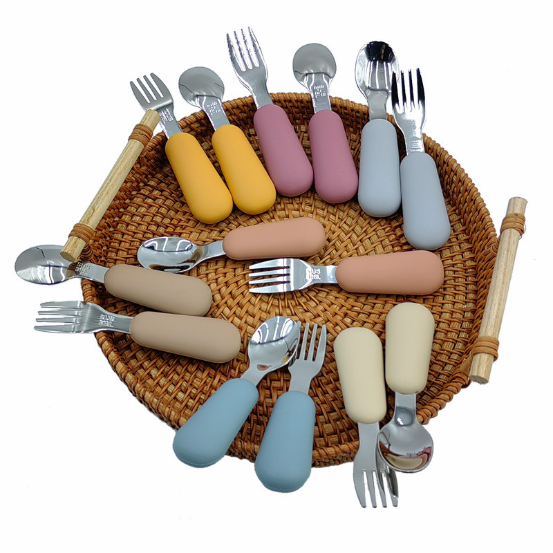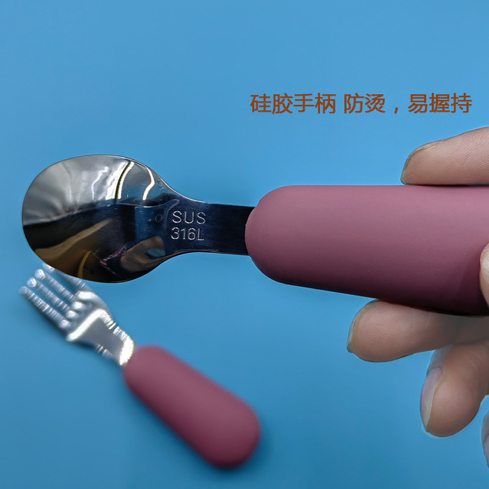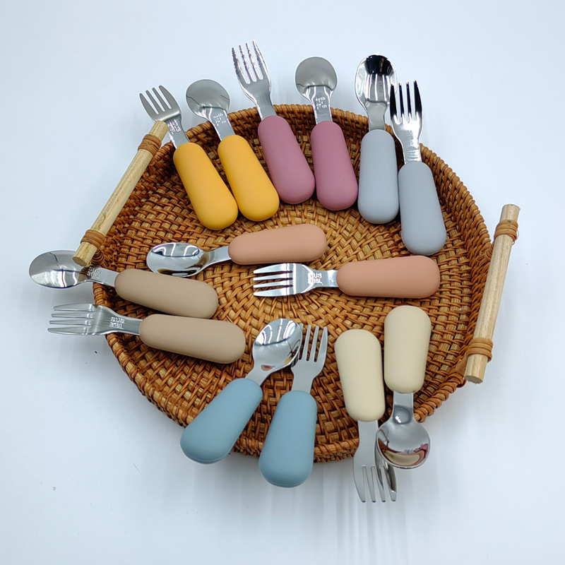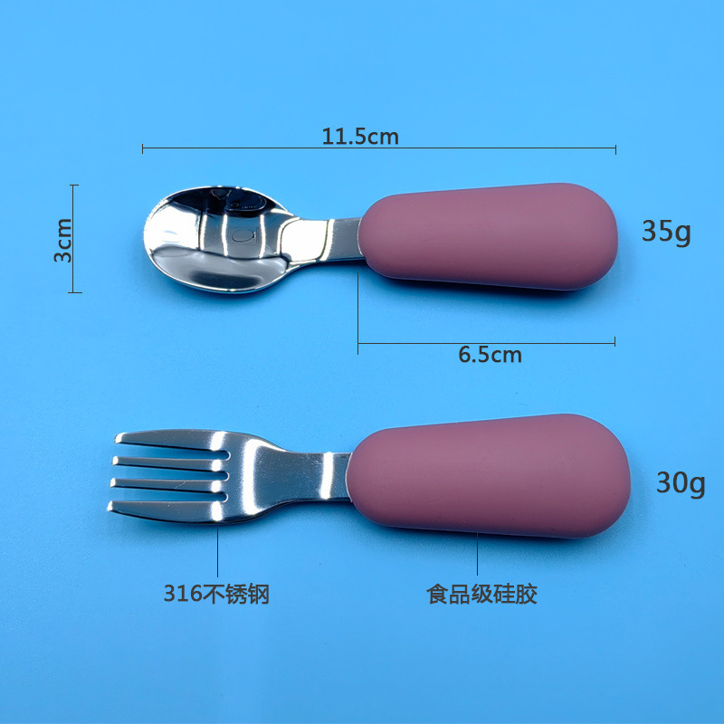 고급스러운 실리콘 스테인리스 스푼과 포크, 어린이 트레이닝 스푼과 포크, 유아용 특수 식기, 어린이용 식사용 포크와 스푼, 직접 판매
