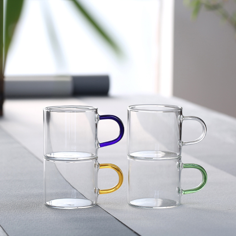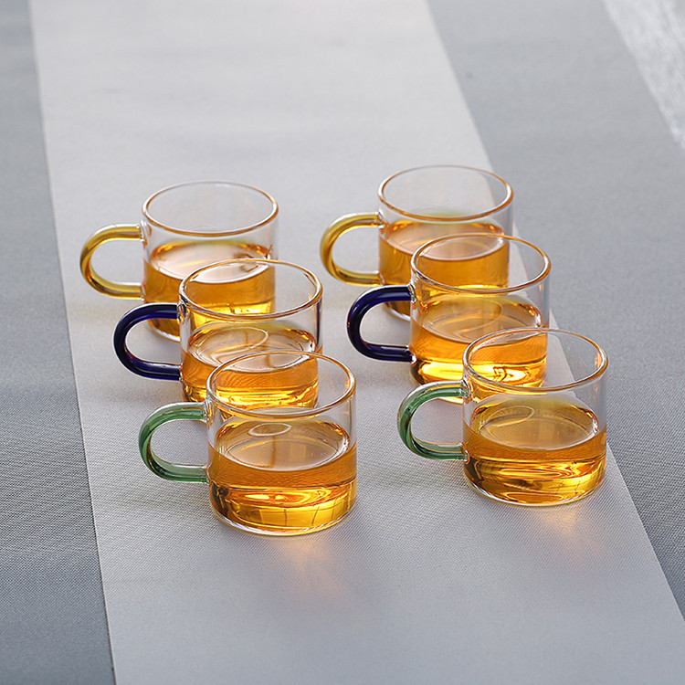 다채로운 손잡이 유리 작은 차 컵 가정용 투명한 유리 작은 차 그릇 차 시음 컵 쿵푸 차 세트 차 시음 컵