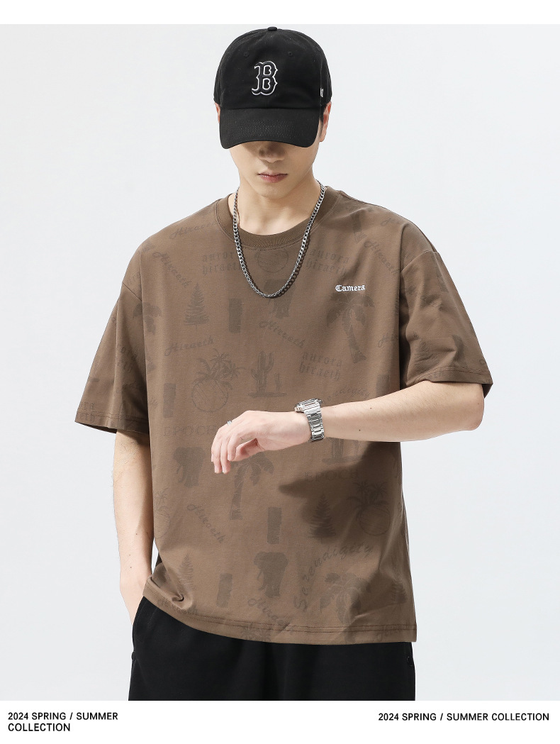 2025 새로운 여름 얼음 실크 시원한 반팔 남성 티셔츠 속건성 루즈 캐주얼 반팔 라운드 넥 탑 트렌디 남성