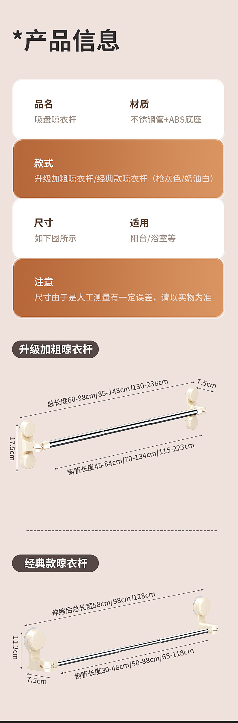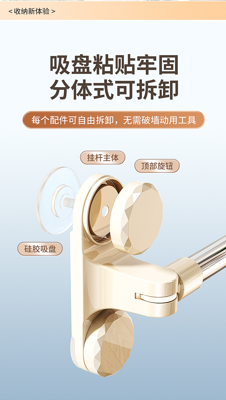 크림 화이트 [이중 흡입 컵] 텔레스코픽 길이 [130-238] cm