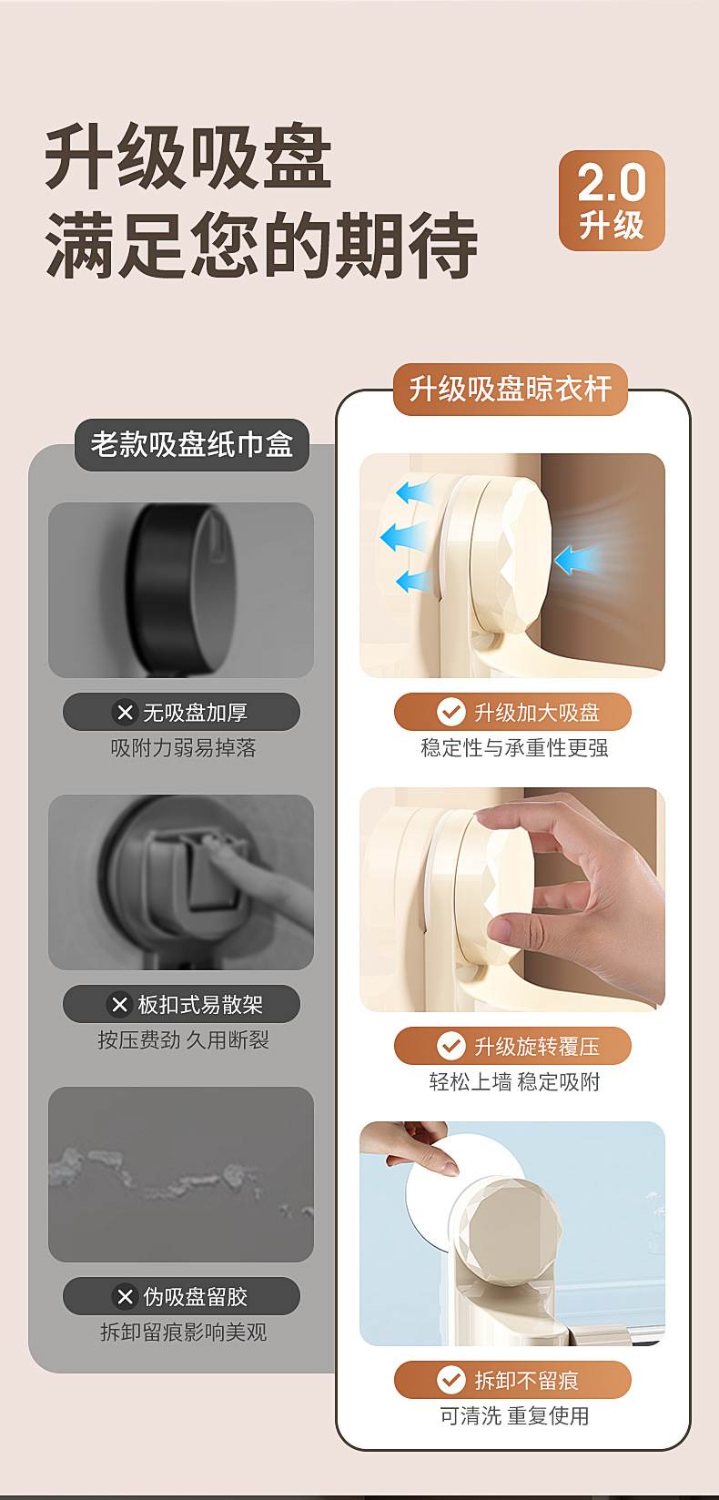 크림 화이트 [이중 흡입 컵] 텔레스코픽 길이 [60-98] cm