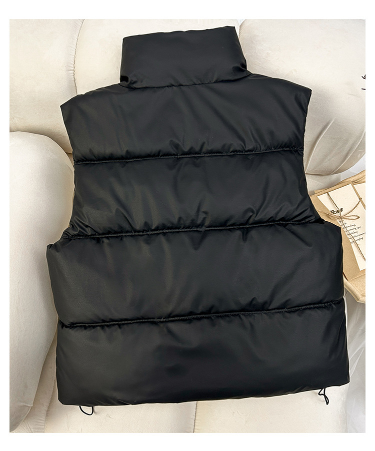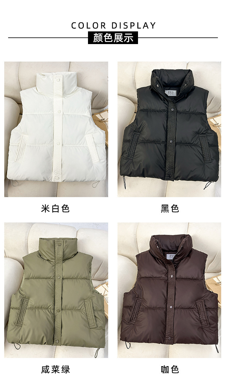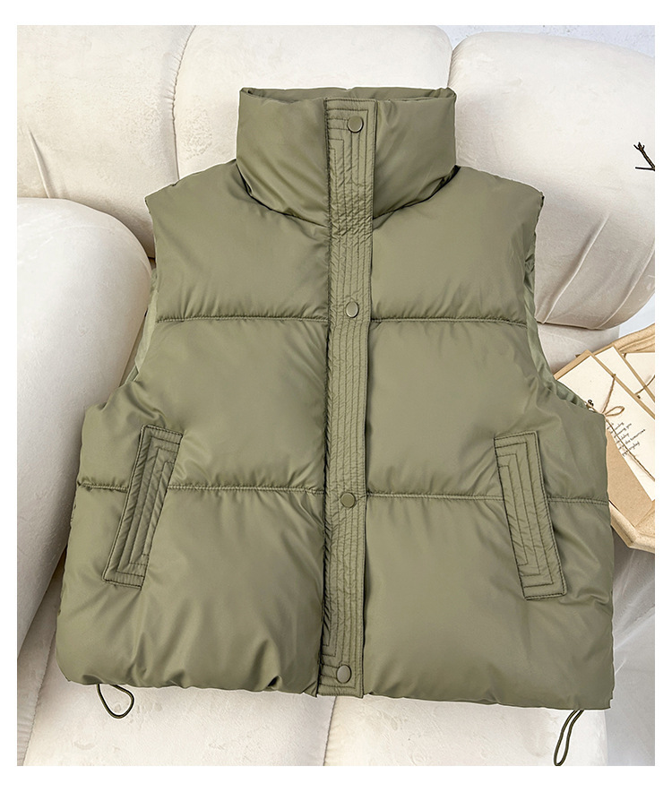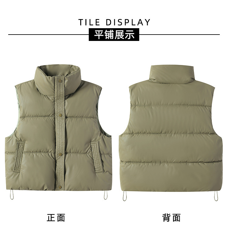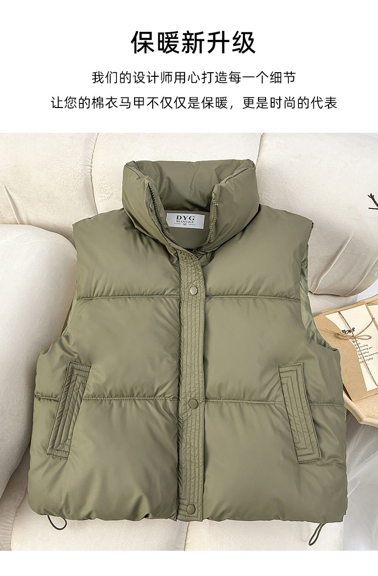 여성을위한 다운 코튼 조끼 2025 가을, 겨울 새로운 한국 스타일 느슨한 코튼 조끼 스탠드 칼라 솔리드 컬러 코튼 조끼 자켓