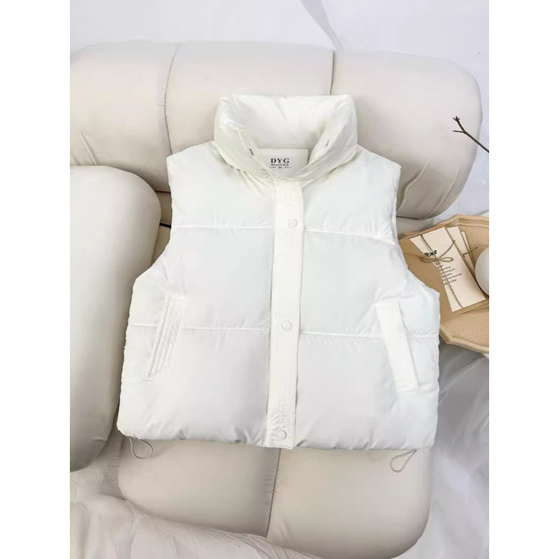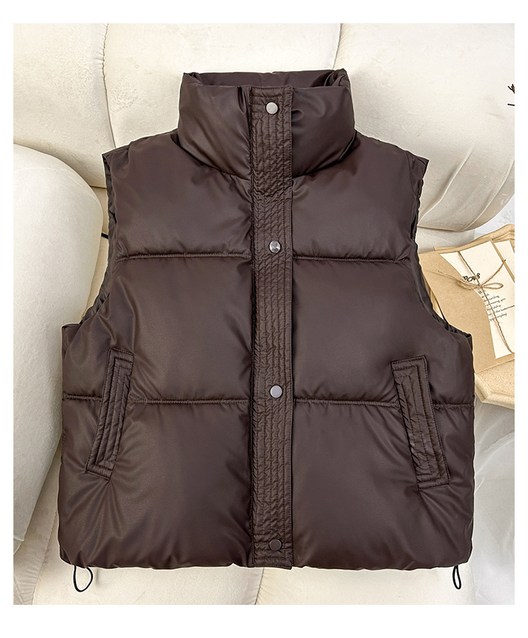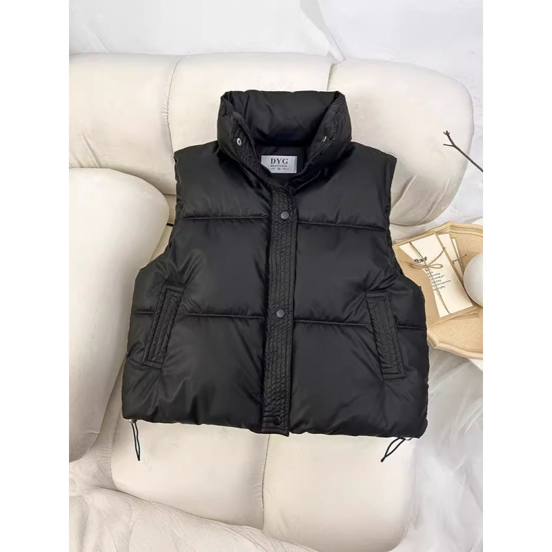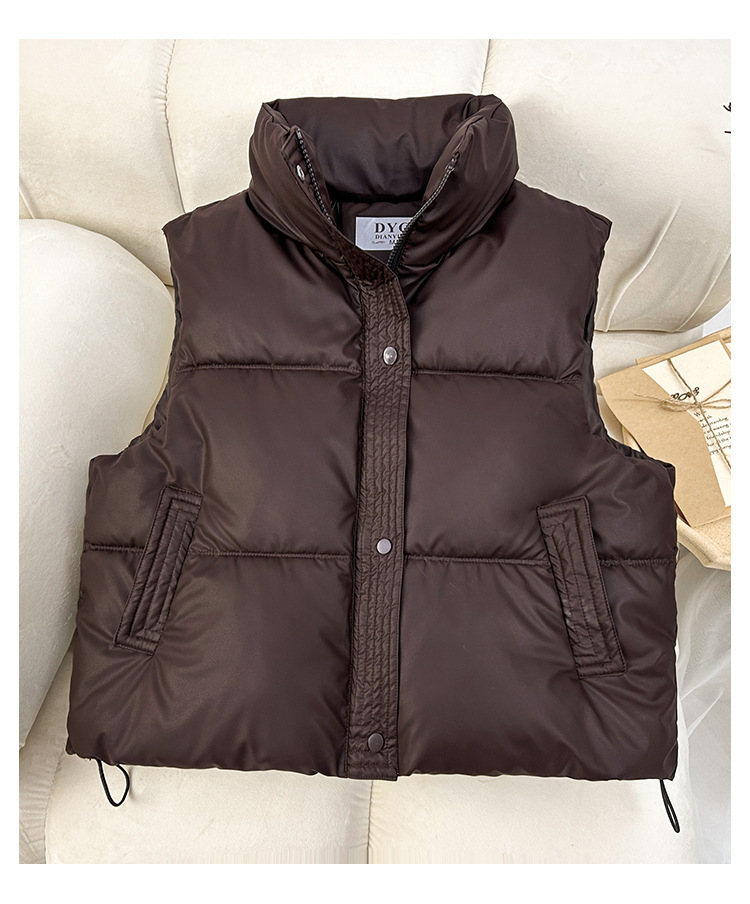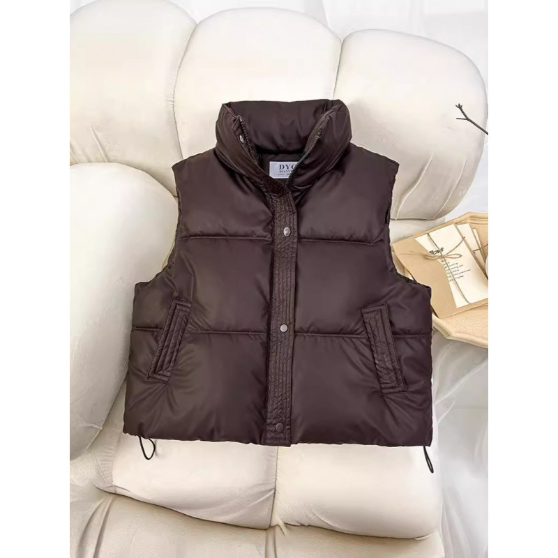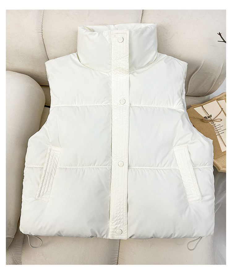 여성을위한 다운 코튼 조끼 2025 가을, 겨울 새로운 한국 스타일 느슨한 코튼 조끼 스탠드 칼라 솔리드 컬러 코튼 조끼 자켓