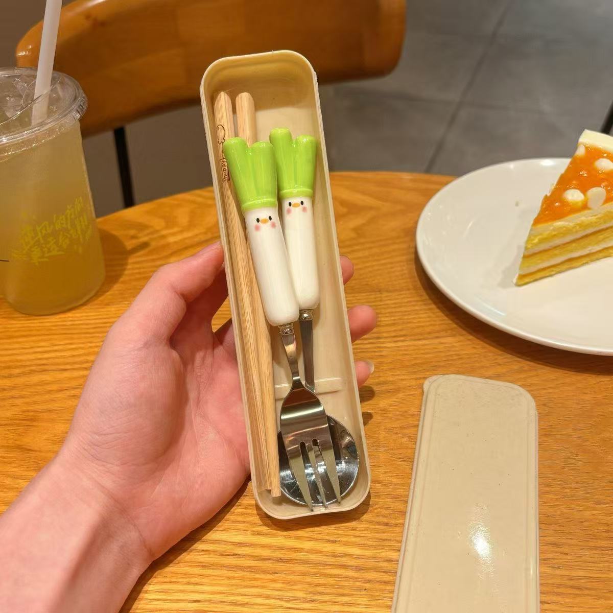 작은 파 친구 숟가락, 포크, 젓가락 (베이지색 상자)