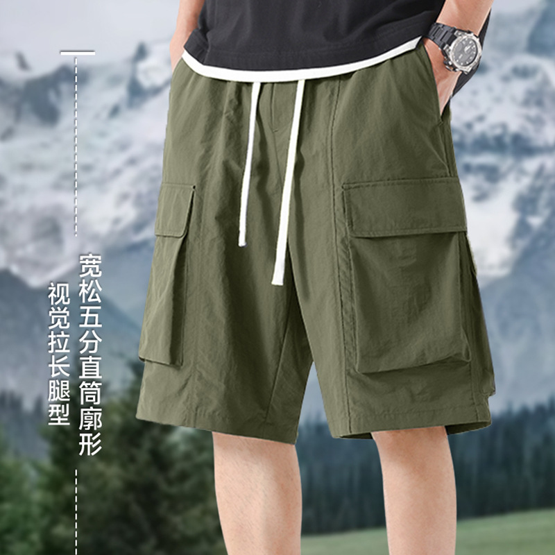 여름 아이스 실크 쿨 워크 쇼츠 남성용 얇은 속건성 반바지 캐주얼 바지 소년 루즈 스포츠 5부 바지
