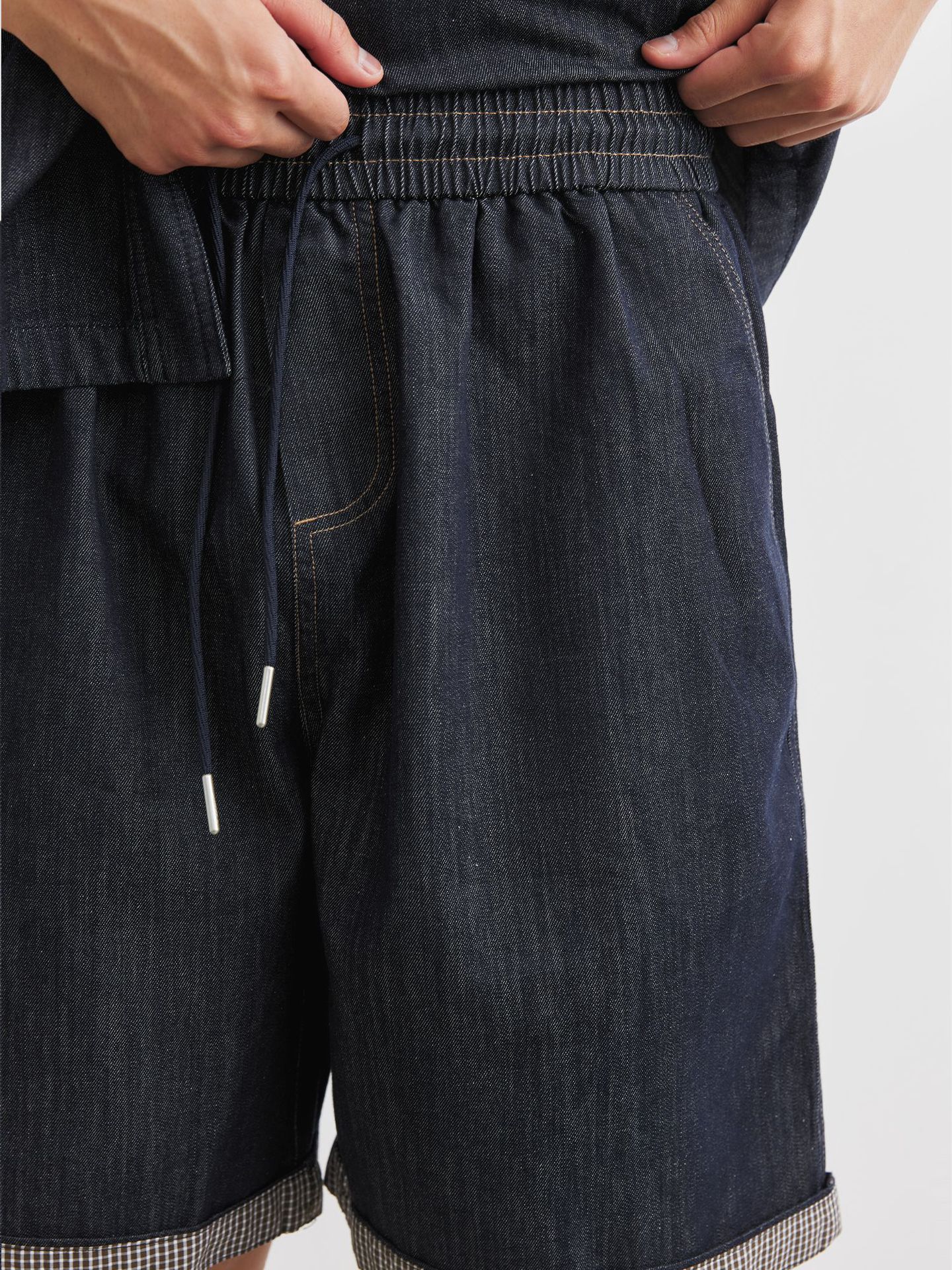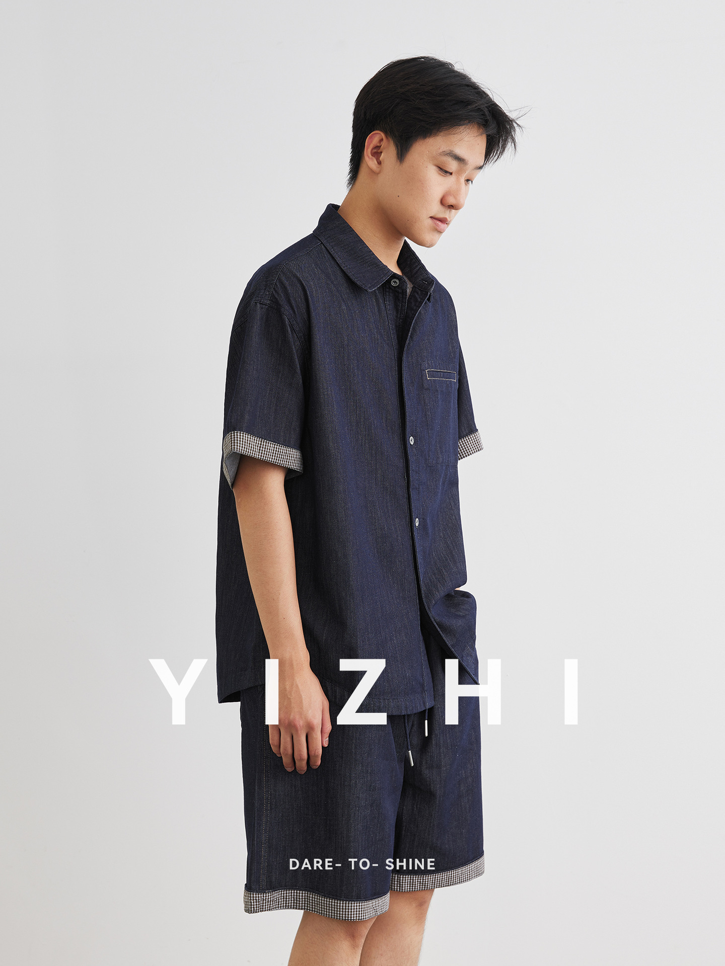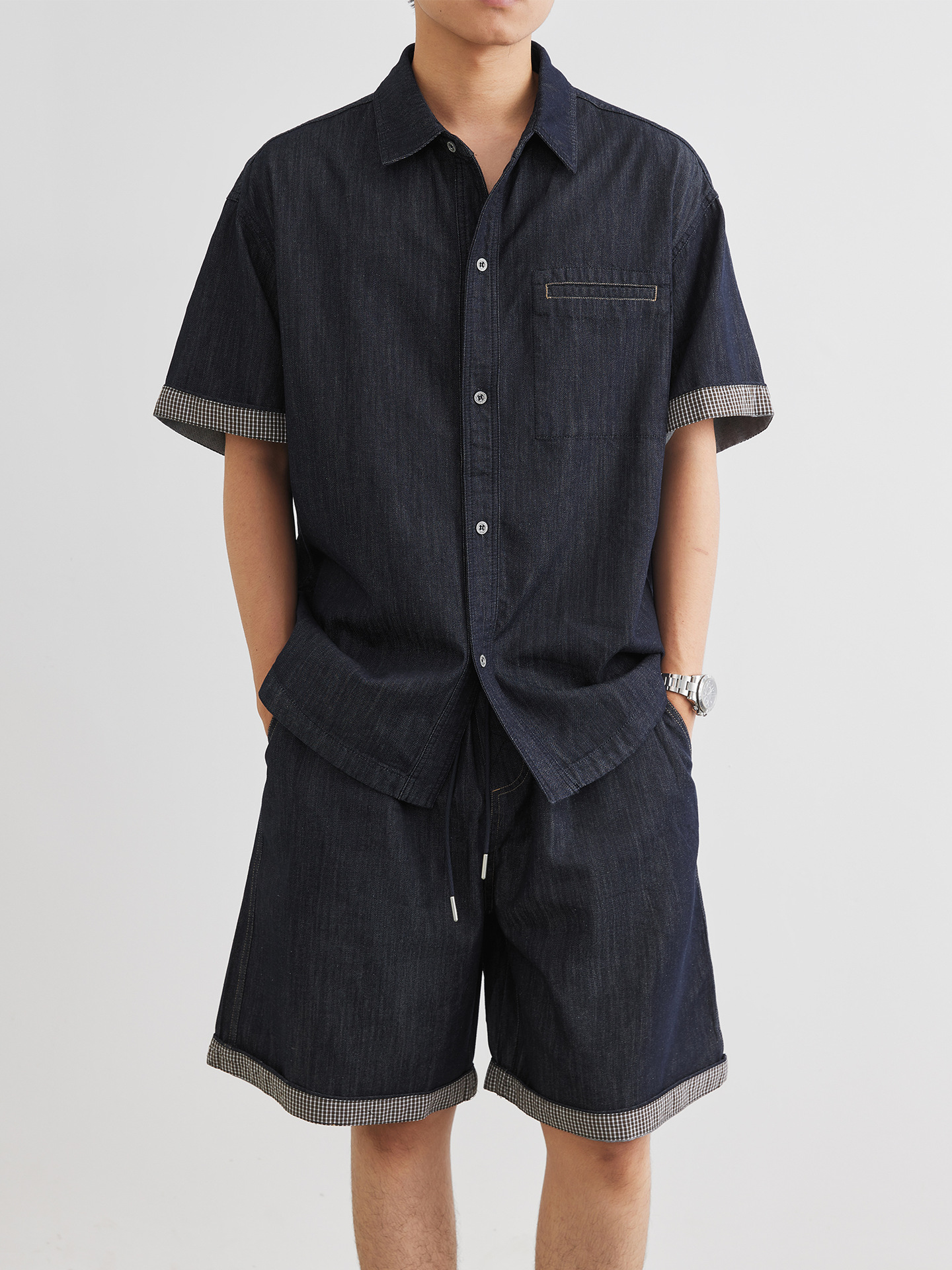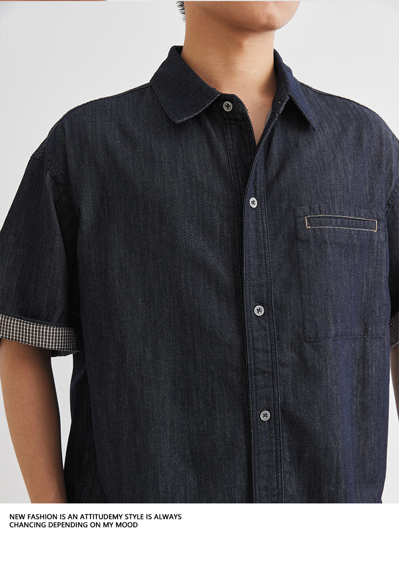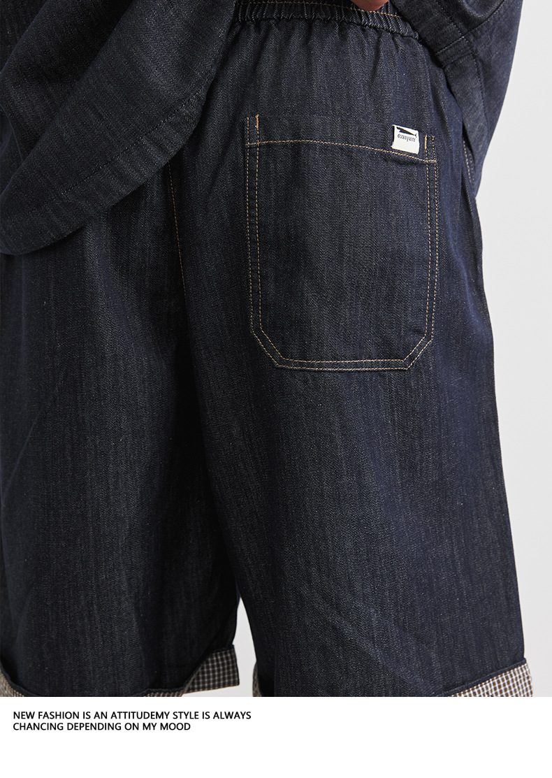 또한 남성용 데님 세트 반팔 셔츠 남성용 새 여름 캐주얼 셔츠 데님 반바지 2 세트