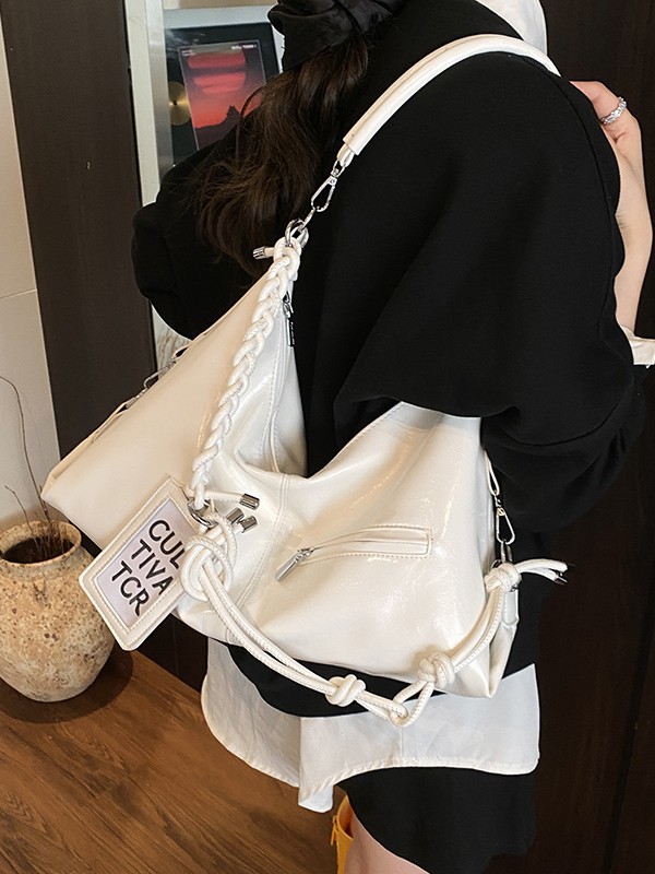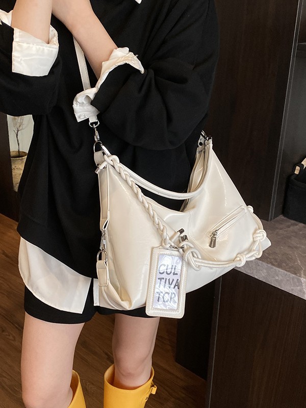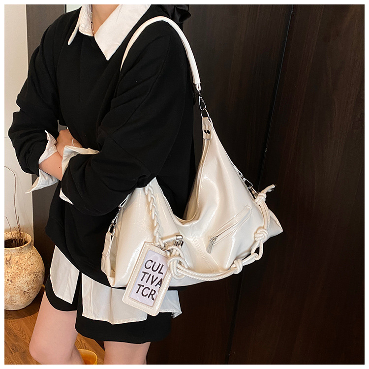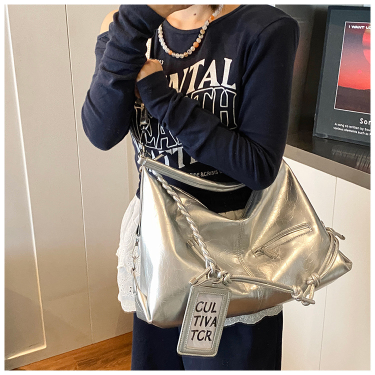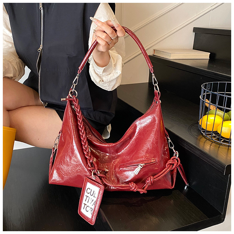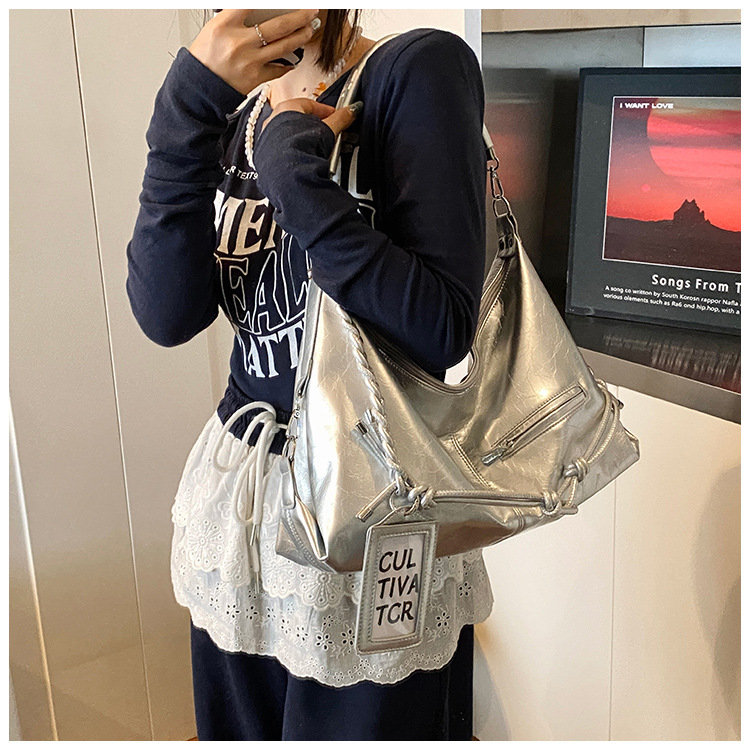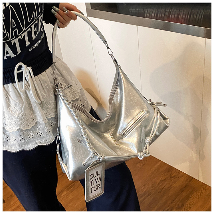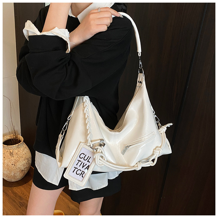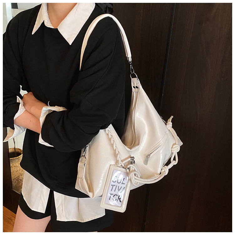 여름 가방 여성 통근 대용량 여성용 크로스 바디 백 카드 세트 2025 새로운 짠 휴대용 부드러운 가죽 토트 백