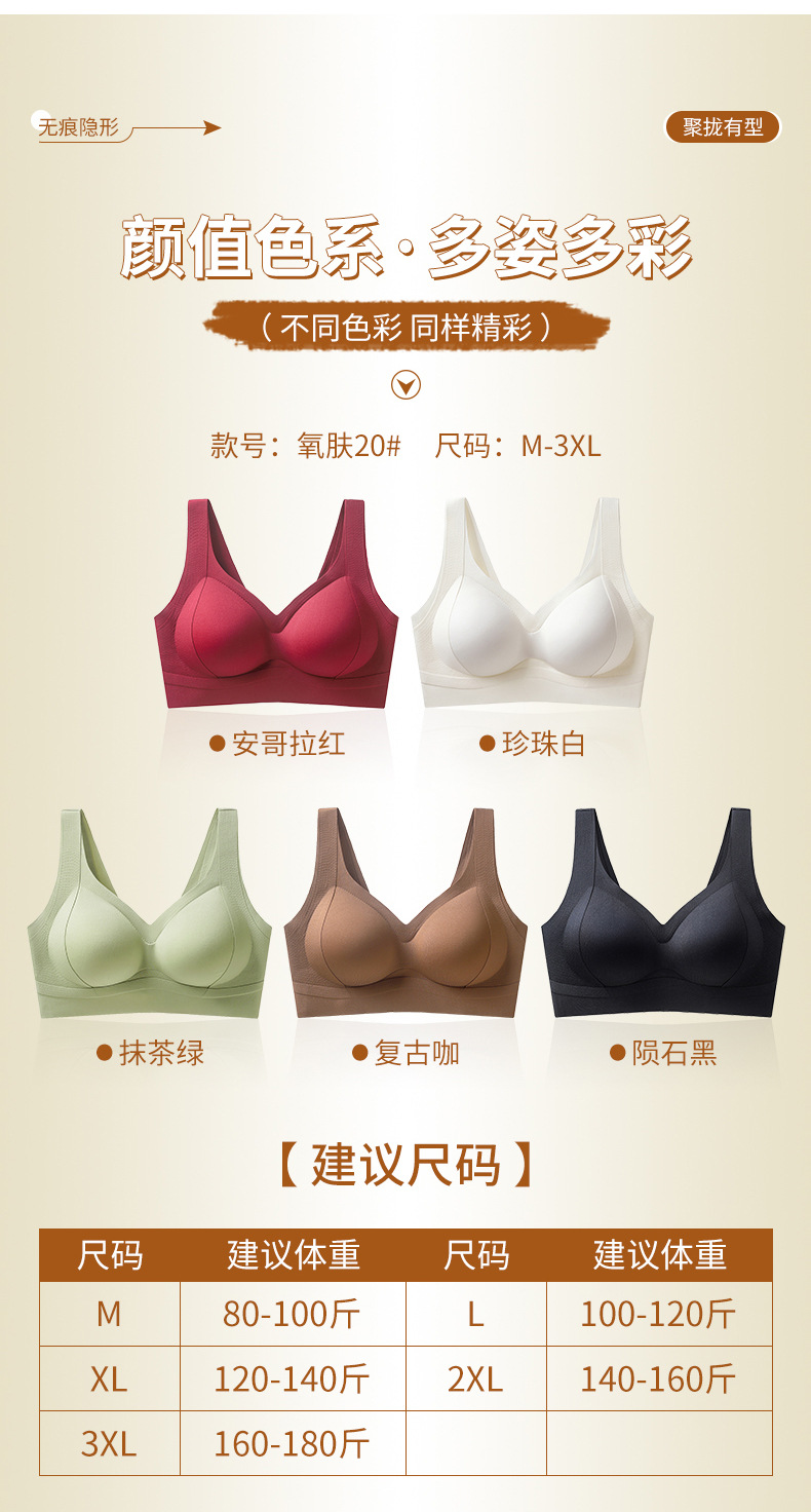 Oxygen Skin 20 핫 스타일 심리스 와이드 숄더 스트랩 속옷 7A 항균 반 중력 리프팅 푸시 업 처짐 방지 와이어 프리 브라