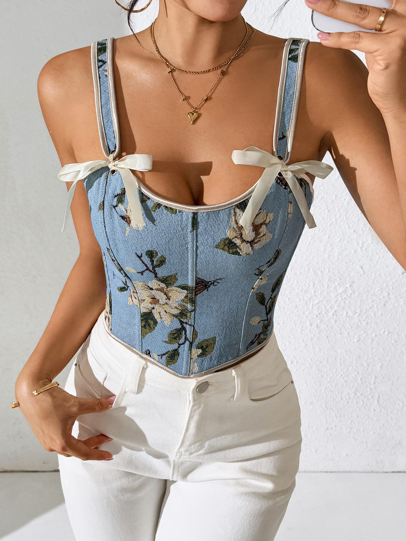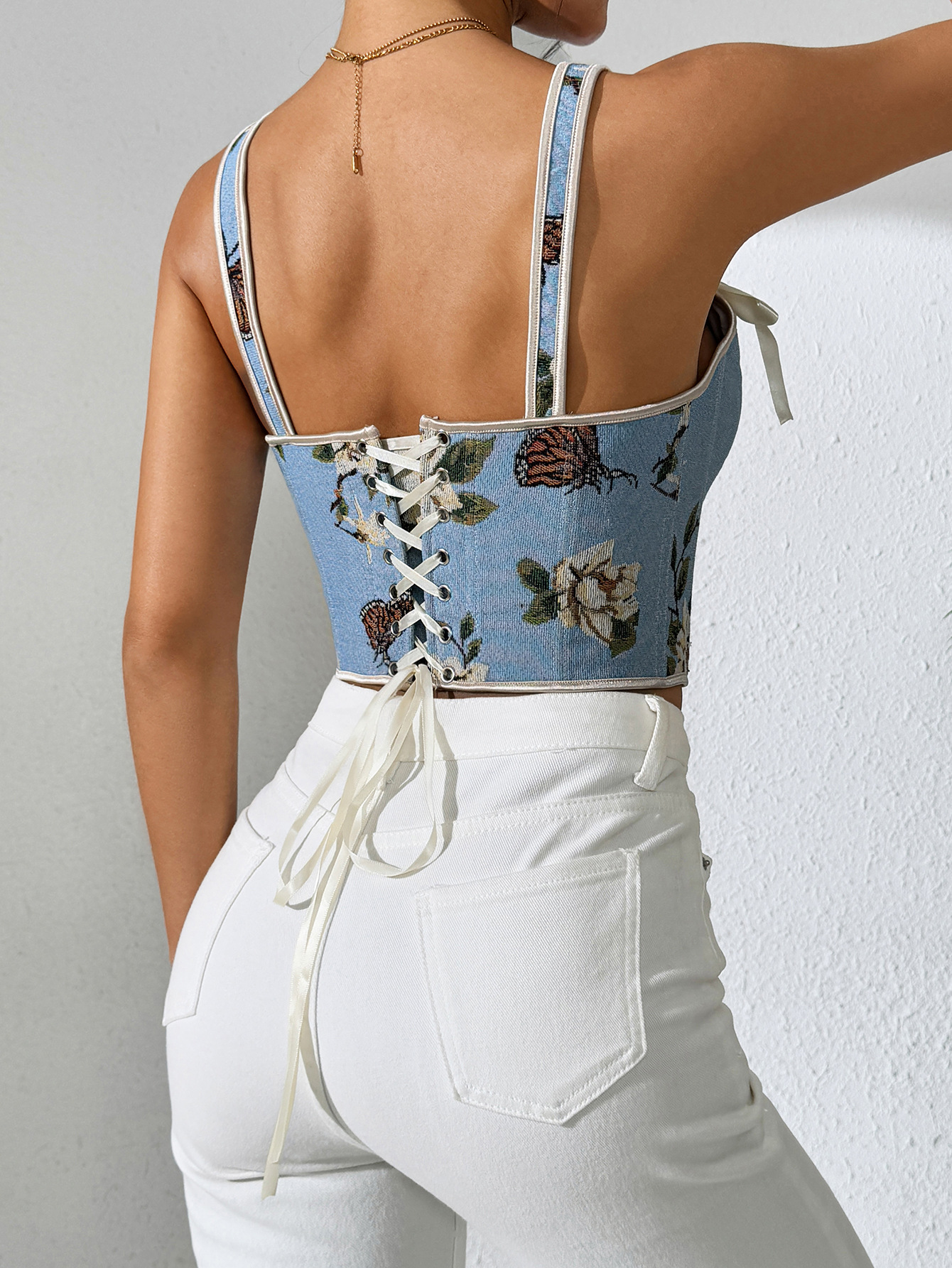 섹시한 스트랩 브라 크로스보더 유럽과 미국의 프렌치 플로럴 레트로 조끼 새로운 대외 무역 꽃 서스펜더 랩 가슴 코르셋