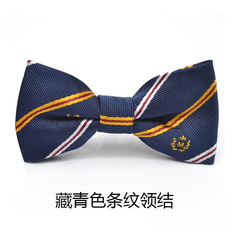 네이비 블루 스트라이프 나비 넥타이