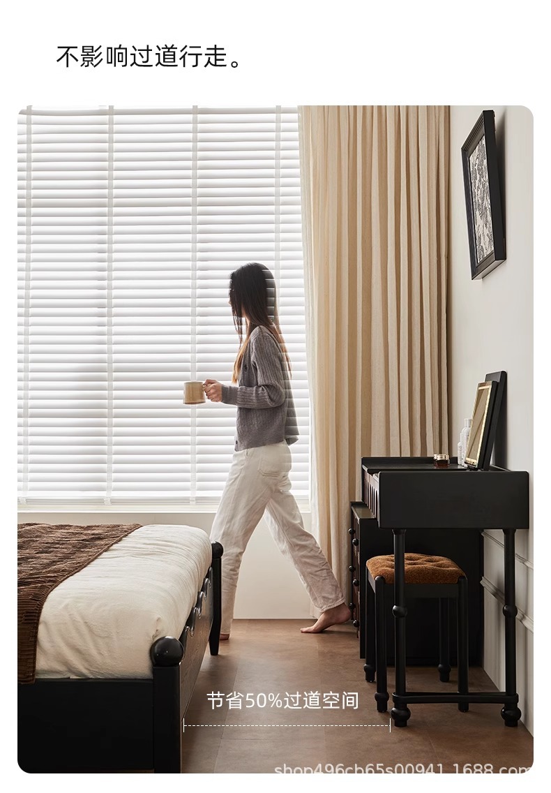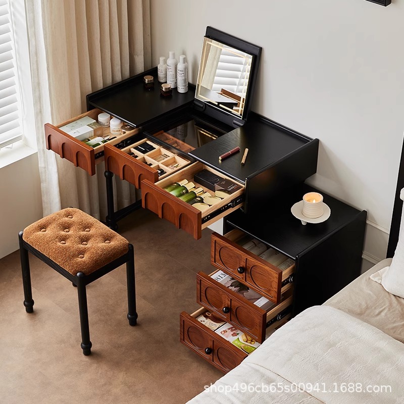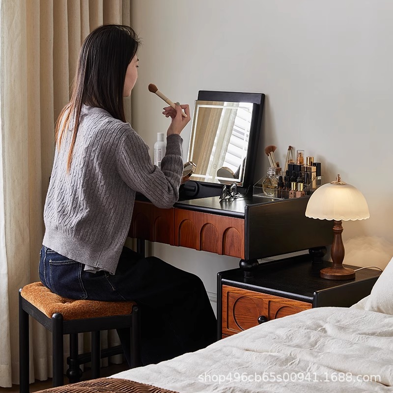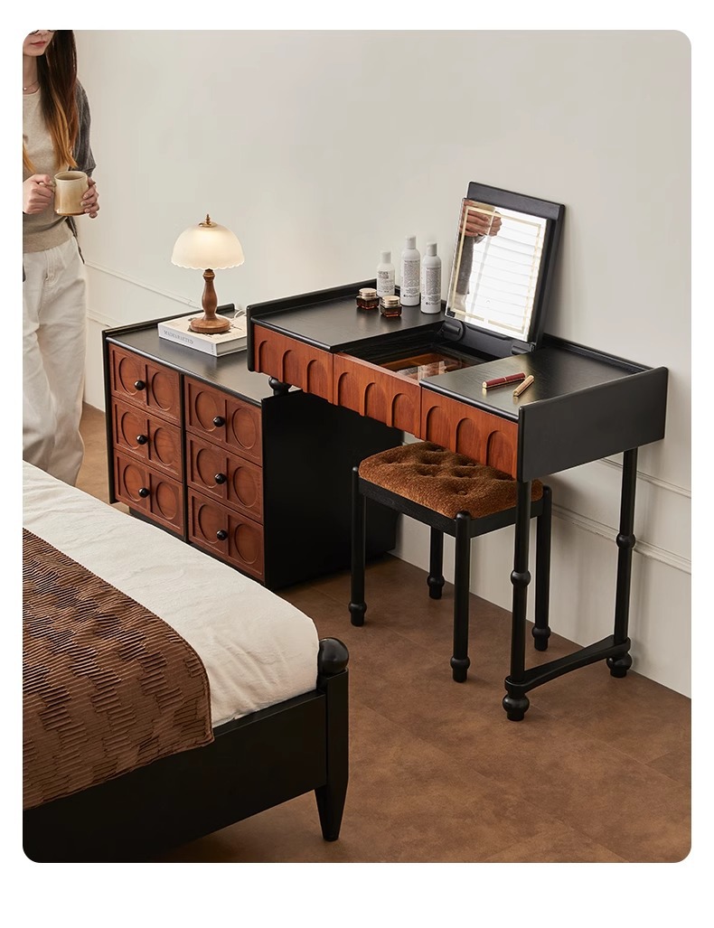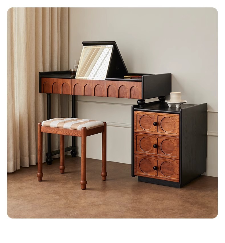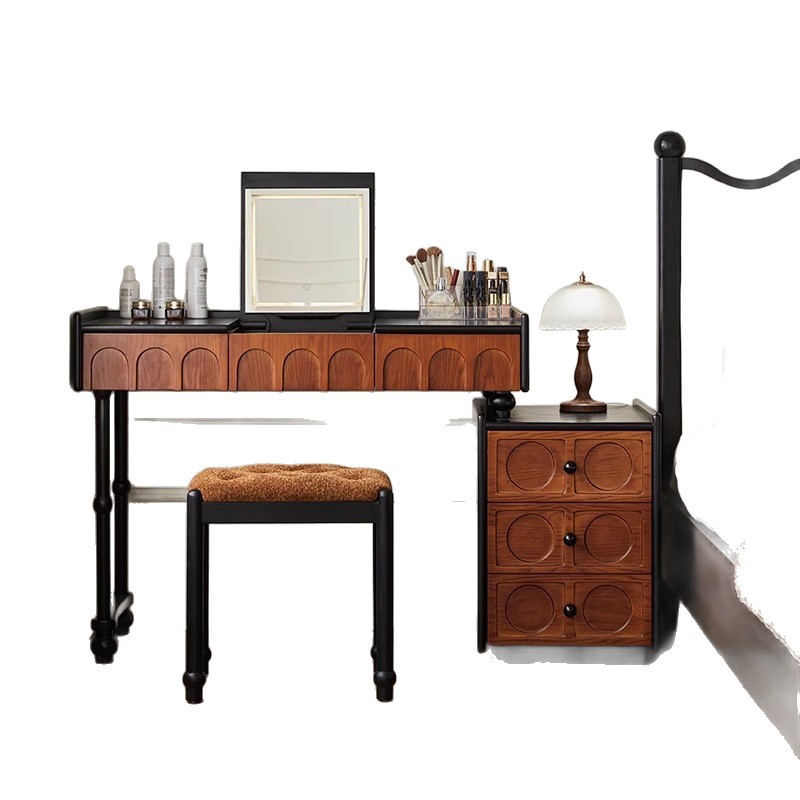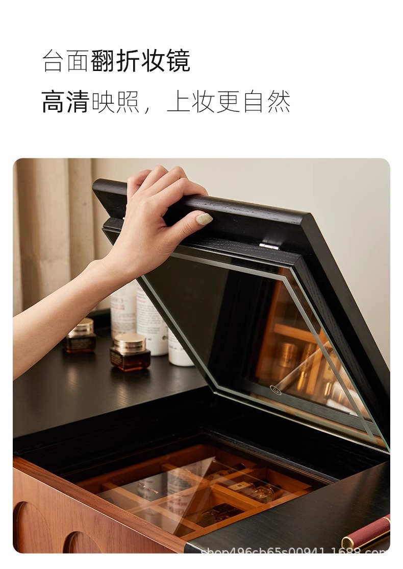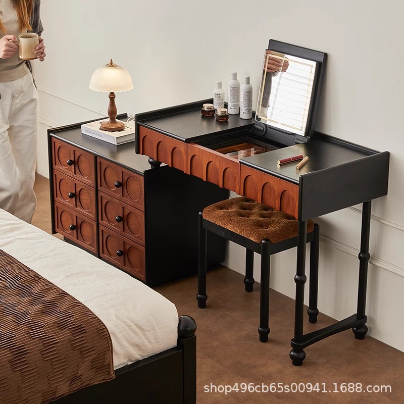 Hengwo 중세 스타일 단단한 나무 드레싱 테이블 일체형 캐비닛 침대 옆 테이블 책상 투인원 플립 침대 드레싱 테이블