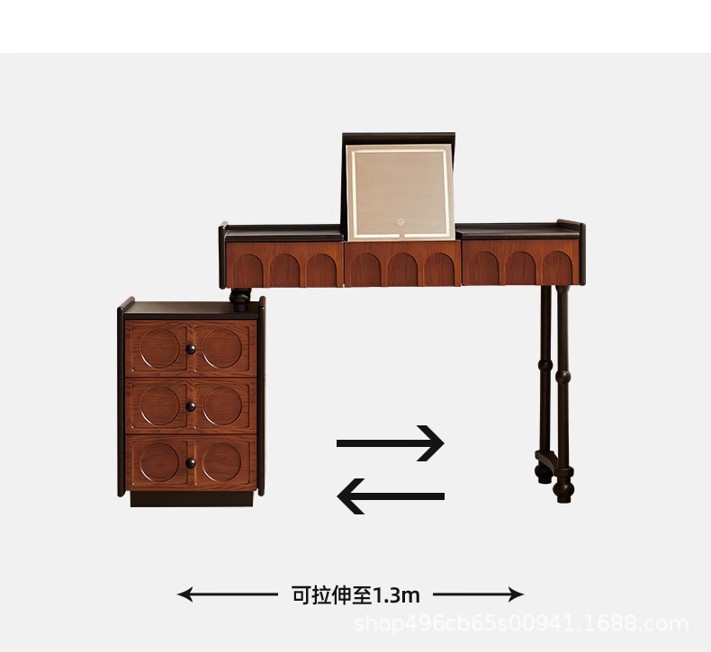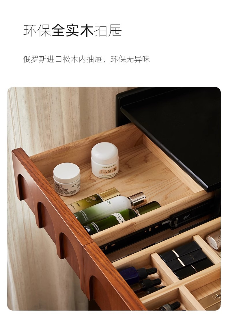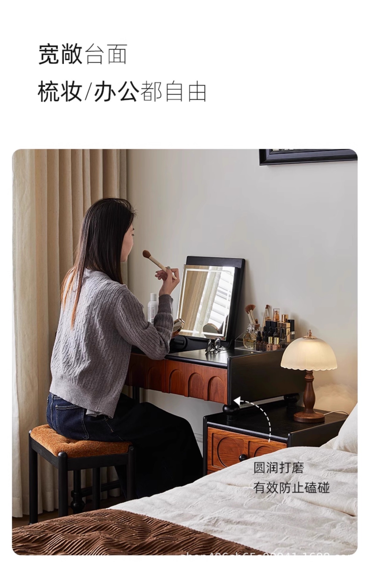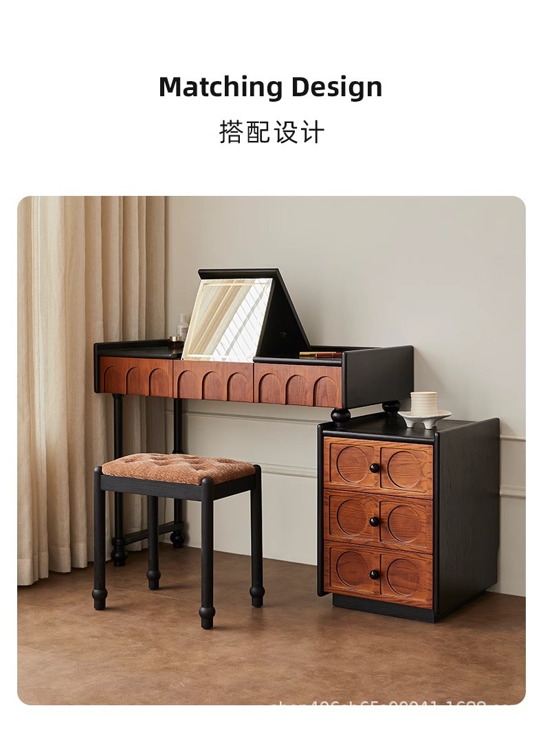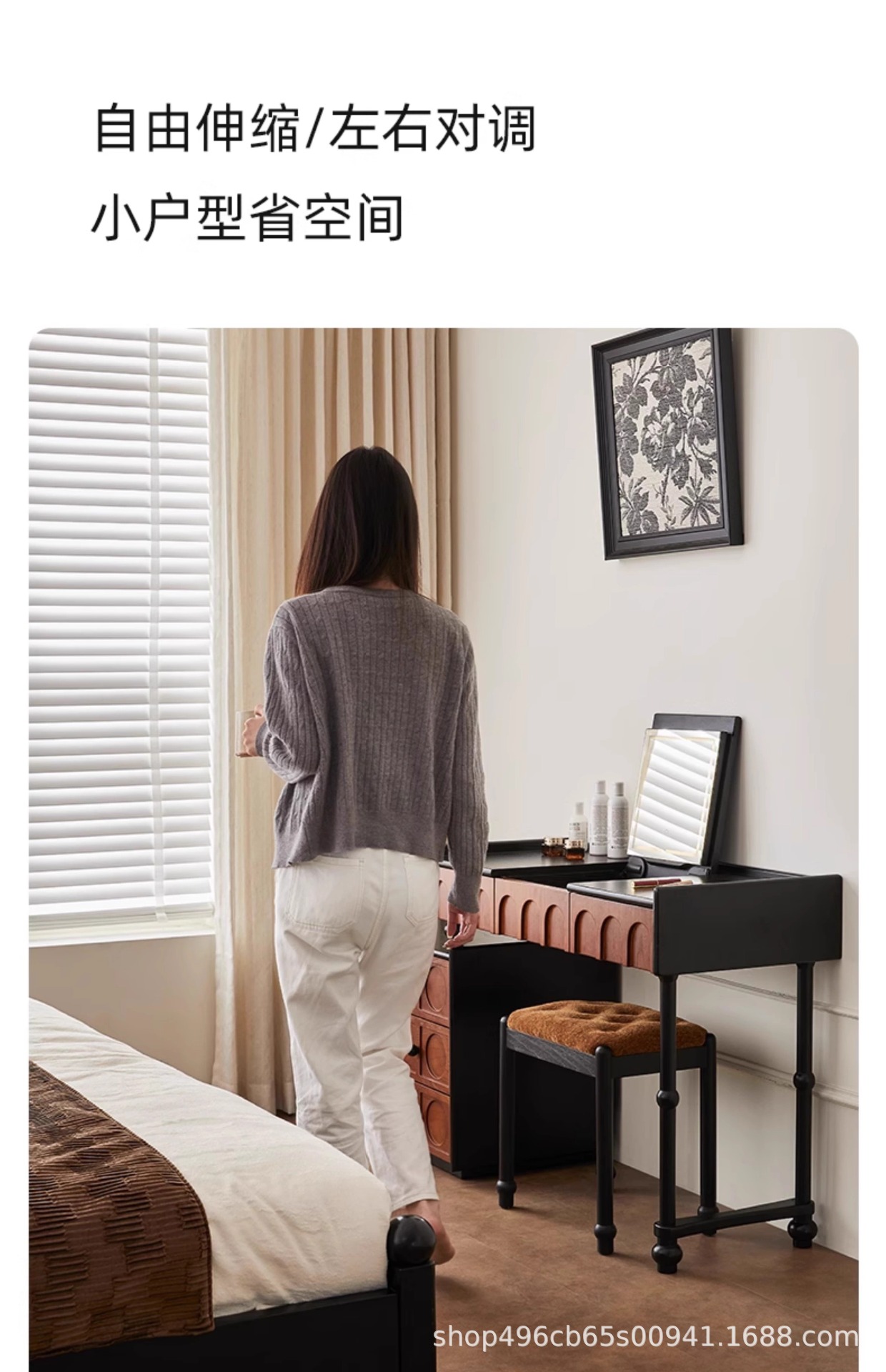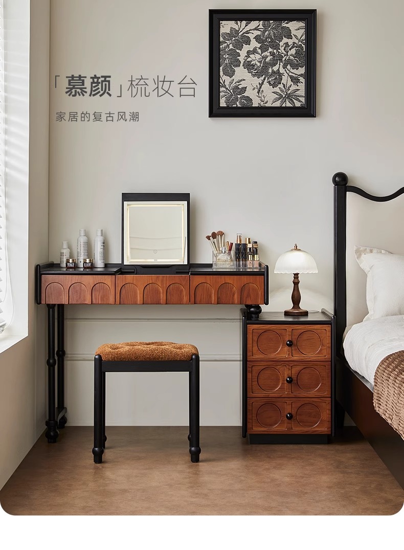 Hengwo 중세 스타일 단단한 나무 드레싱 테이블 일체형 캐비닛 침대 옆 테이블 책상 투인원 플립 침대 드레싱 테이블