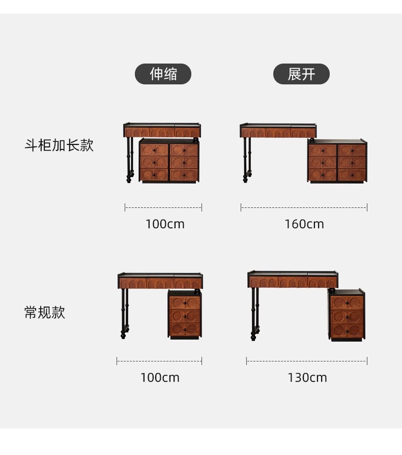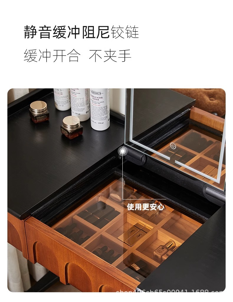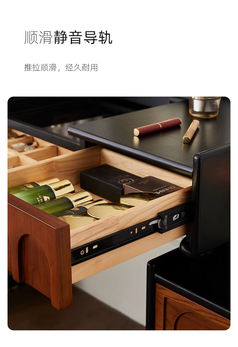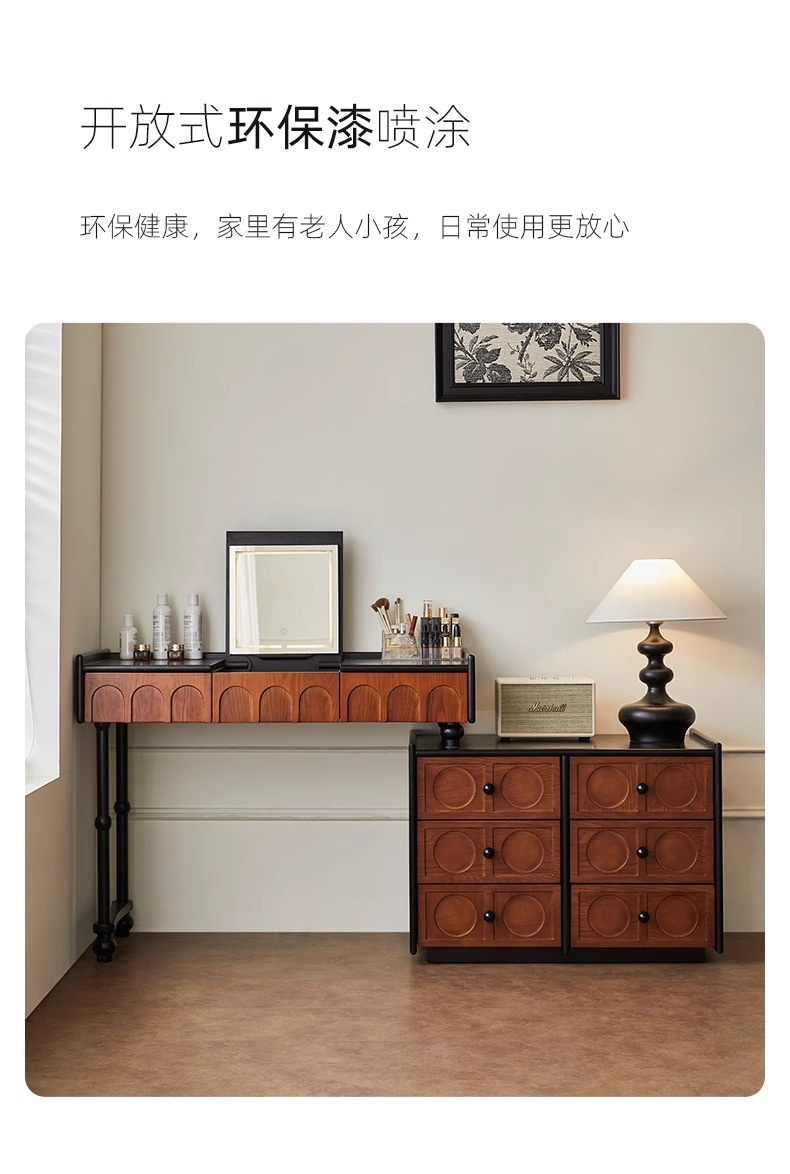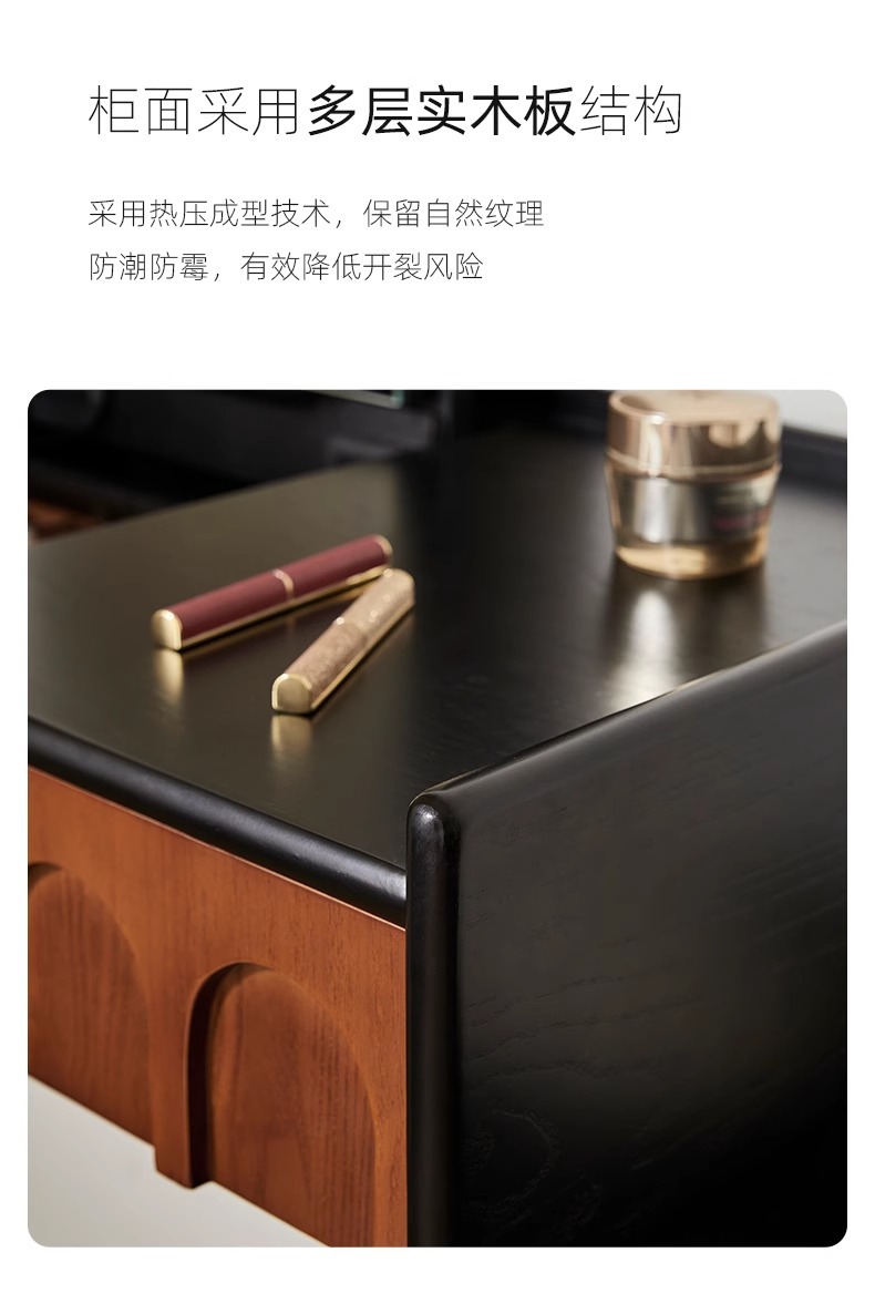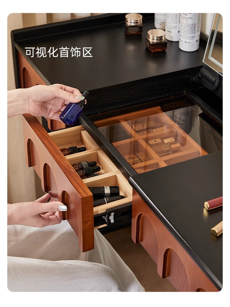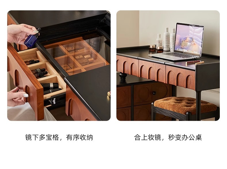 Hengwo 중세 스타일 단단한 나무 드레싱 테이블 일체형 캐비닛 침대 옆 테이블 책상 투인원 플립 침대 드레싱 테이블
