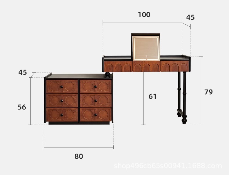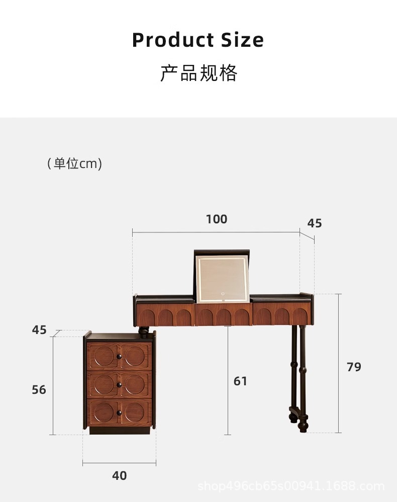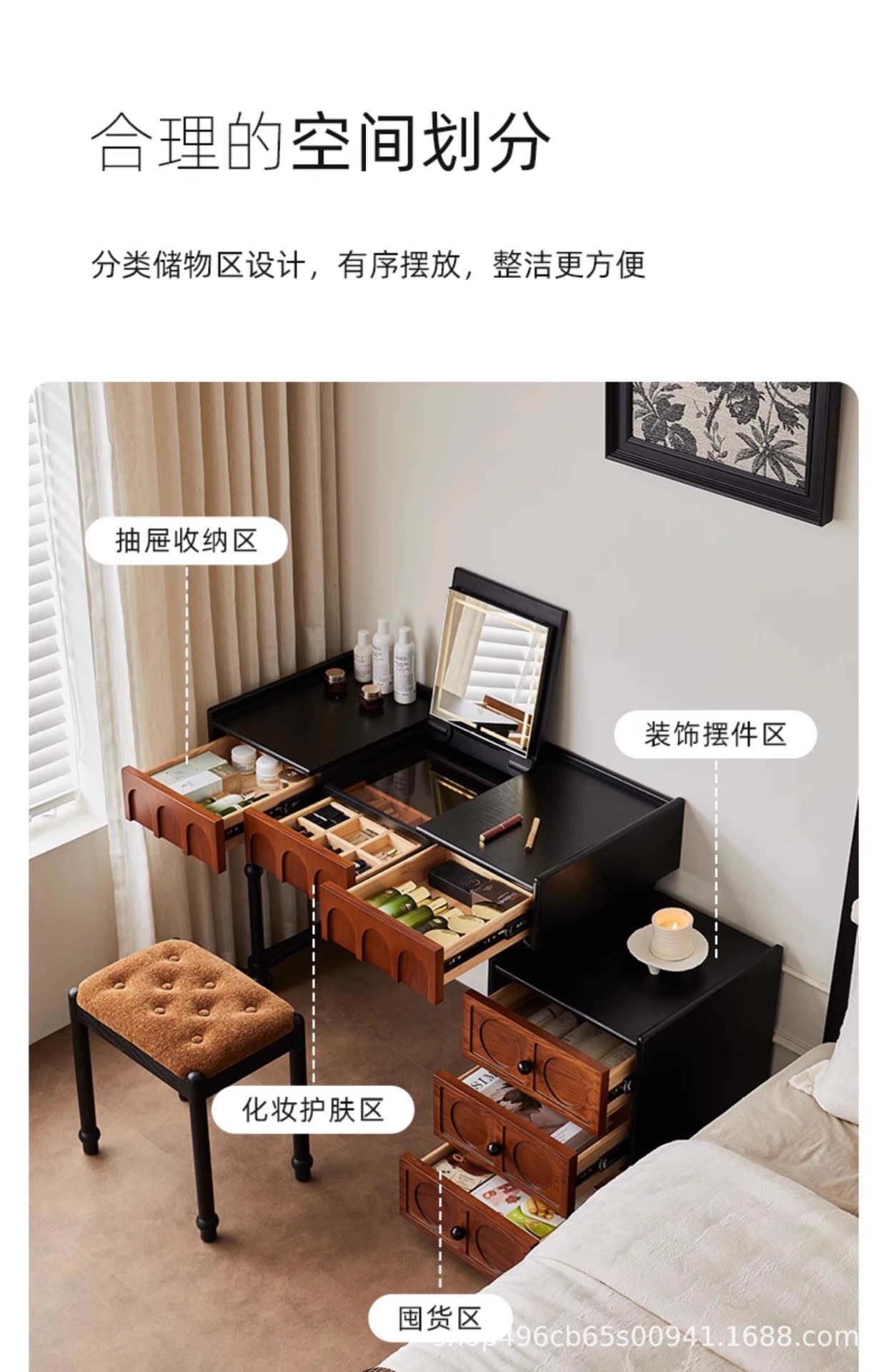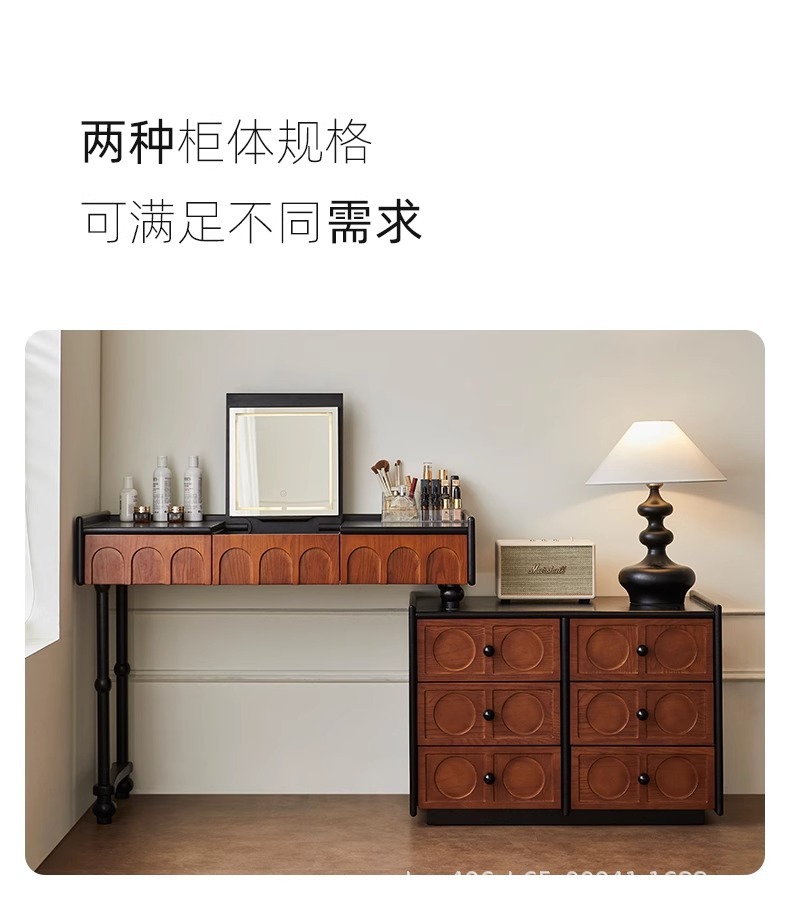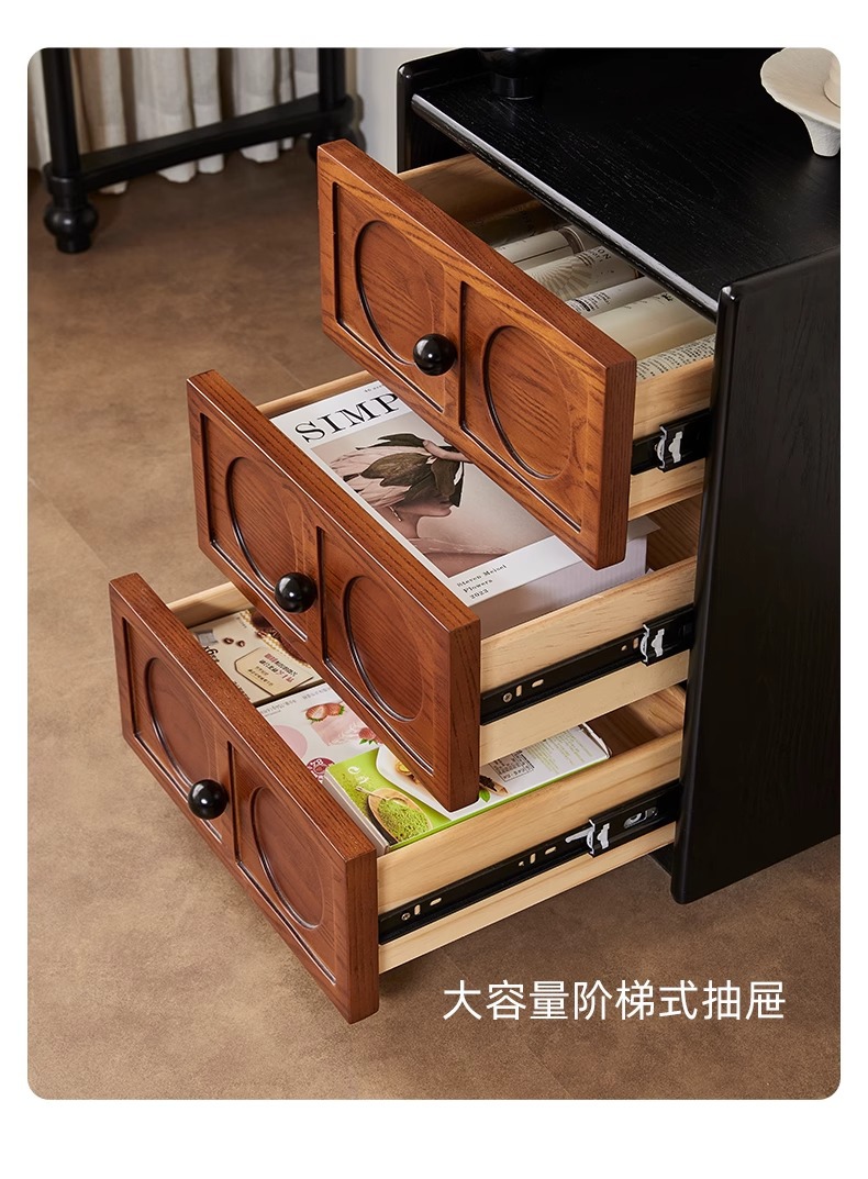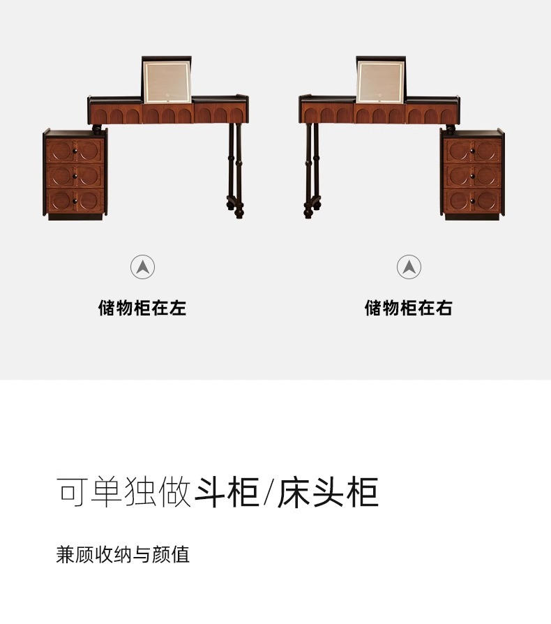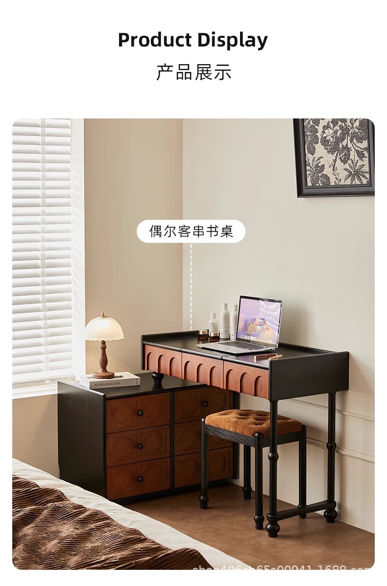Hengwo 중세 스타일 단단한 나무 드레싱 테이블 일체형 캐비닛 침대 옆 테이블 책상 투인원 플립 침대 드레싱 테이블