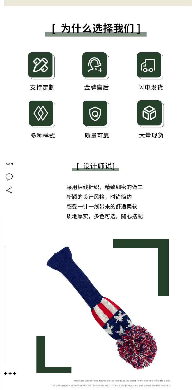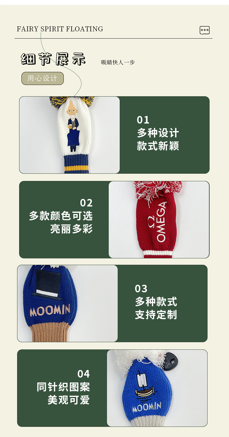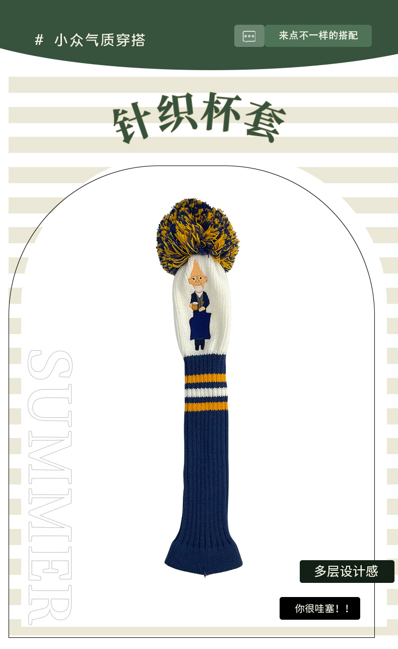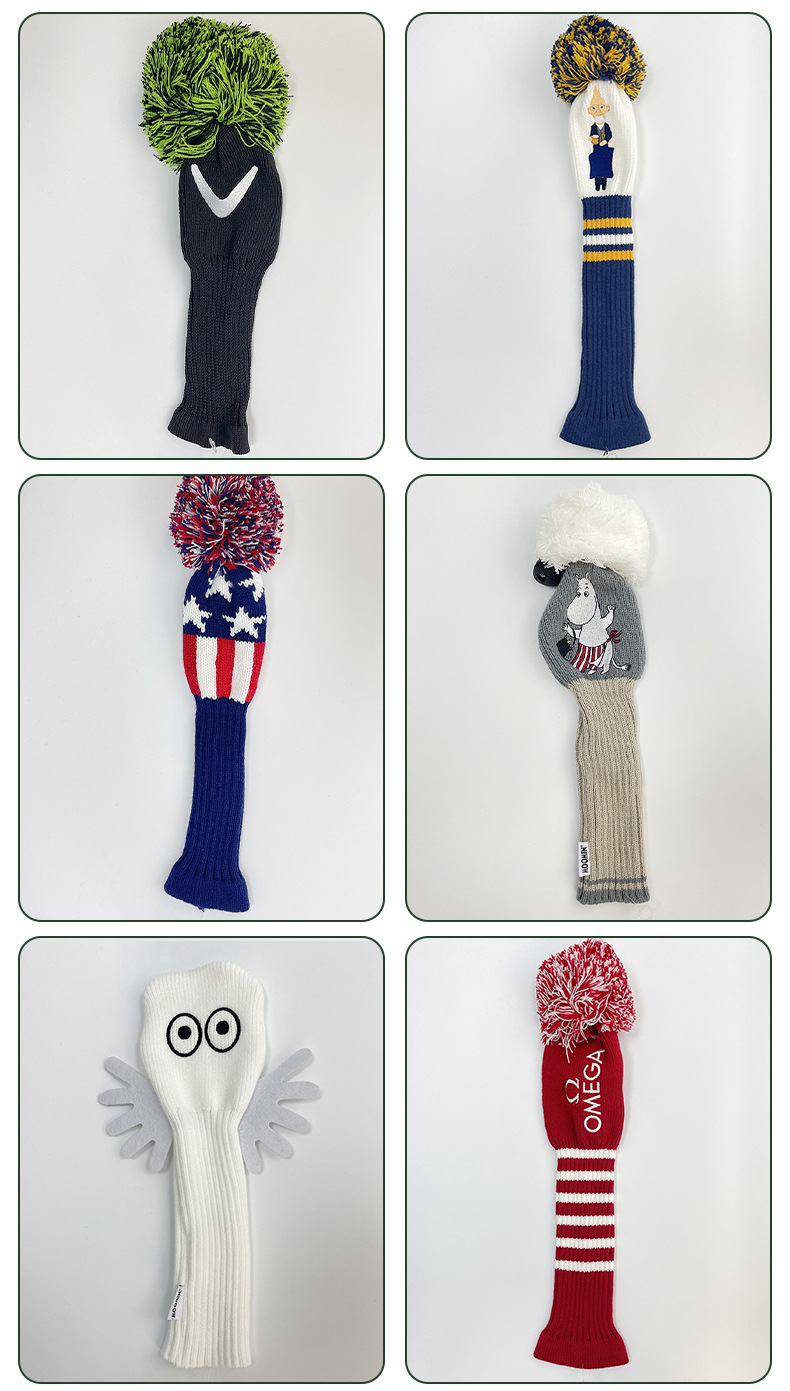 골프 클럽 커버 맞춤형 울 파란색과 흰색 니트 클럽 헤드 커버 보호 캡 커버 골프 용품 액세서리