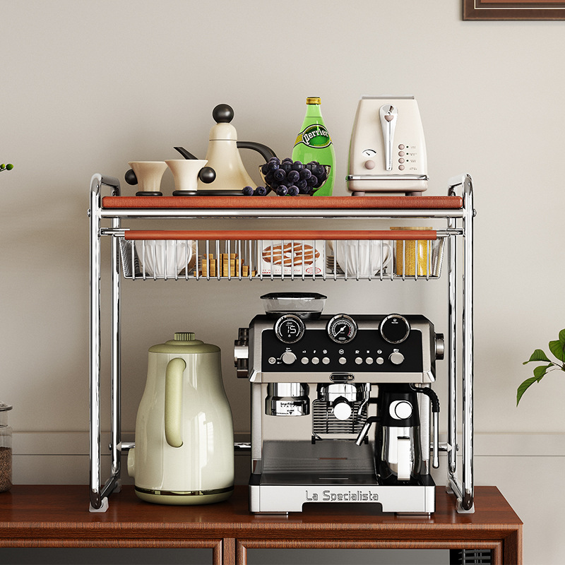 중세풍 커피 머신 수납 선반, 슬라이드형 테이블탑 컵 홀더, 주방용품 소형 가전 수납 선반