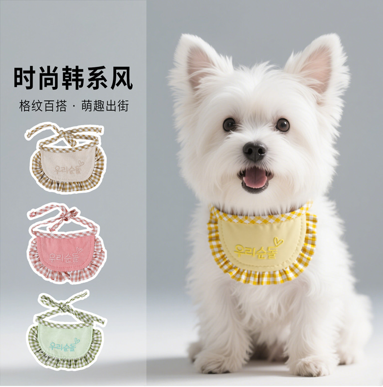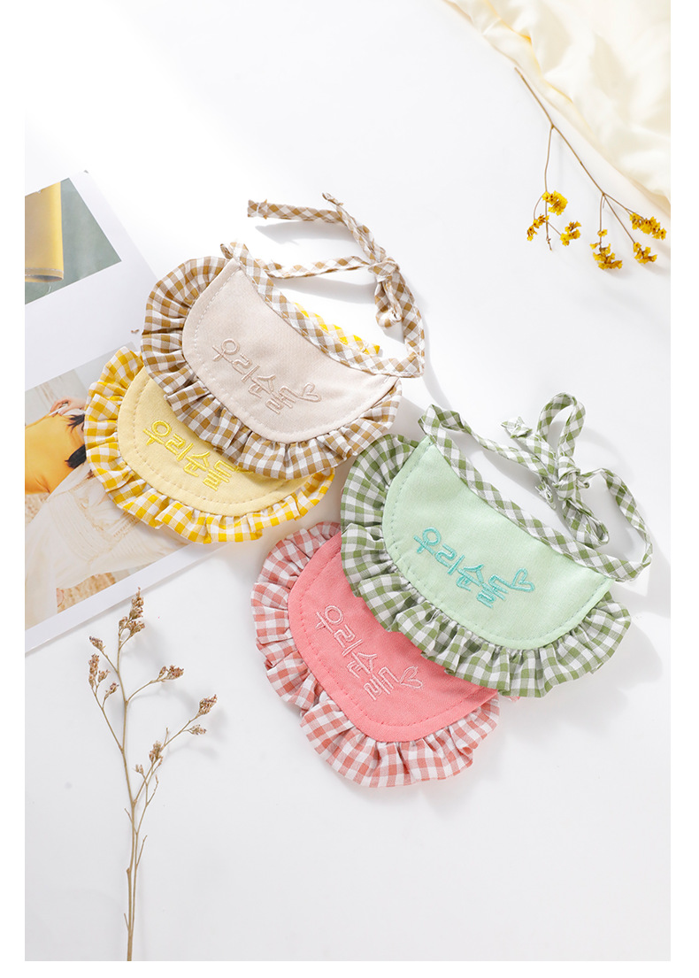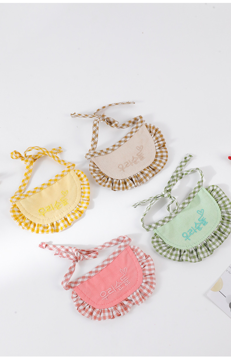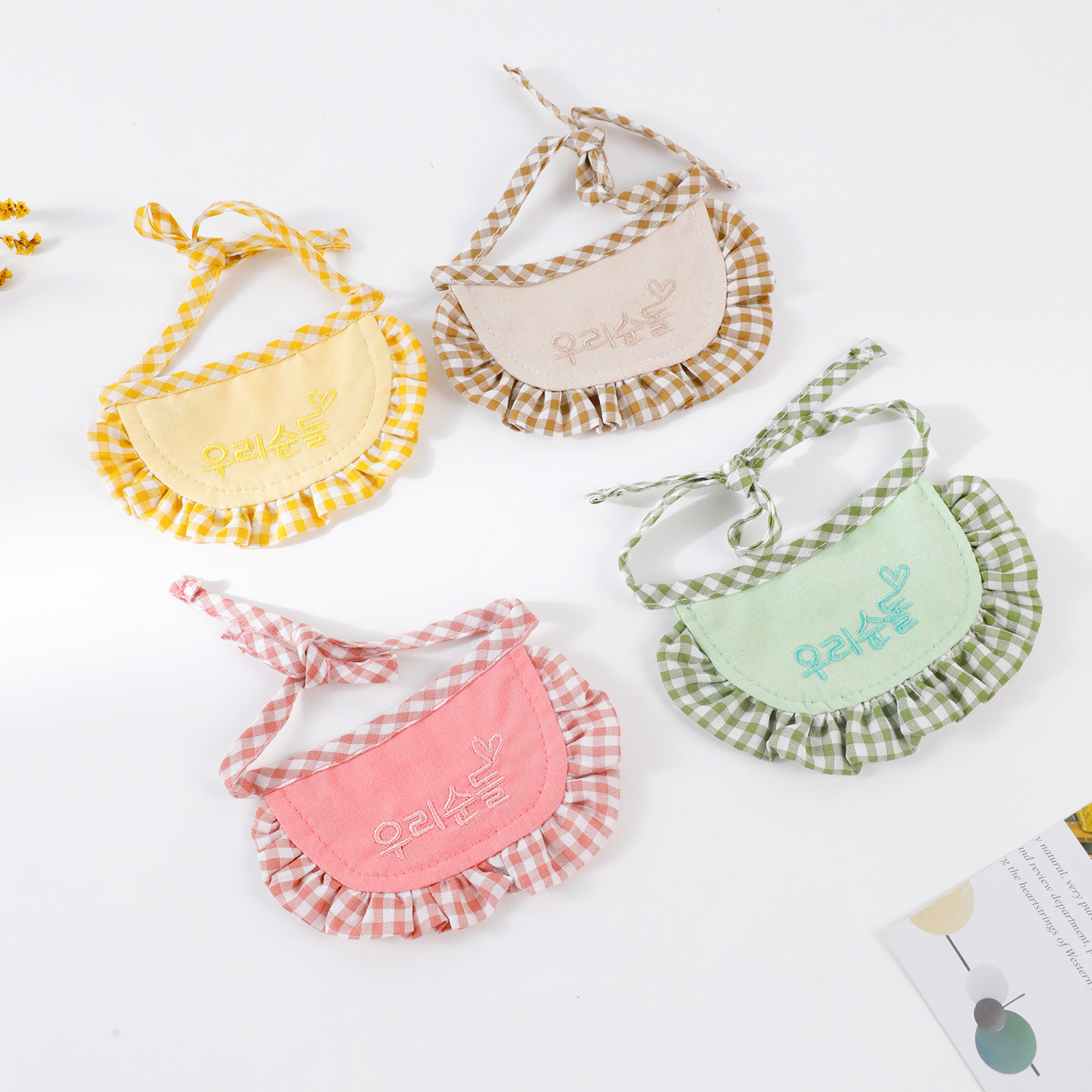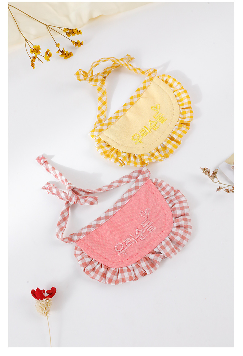 애완 동물 스카프 한국 격자 무늬 면 미끄러운 수건 조정 가능한 개 수 놓은 턱받이 고양이 안티 더러운 스카프 액세서리