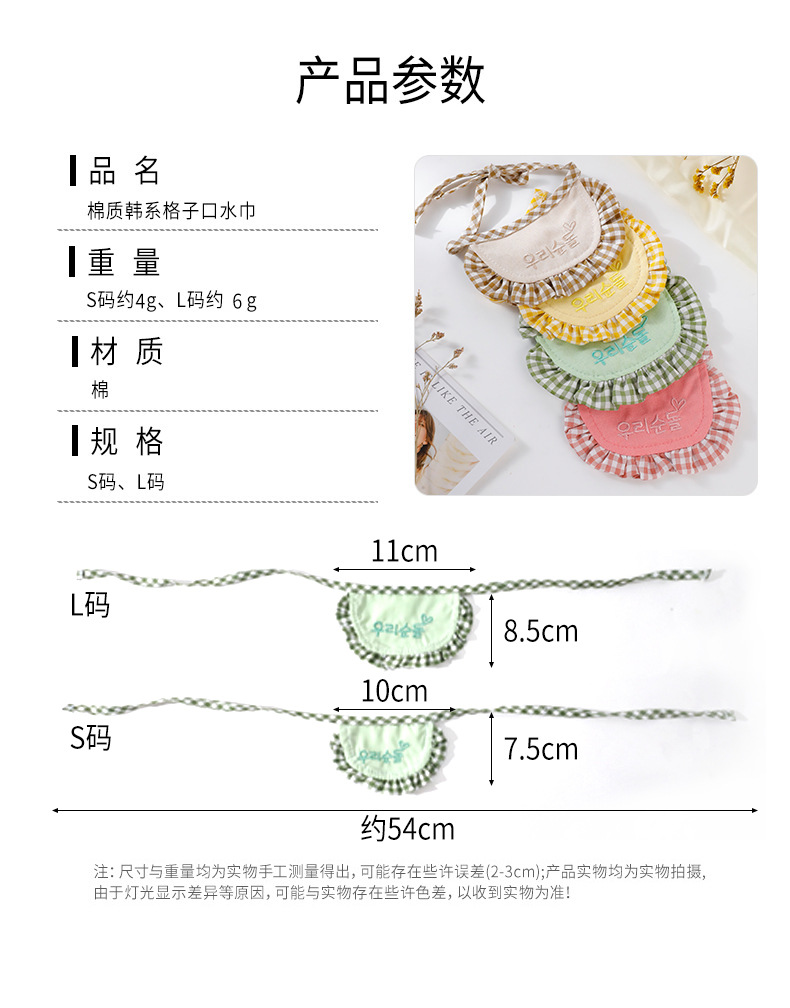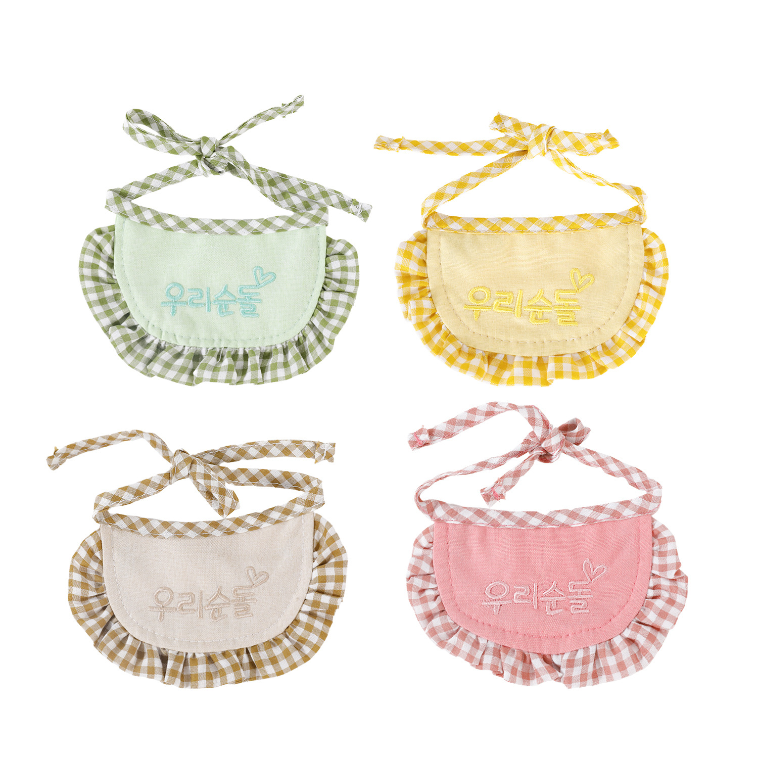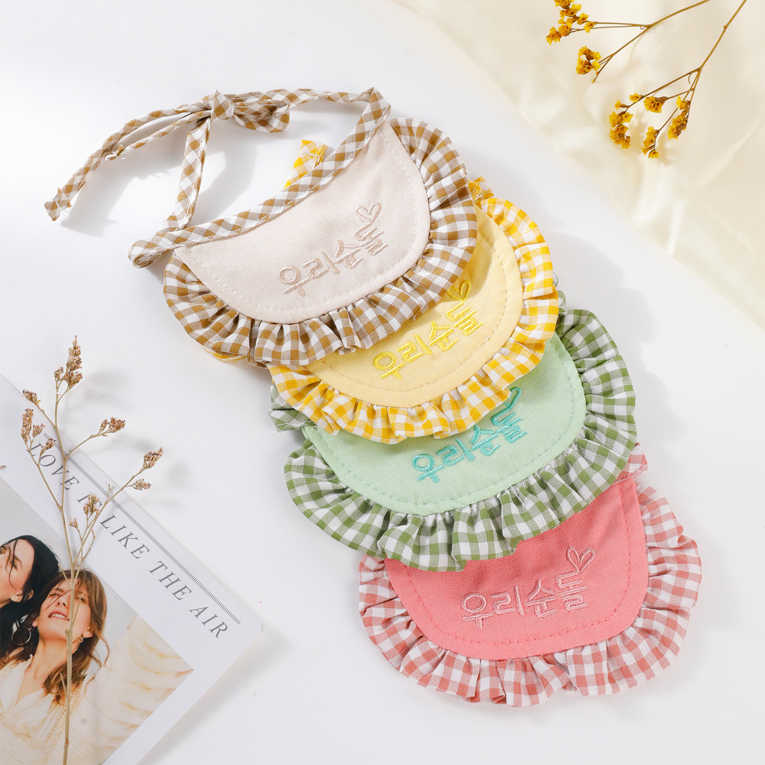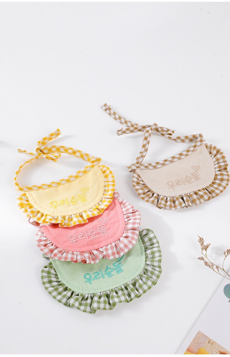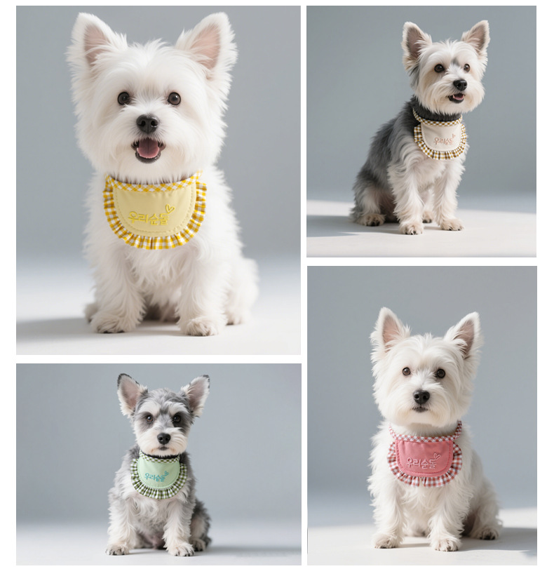 애완 동물 스카프 한국 격자 무늬 면 미끄러운 수건 조정 가능한 개 수 놓은 턱받이 고양이 안티 더러운 스카프 액세서리
