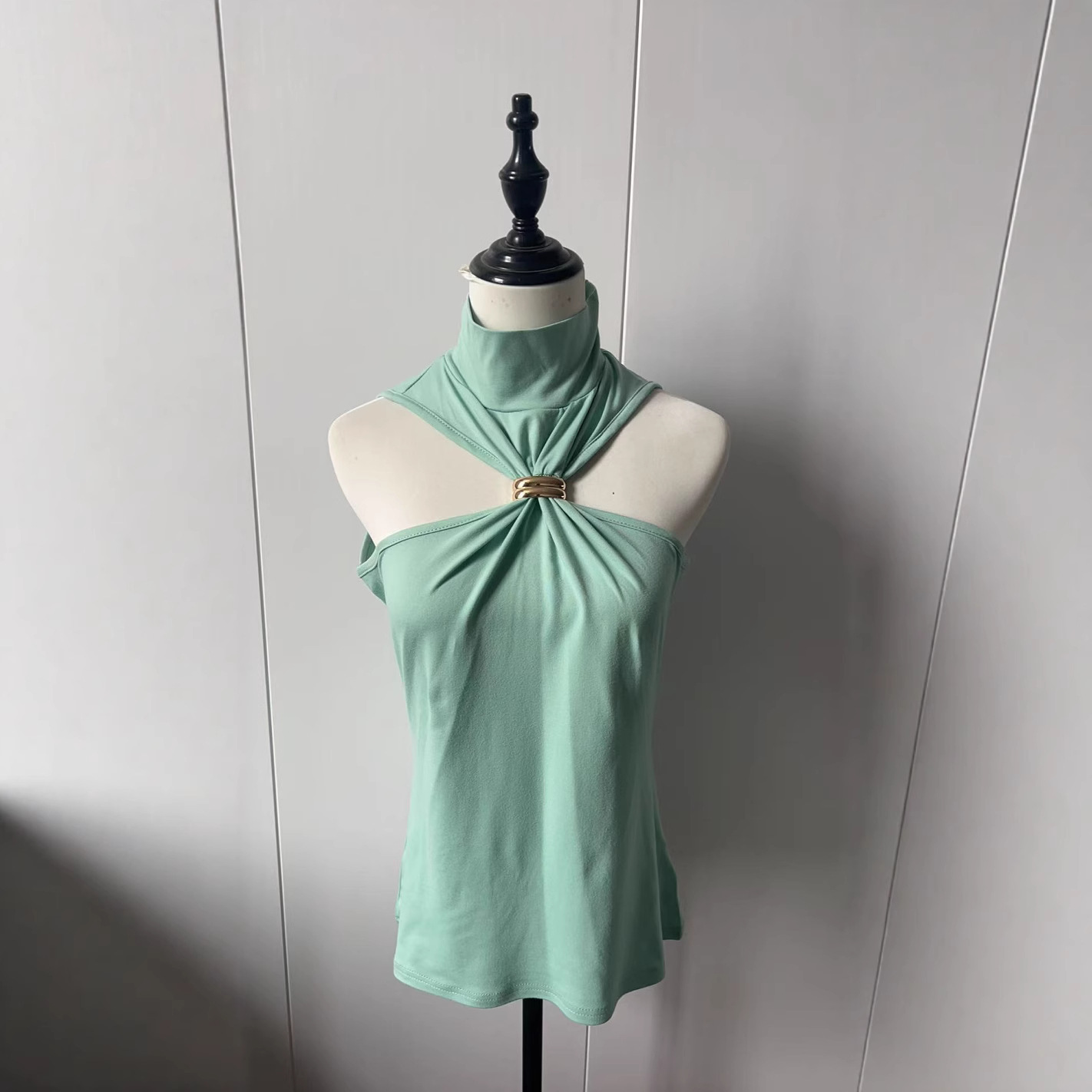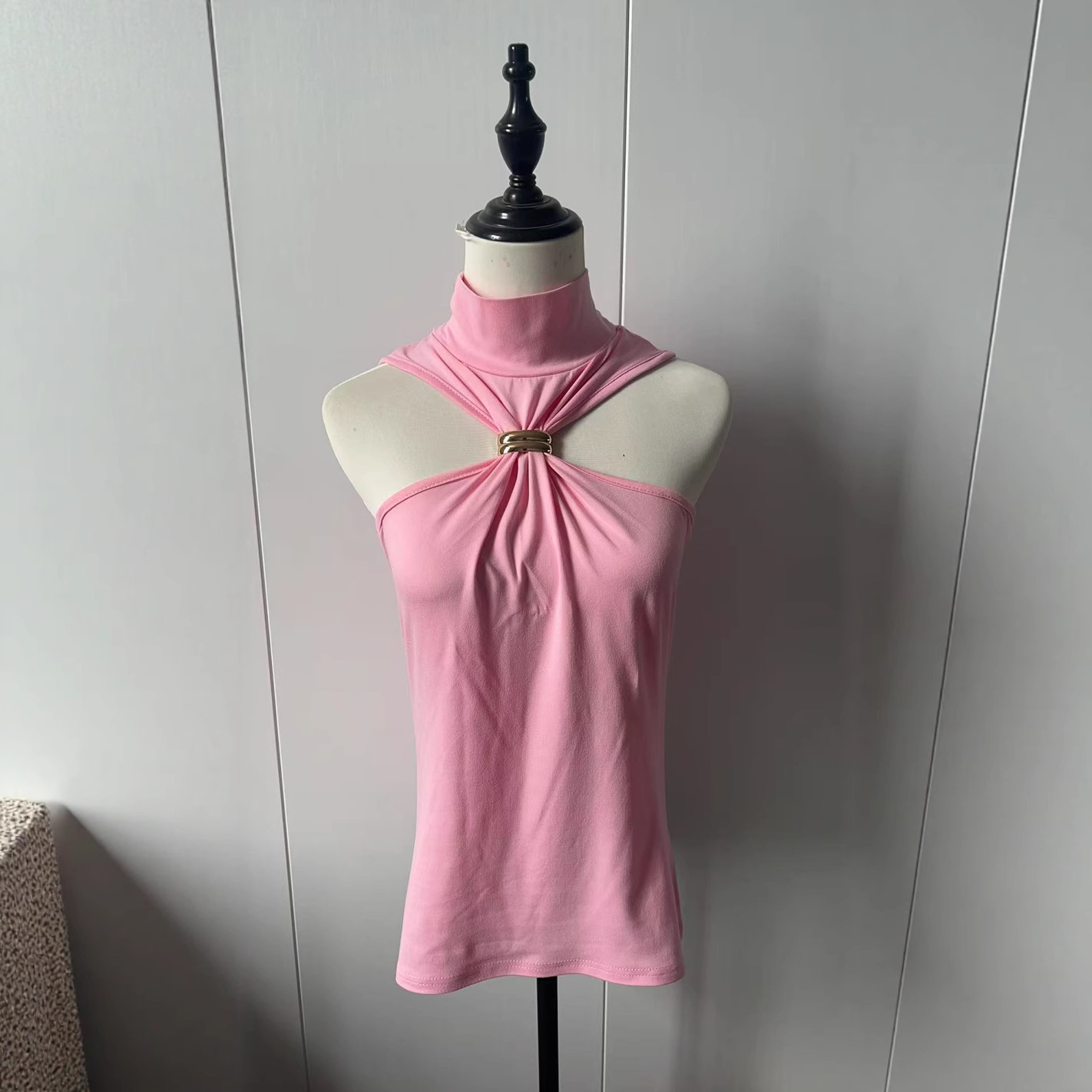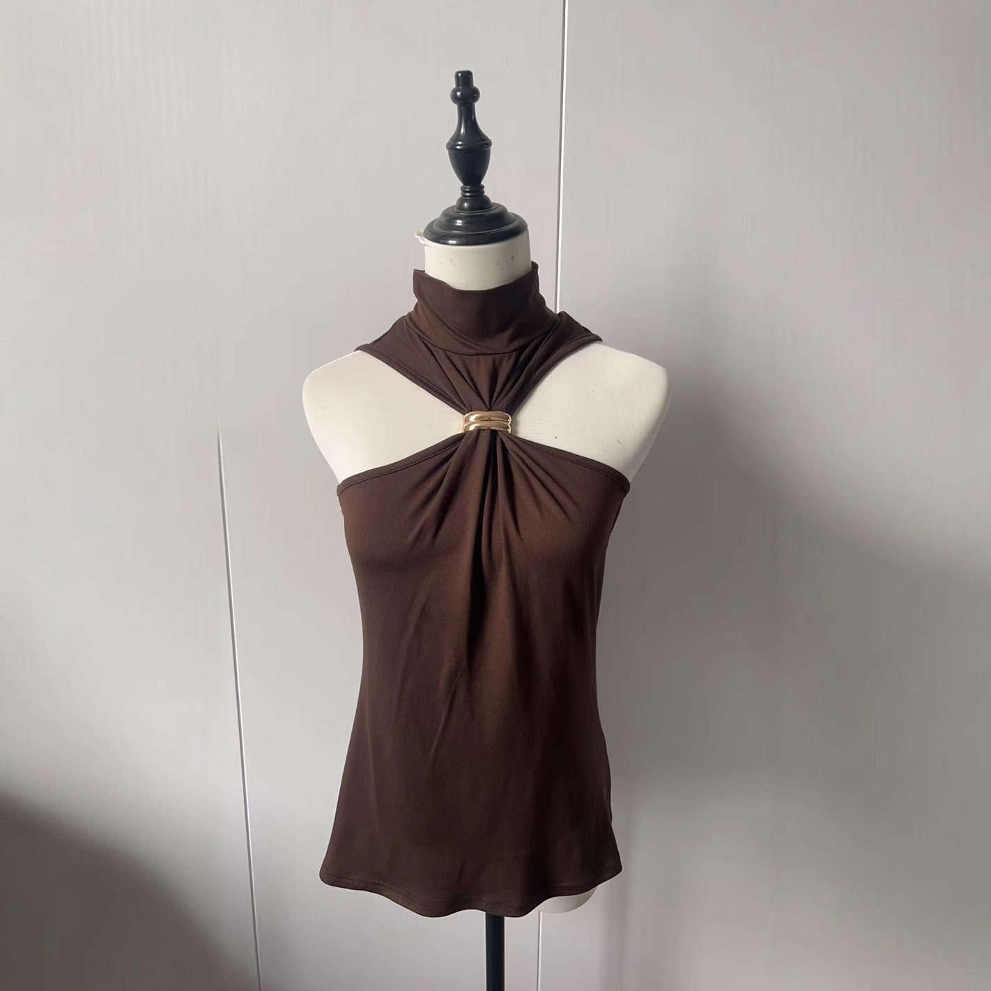 2025 봄 여름 Amazon AliExpress 독립 웹 사이트 국경 간 인기 여성 의류 골드 링 민소매 오프 숄더 탑 티셔츠