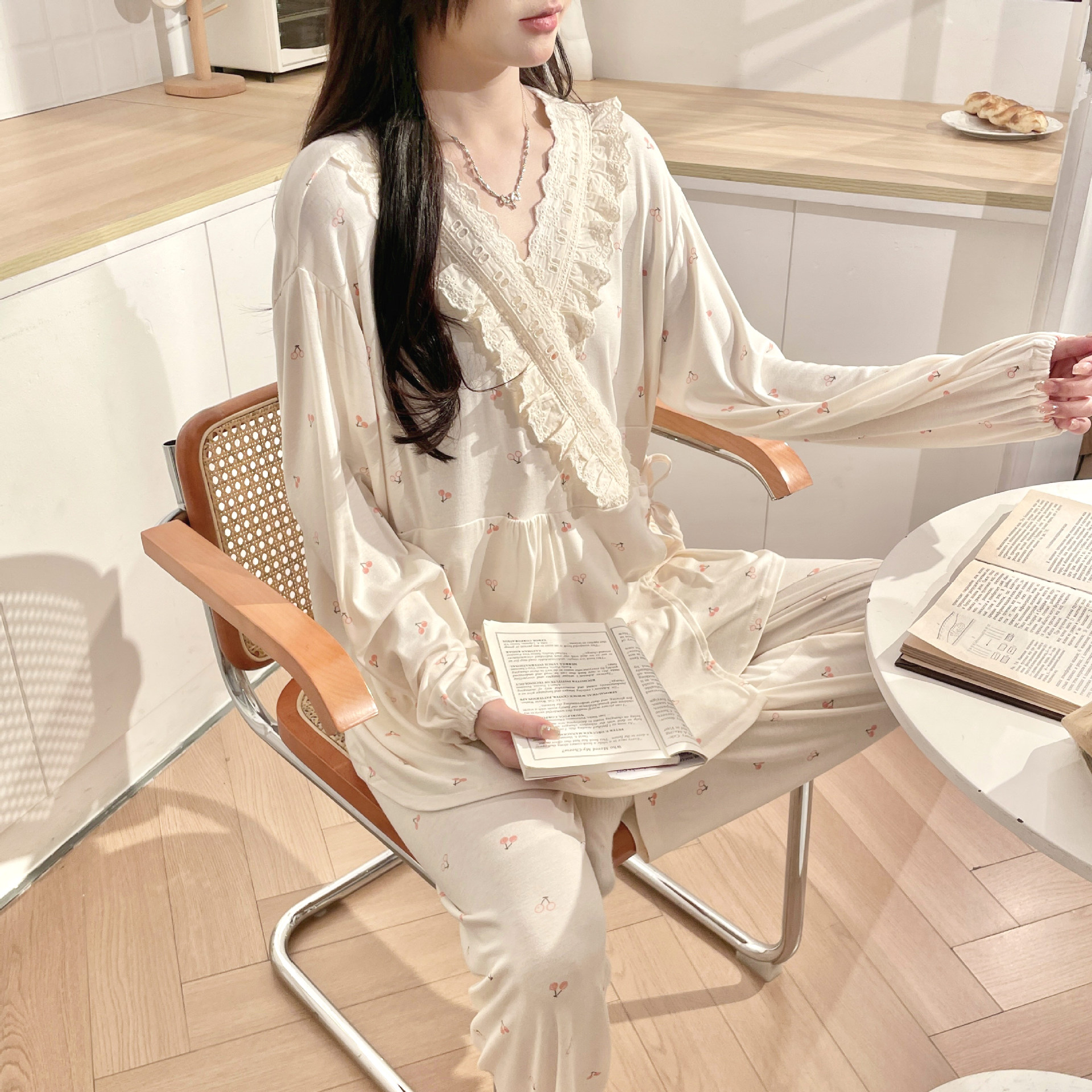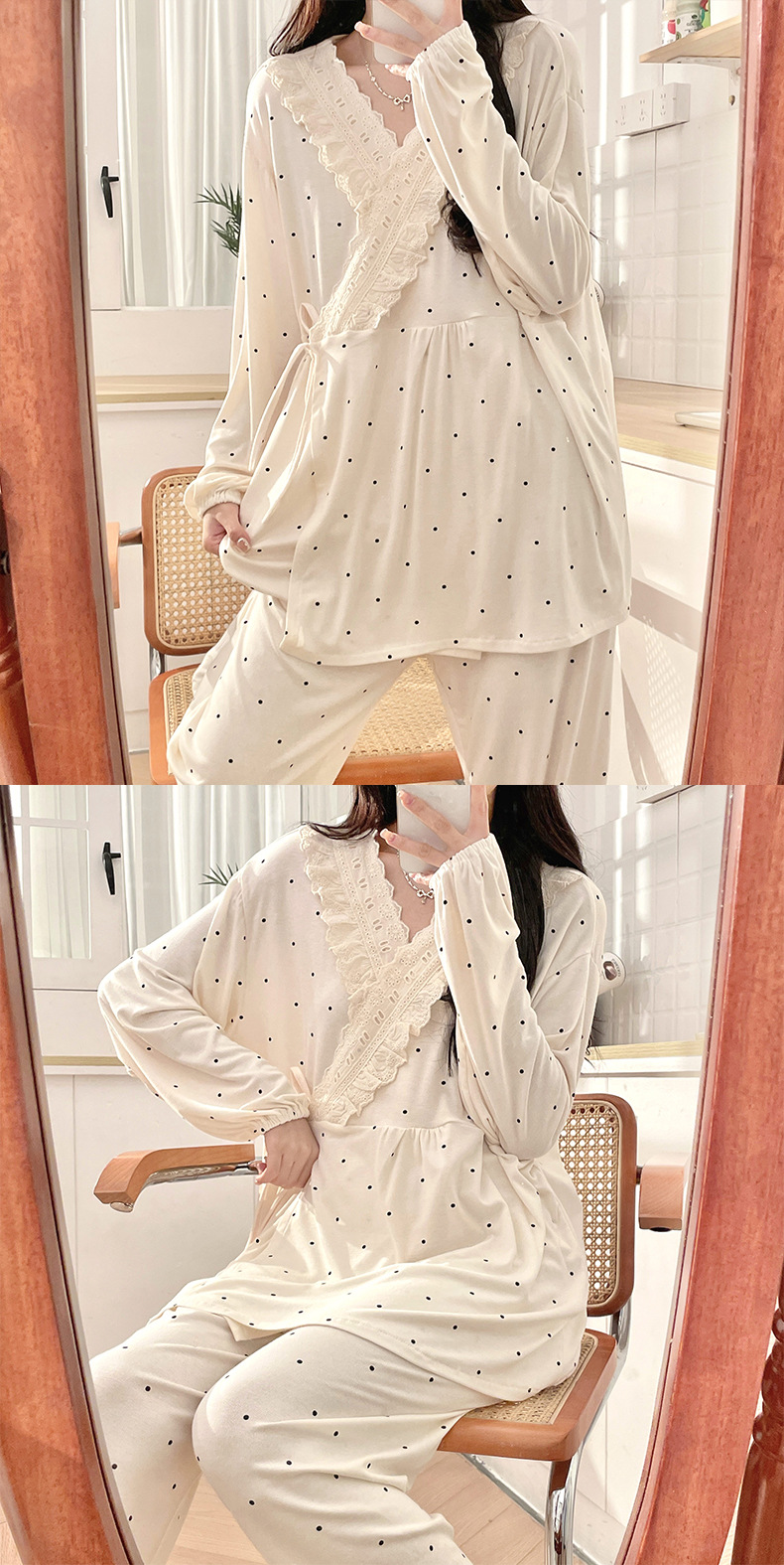 임산부 모달 산후복, 산후 여름 얇은 기모노, 대형 수유 땀흡수 잠옷, 임산부 가정복