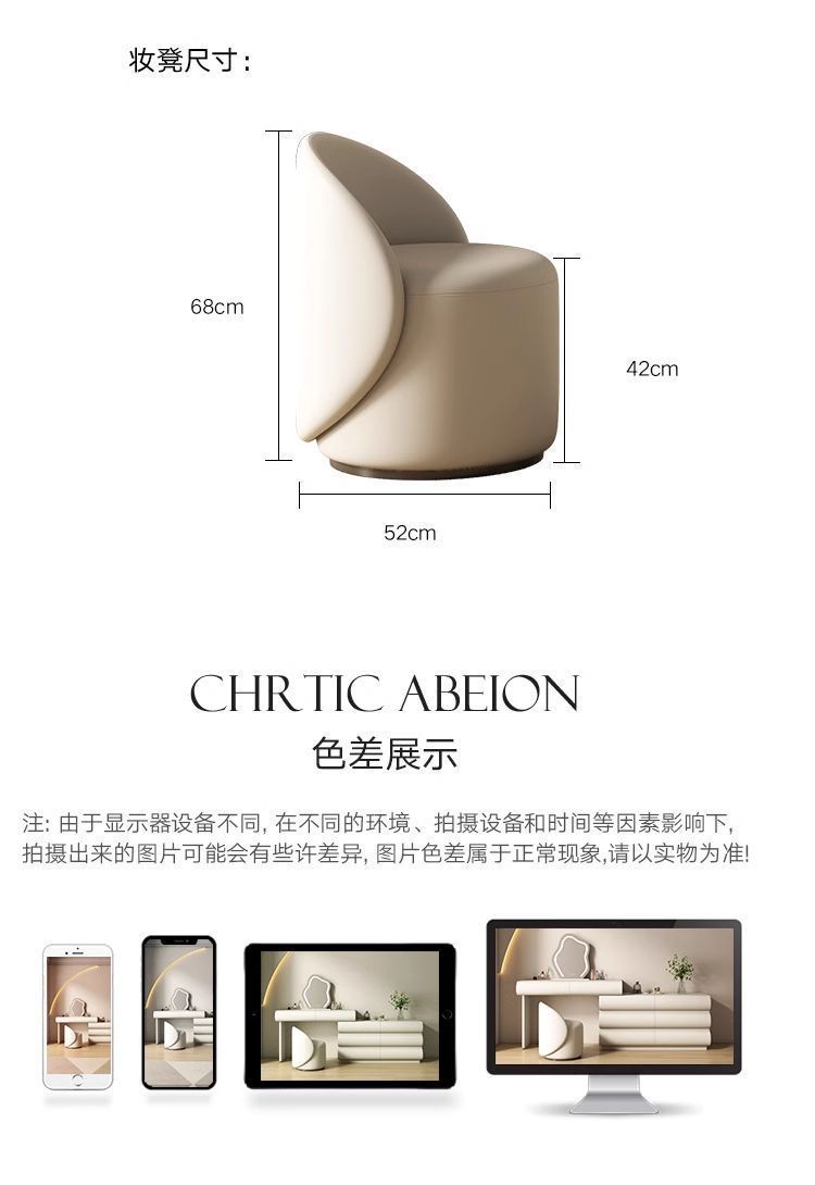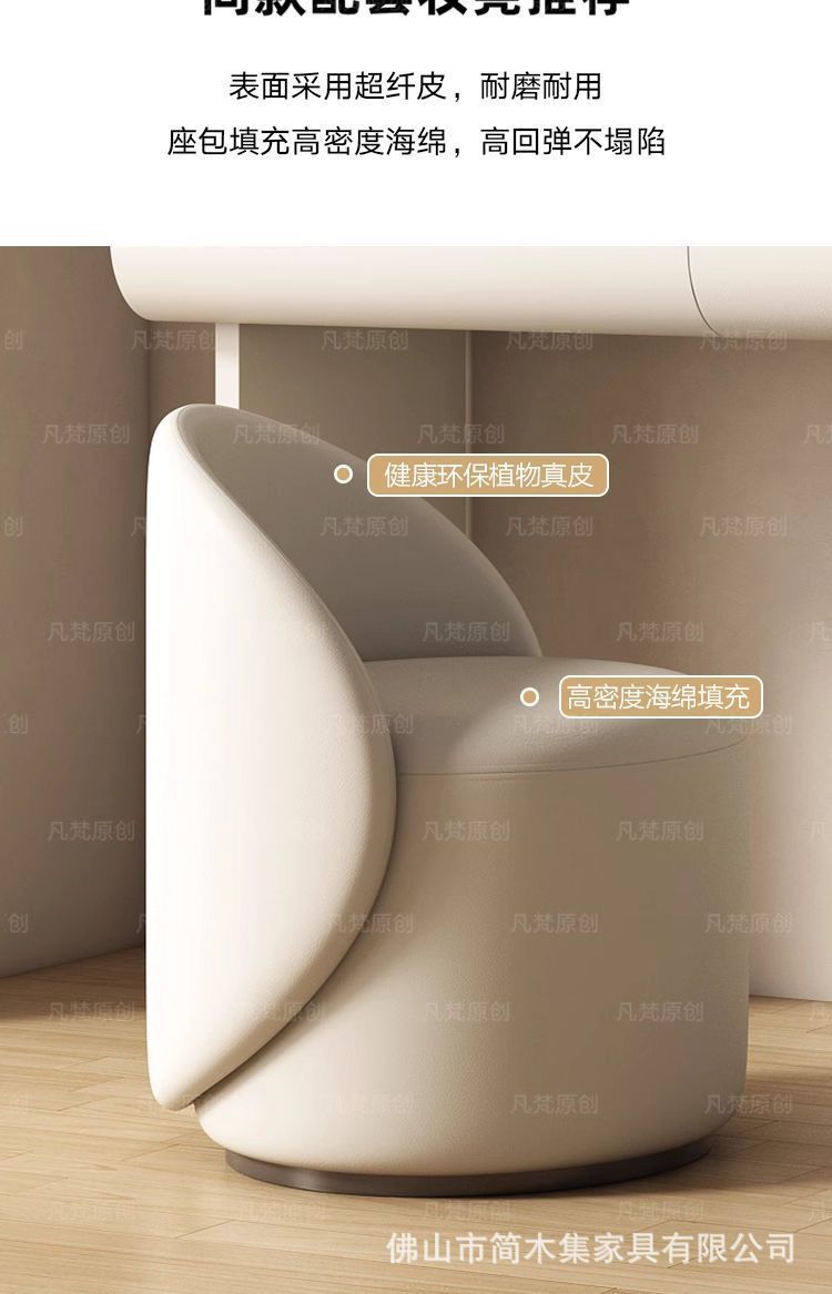 크림화이트 110 6단 서랍장 + 110 테이블 + 거울 + 스툴