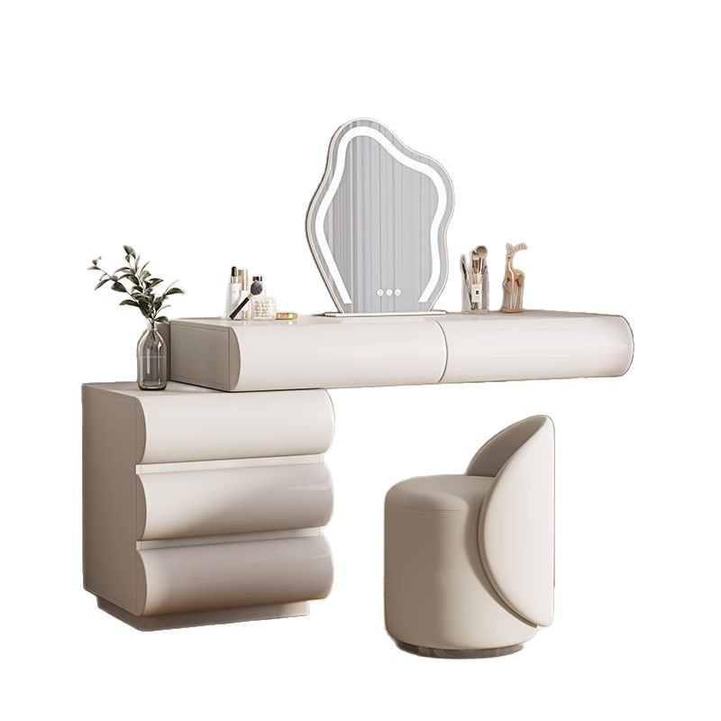 크림화이트 55 3단 서랍장 + 110 테이블 + 거울 + 스툴