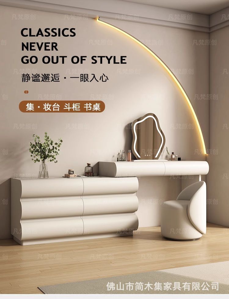 원목 페인트 화장대 수납장, 통합 침실 와비사비 스타일 심플 침대 옆 접이식 화장대 조합