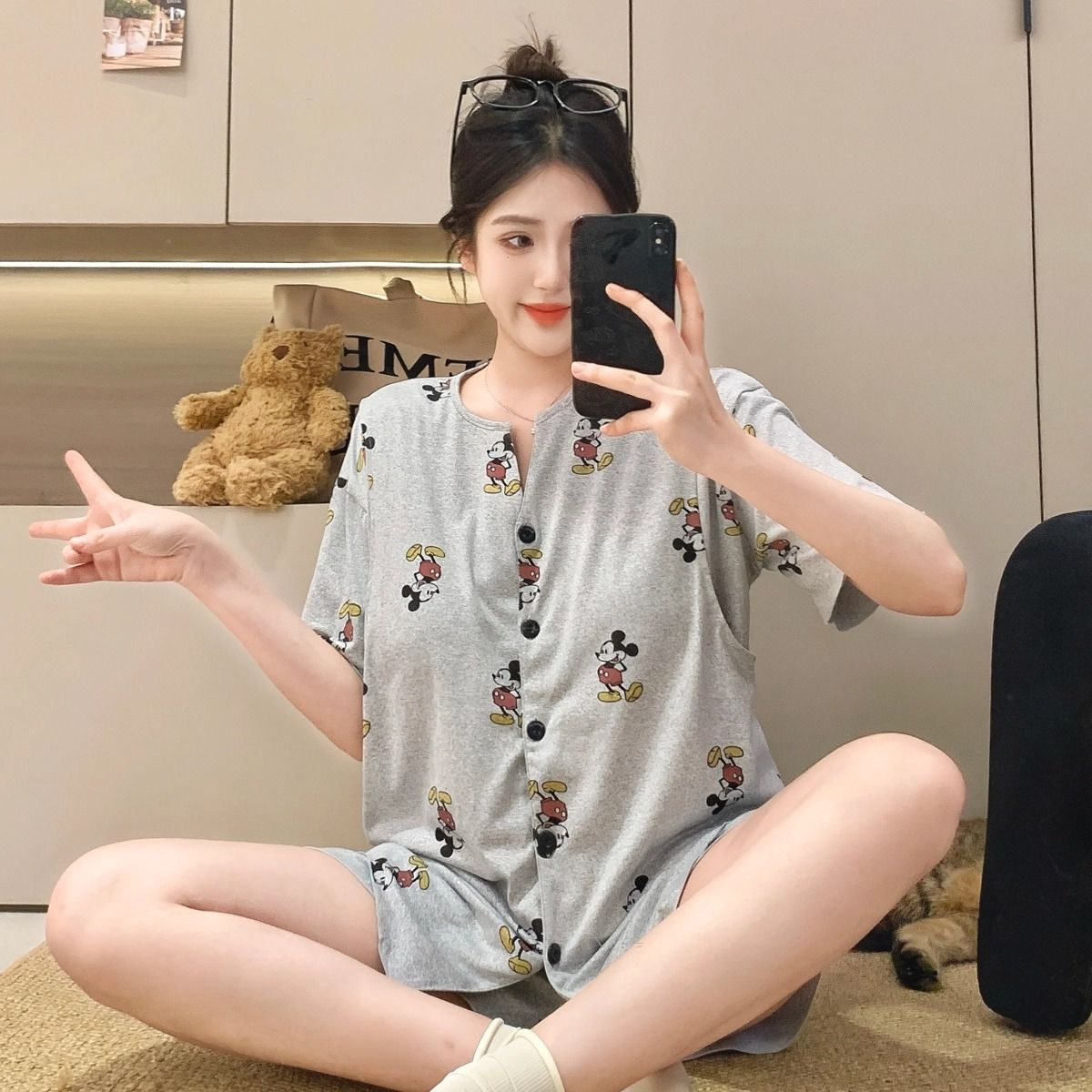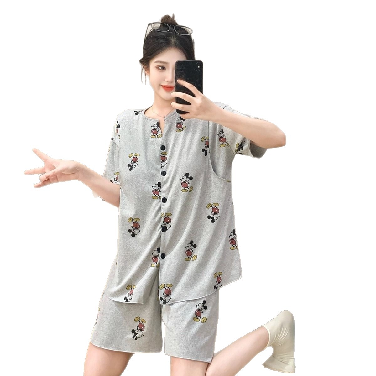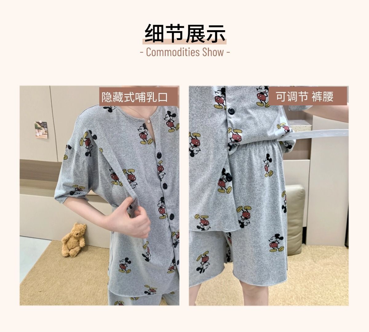 2025년 여름 새로운 스타일의 가슴 패드가 있는 임신 카디건, 반팔 반바지, 임산부 수유 홈 파자마 세트
