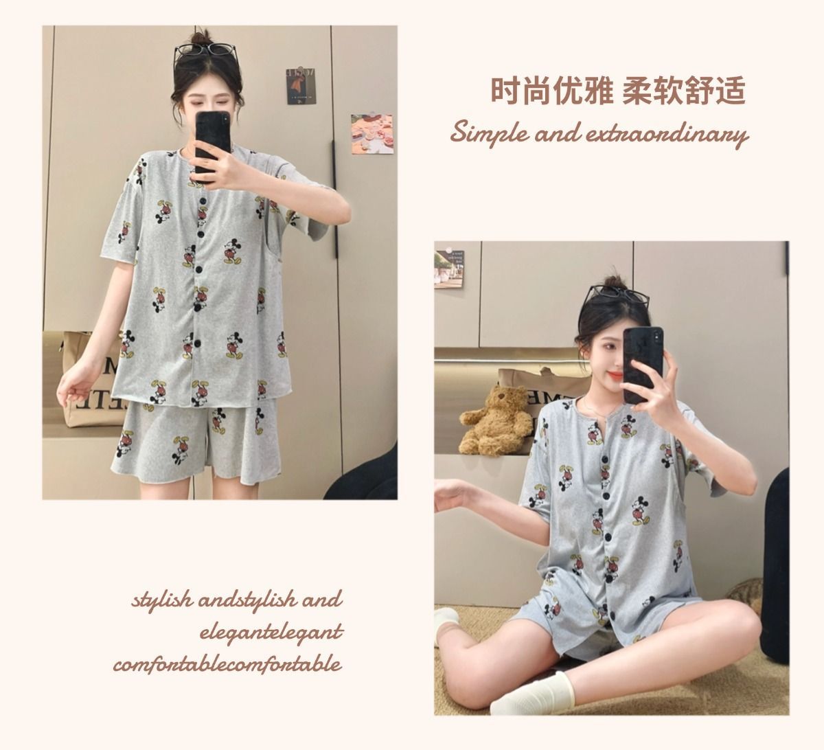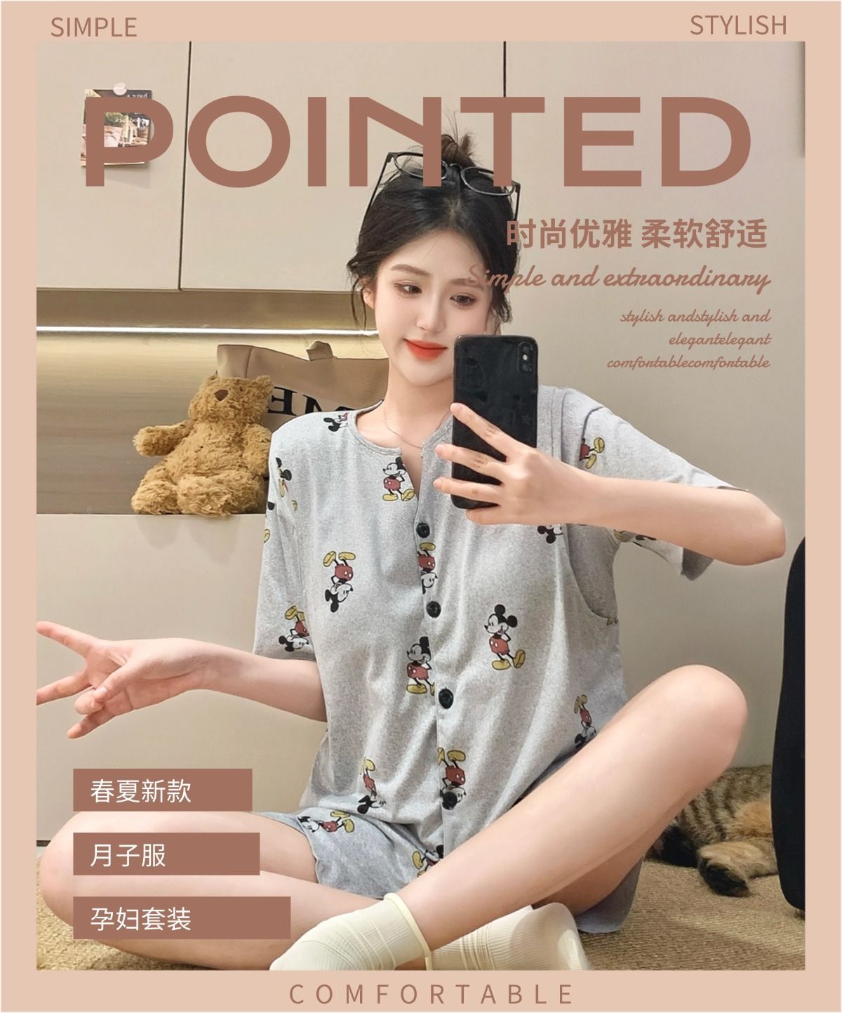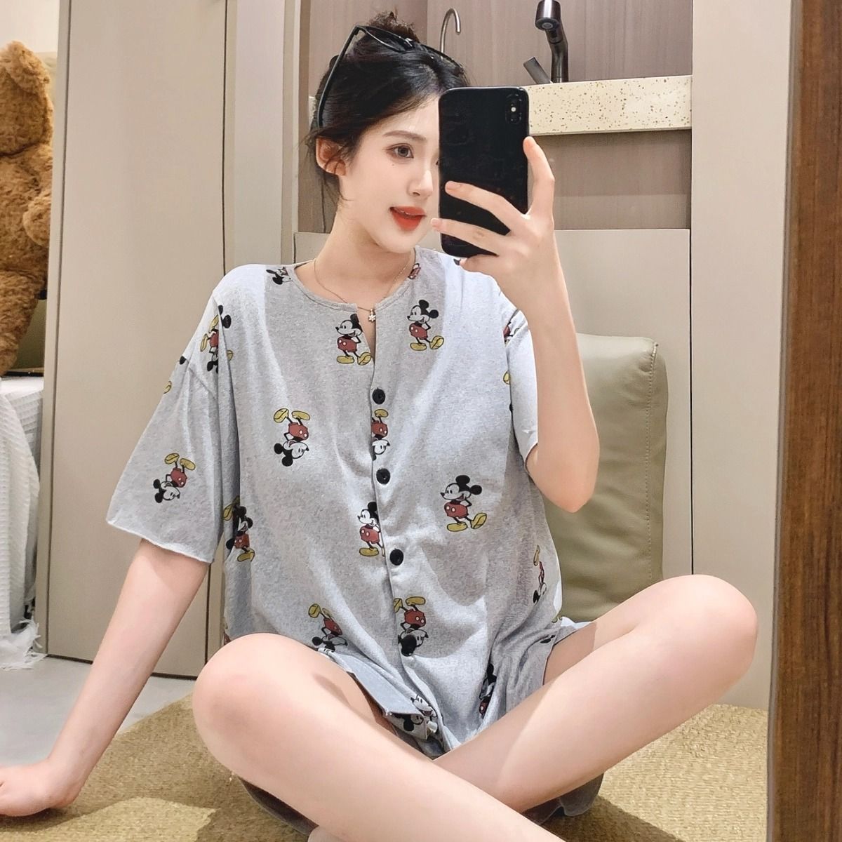 2025년 여름 새로운 스타일의 가슴 패드가 있는 임신 카디건, 반팔 반바지, 임산부 수유 홈 파자마 세트